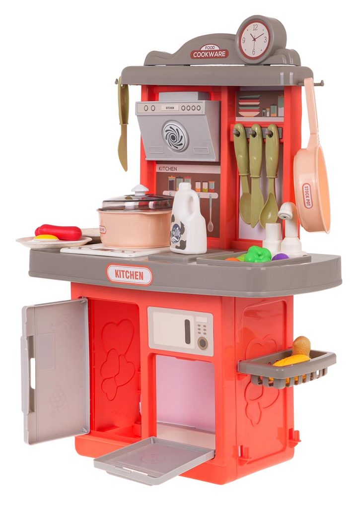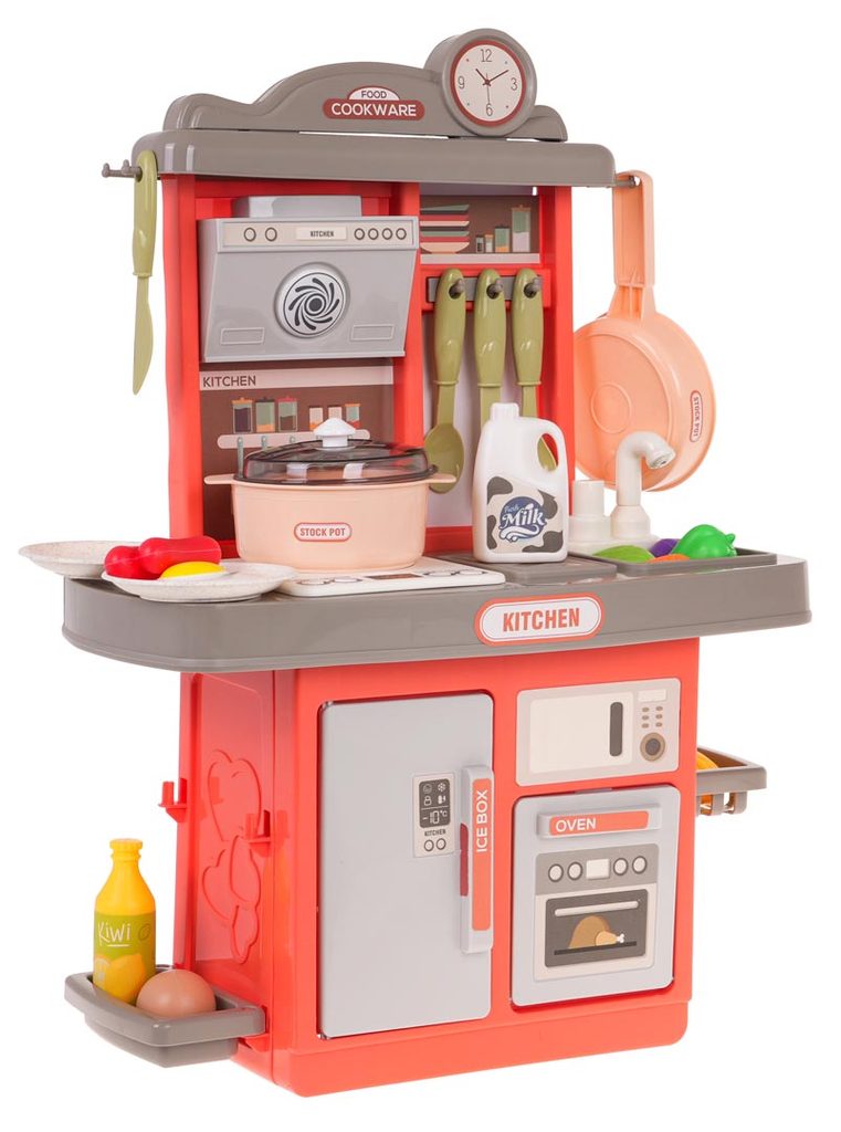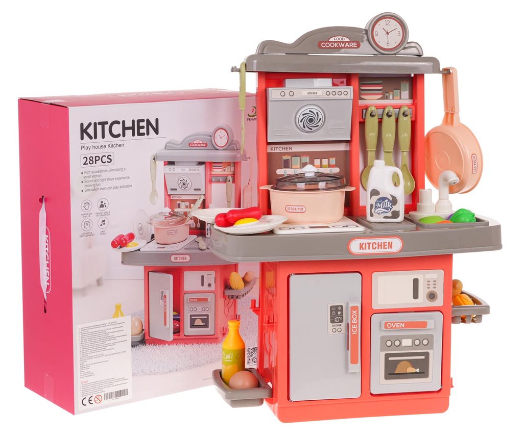 Interaktivní dětská mini kuchyňka House Kitchen se zvukovými a světelnými efekty je určena pro děti od 3 let věku. Je vybavena příslušenstvím jako jsou příbory, talíře, hrnce, imitace potravin a mnoho dalších. Vaše dítě se určitě s touto velkou kuchyňkou nudit nebude. Trouba a lednice kuchyňky je otevírací. Svítící hořáky se zvuky napodobující smažení a bublání. Je vyrobena z plastu v pestrobarevném provedení.