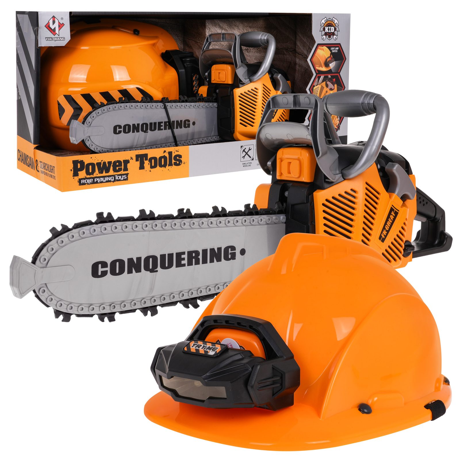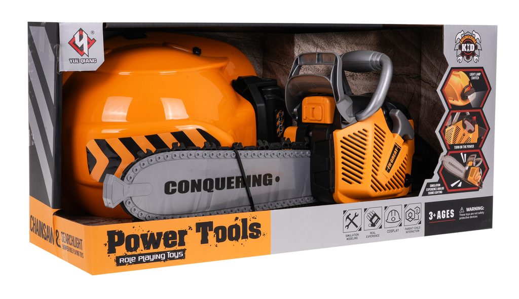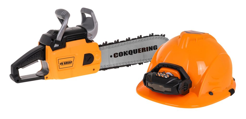 Sestava dětské motorové pily a ochranné helmy se světlem Great Saw je ideální hračkou pro každého malého pomocníka na zahradě nebo i doma. Sestava obsahuje vše co správný dřevorubec potřebuje k práci. Pila má otočný gumový pás, který imituje řetěz. Při práci vydává pila zvuky motoru a skutečného řezání a má také osvětlení. Hračka je určena pro děti od 36 měsíců věku.