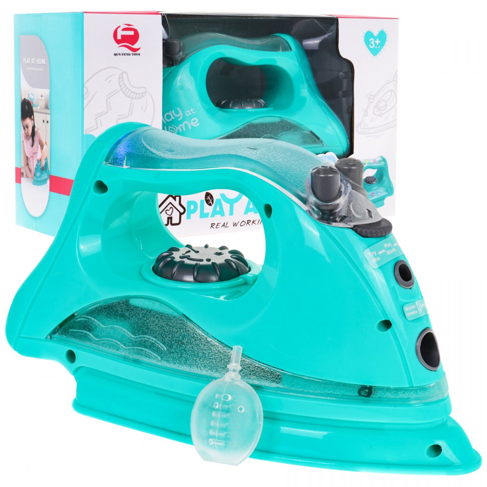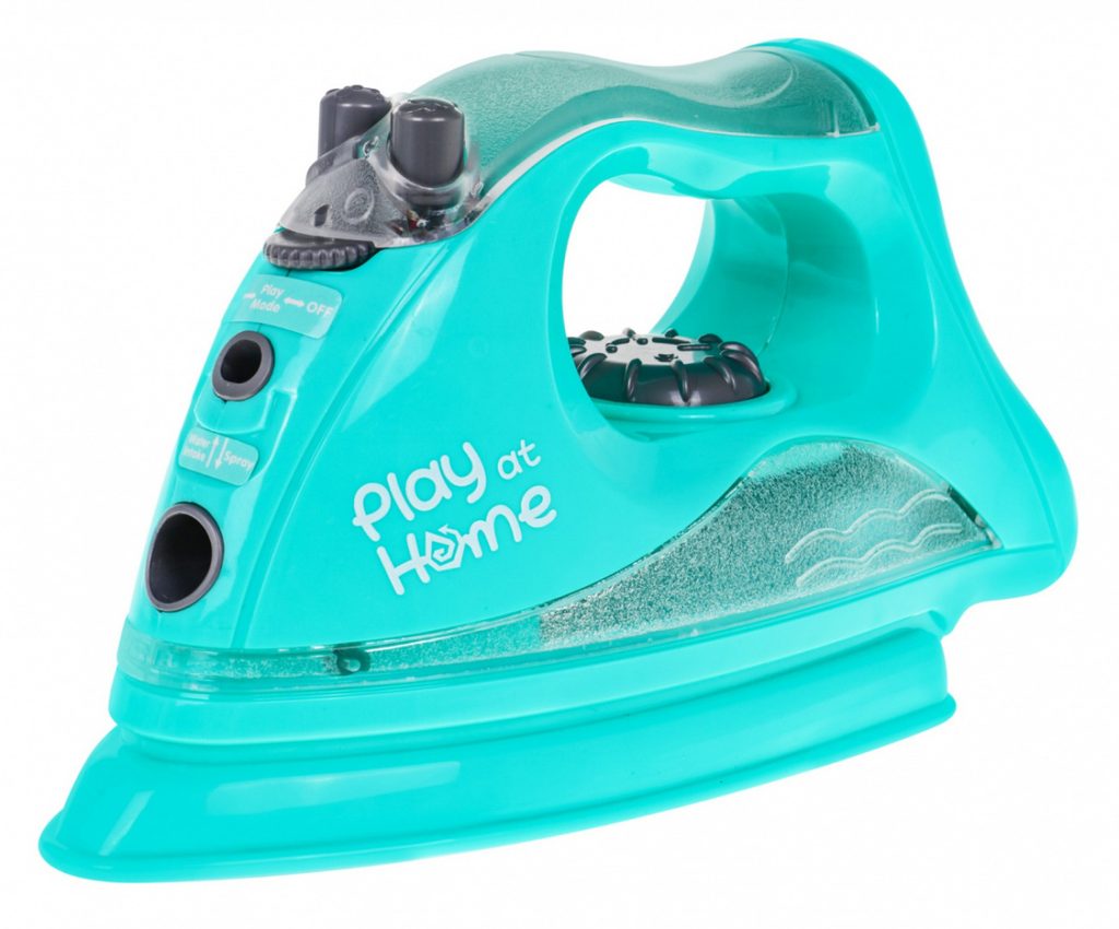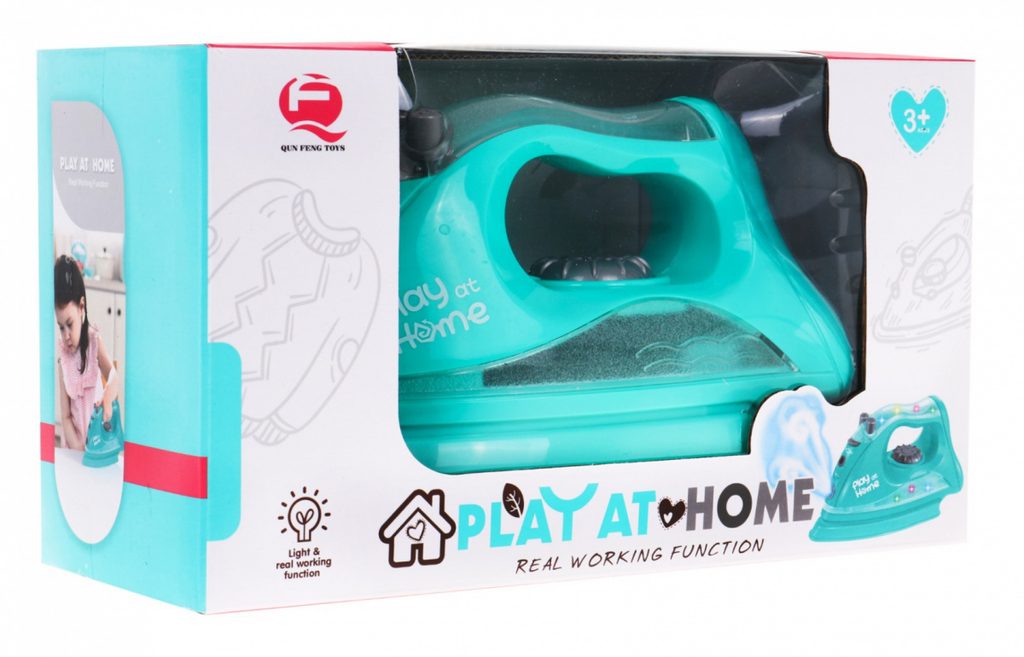 Dětská napařovací žehlička Play At Home přemění Vaše dítě v opravdovou paní domu. Může s ní vyžehlit všechny šatičky svých oblíbených panenek. Žehlička je vybavena zásobníkem na vodu a má po naplnění pomocí přiložené pipety funkci vodní páry kdy při žehlení vydává charakteristické zvuky napařování. Pára je zcela bezpečná, jedná se o studenou páru. Stisknutím dalšího tlačítka se ozývá zvuk "kropení". Má také kolečko, které imituje změnu teploty žehlení a k tomu efektně podsvícenou rukojeť. Žehlení tak bude jako skutečné. Hračka je určena pro děti od 36 měsíců věku.