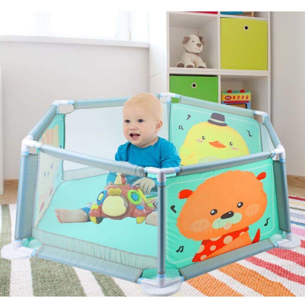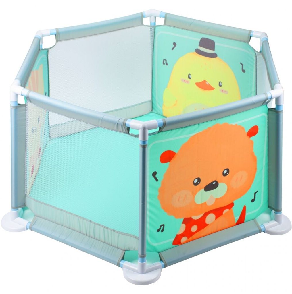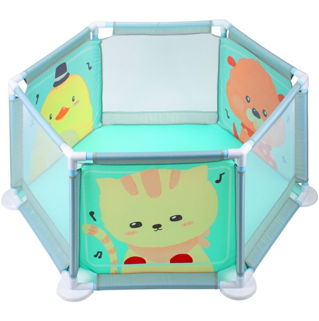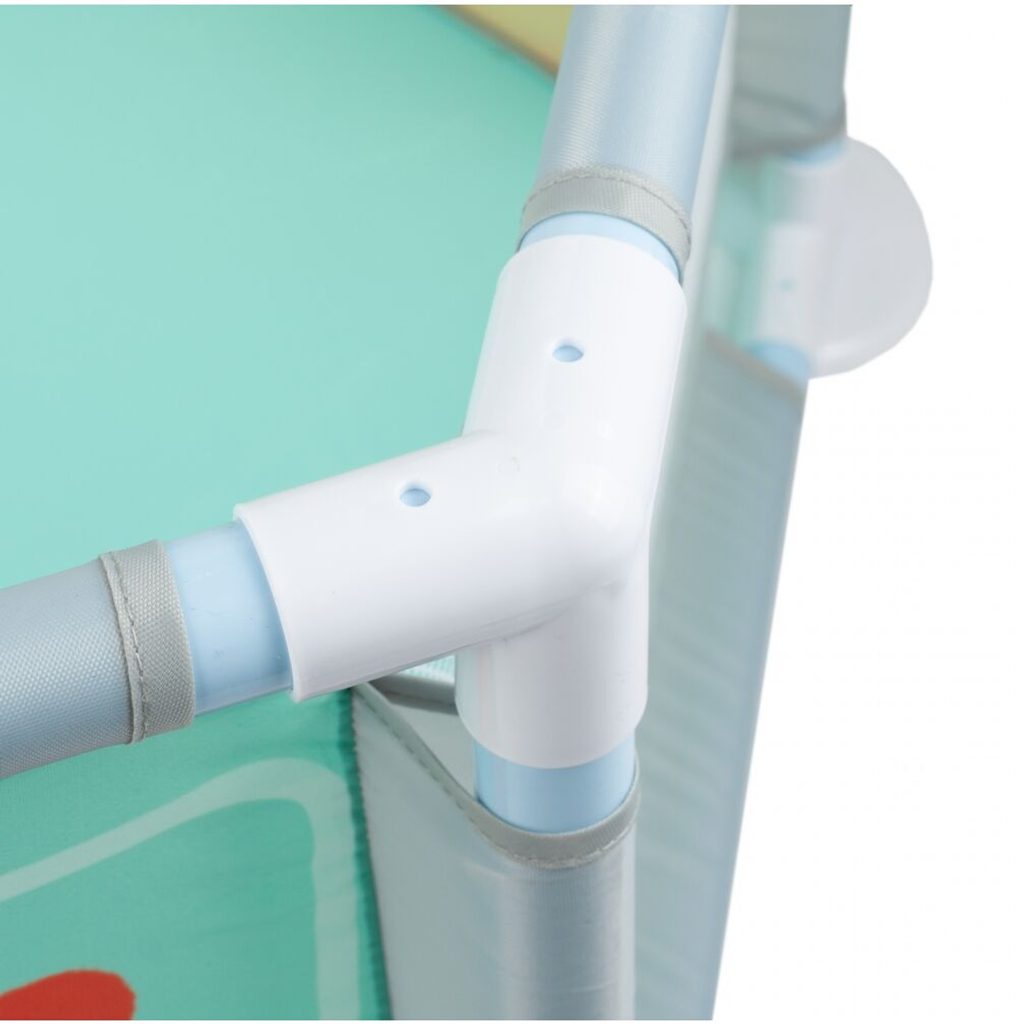 Bezpečná ohrádka Play Fence je určenapro miminka od 6 měsíců. Poskytuje prostor pro pohyb bez rizika zranění či pádu. Je vyrobená z bezpečných materiálů bez ostrých či malých prvků, snadno čistitelná. Stabilní rám zajišťuje pevnost a odolnost. Pohodlně přenositelná z místnosti do místnosti nebo ven na zahradu, aby dítě bylo v bezpečí i během každodenních aktivit rodičů. Ohrádka má tři stěny vyrobené ze síťoviny, umožňující pozorování miminka při hře. Jedna stěna je vybavena zipem pro snadný vstup a výstup. Na třech stěnách jsou velké obrázky: kočička, medvídek, ptáček.