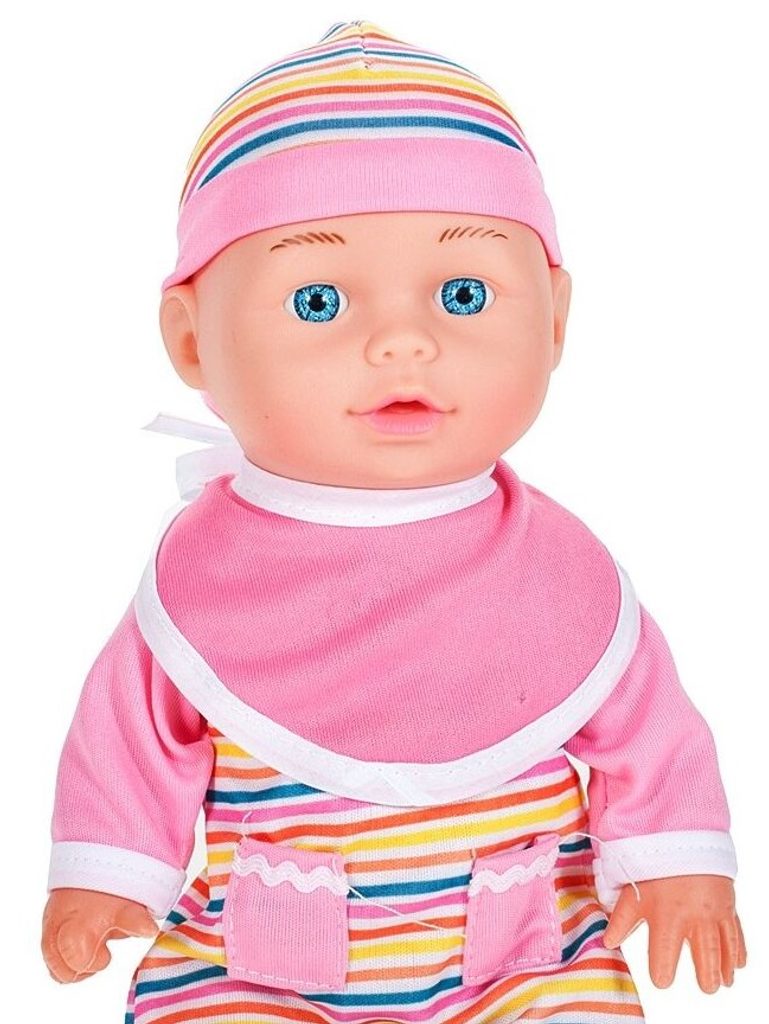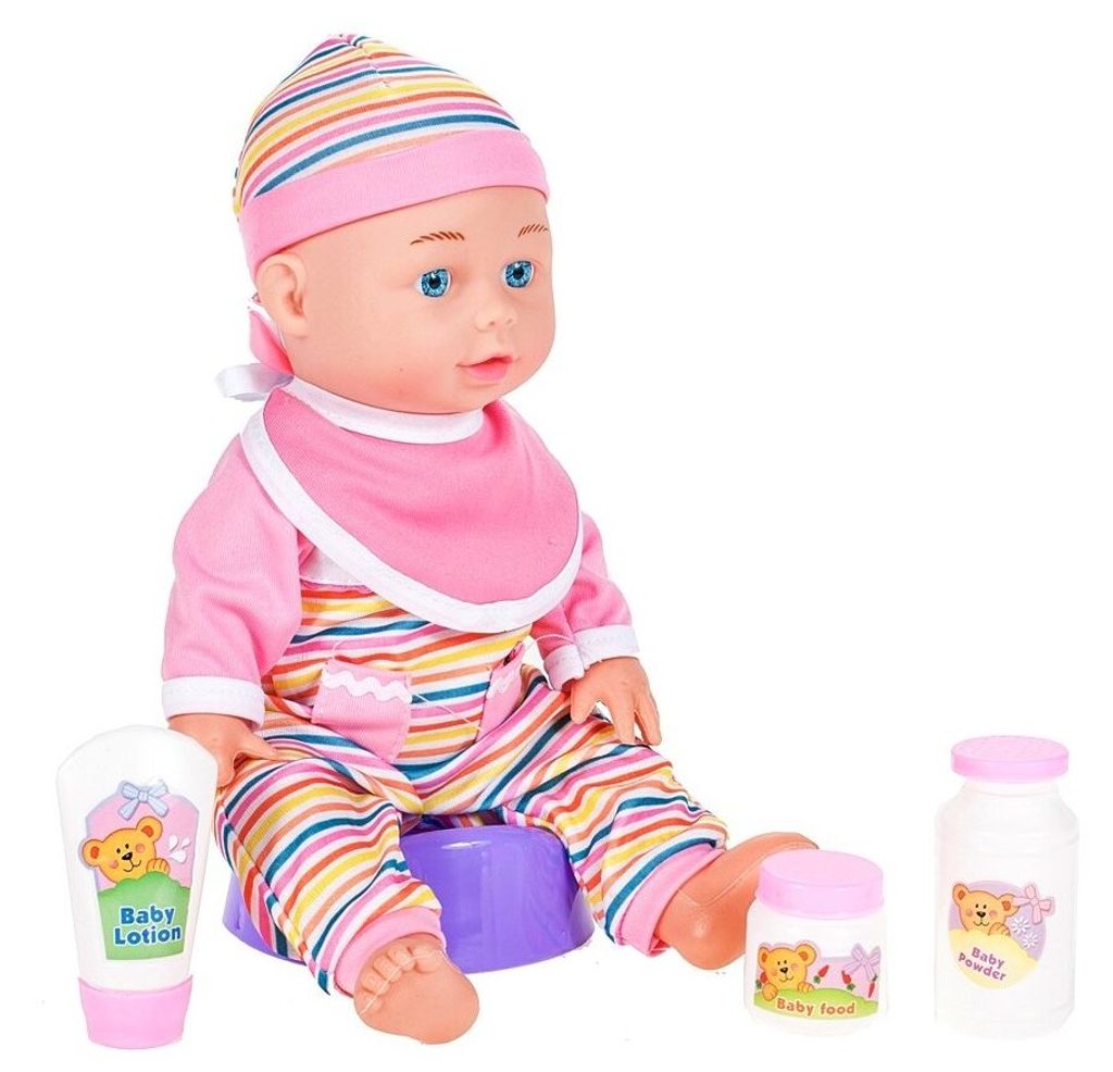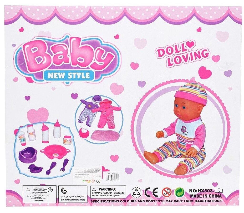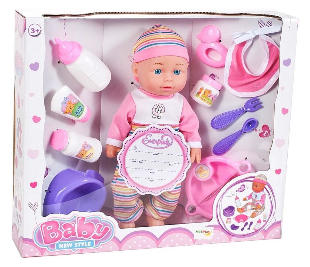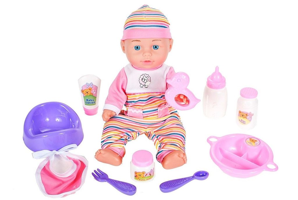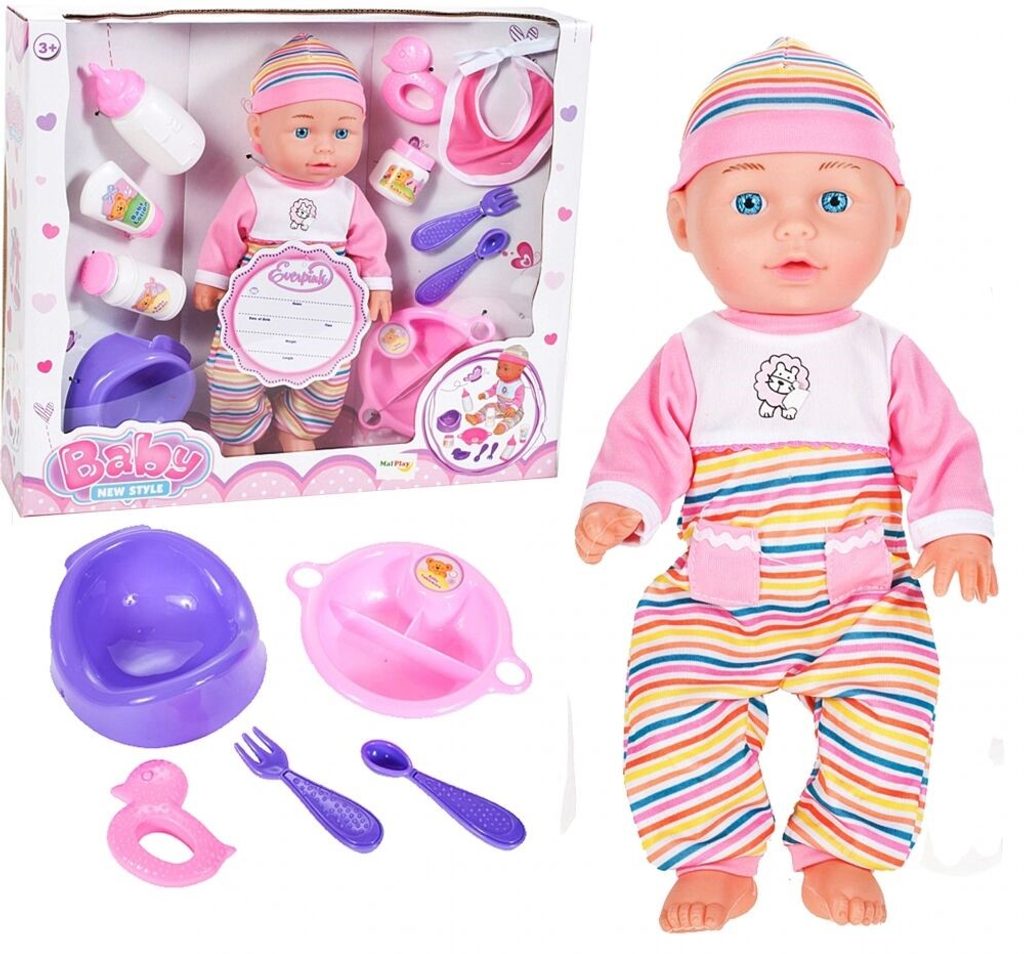 Panenka Emilka v realistickém provedení udělá ohromnou radost každé holčičce. Je vyrobena z materiálu příjemného na dotek. Součástí sady je lžička, vidlička, krmící lahvičky, chrastítko, nočník ,talířek a bryndáček. Hračka je určena pro děti od 36 měsíců věku.