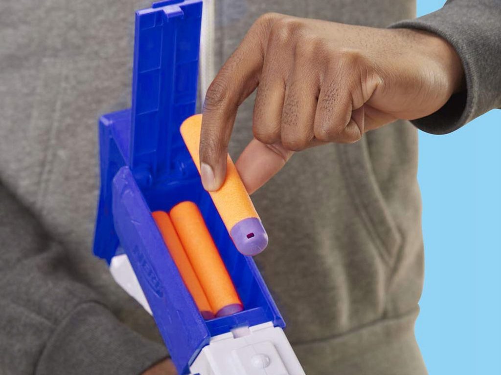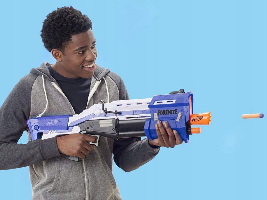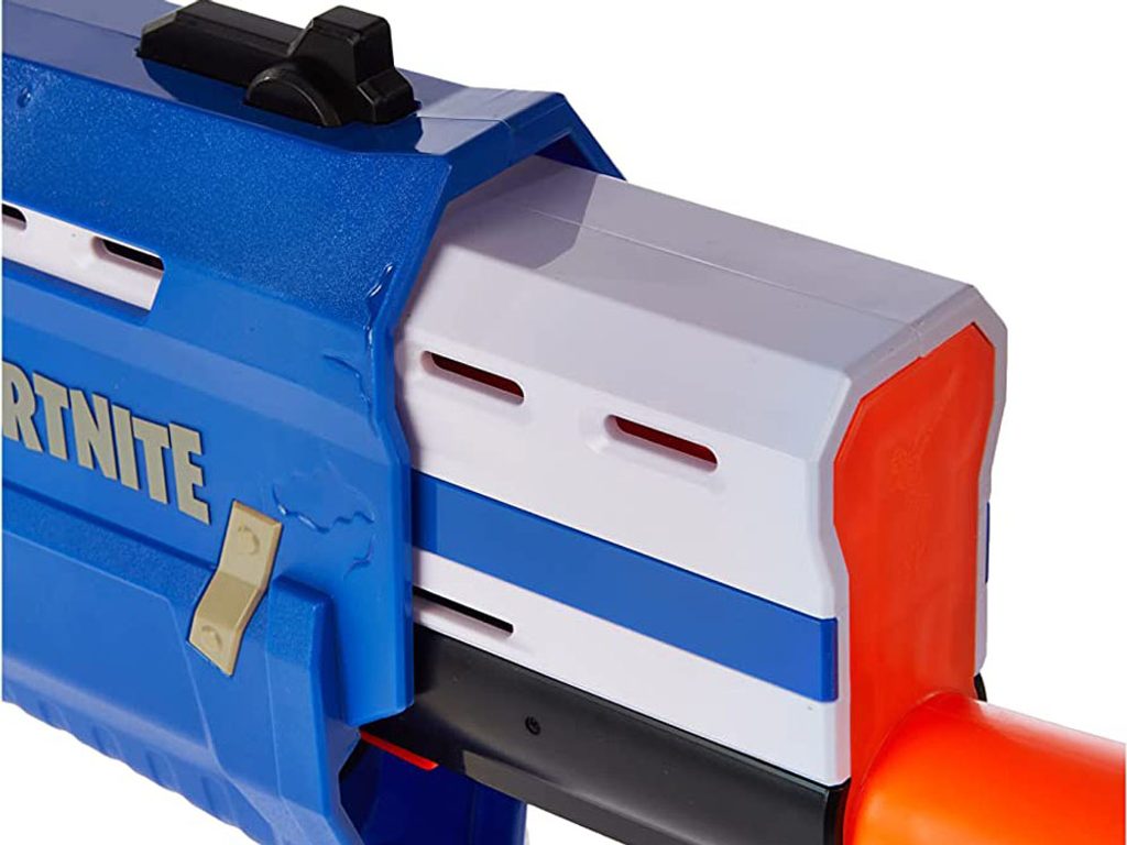 Dětský odpalovač Nerf Shotgun Fortnite je revoluční novinkou, se kterou si užijete zábavu na maximum a je snem každého chlapce. Do zbraně můžete nabít 4 náboje, zbytek se vejde do zásobníku. Zbraň má 2 režimy střelby: jednoduchá a nepřetržitou. Chcete-li vystřelit jeden náboj, nabijte zbraň a stiskněte spoušť. Chcete-li střílet náboje jeden za druhým, držte prst na spoušti a znovu nabijte zbraň. Dosah střely je asi 22 metrů. Díky 3 terčům ve tvaru lamy v různých velikostech, si můžete procvičit koncentraci a přesnost. Jedná se o skvělou zábavu pro chlapce a můžete nám věřit, že ke hře s tímto samopalem se rádi zapojí i tatínkové.
