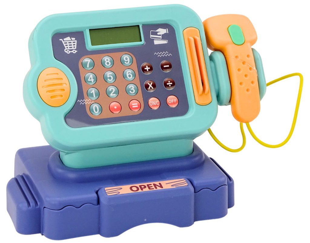 Dětská elektronická pokladna Calcurator Cashier s displejem přemění Vaše dítě ve skutečnou pokladní. Je vybavena displejem, který má funkci kalkulačky. Ve spodní části je umístěna výsuvná přihrádka na bankovky a mince, které jsou také součástí balení. Pomocí funkčního skeneru lze skenovat zboží, po stisknutí tlačítka se ozve zvuk. Hračka je určena pro děti od 36 měsíců věku.
