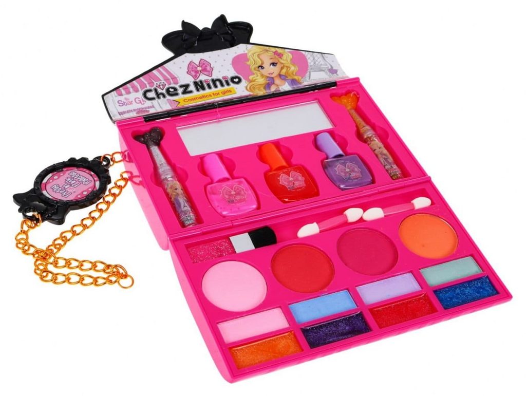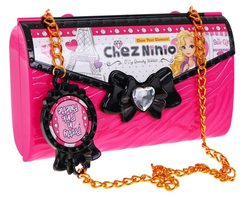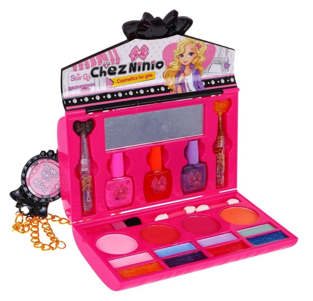 Kompletní sada dětského líčení v kabelce Ninio Makeup Handbag je ideální hračkou pro každou malou princeznu, která zde najde vše potřebné pro líčení. Kabelka má zrcátko a úchyt, lze ji tak jednoduše přenášet. Součástí setu jsou rtěnky, lesky na rty, oční stíny, tvářenky, a třpytky. Vše je vyrobeno z bezpečných netoxických materiálů. Make-up lze jednoduše odstranit vatovými tampónky namočenými v mýdlovém roztoku. Hračka je vyrobená z plastu v pestrobarevném provedení a určena pro děti od 5 let.