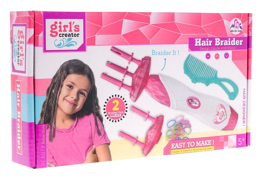Tato vlasová sada se zaplétacím strojkem je určena pro děti od 5 let a nabízí snadný způsob vytváření účesů. Sada obsahuje strojek s výměnnými nástavci – jeden s dvojitým hrotem pro splétání dvou pramenů a druhý s třemi hroty pro tradiční copánky. Strojek je napájen dvěma AA bateriemi (nejsou součástí balení). Součástí sady jsou také gumičky a hřeben. Použití je velmi jednoduché – stačí vložit 2 nebo 3 prameny vlasů do strojku, posunout tlačítko a účes je hotový!