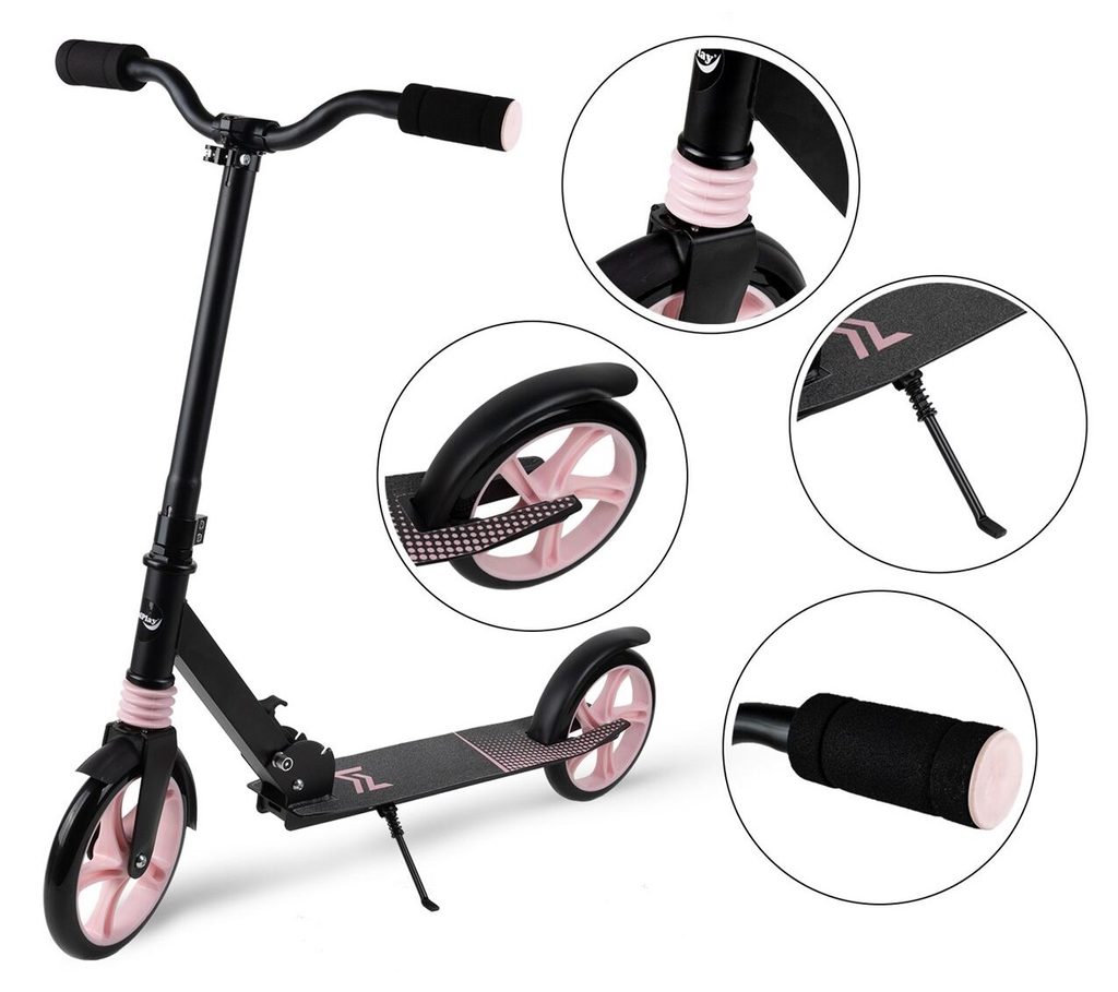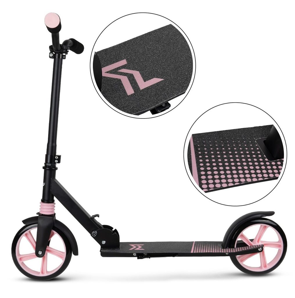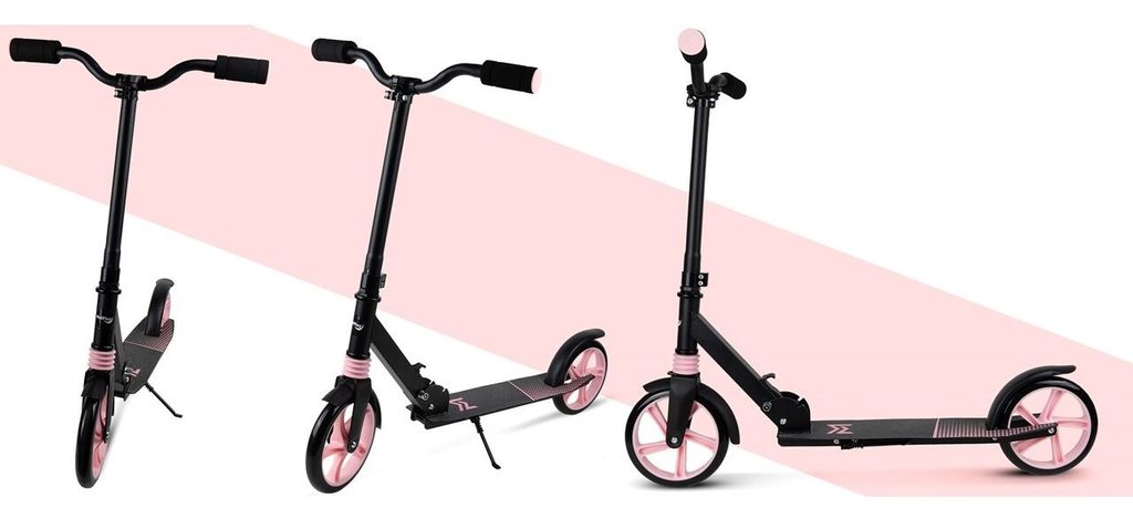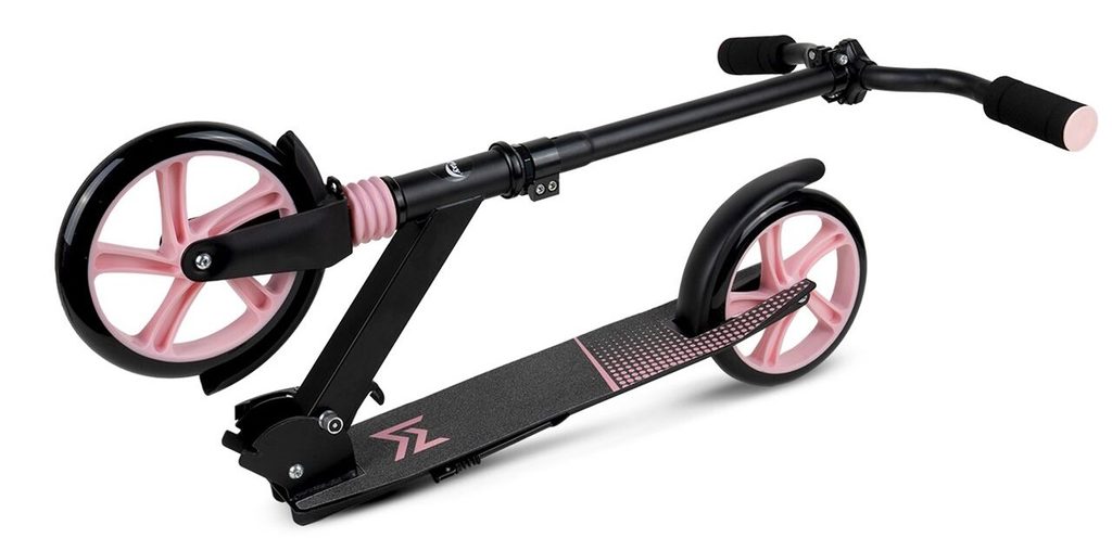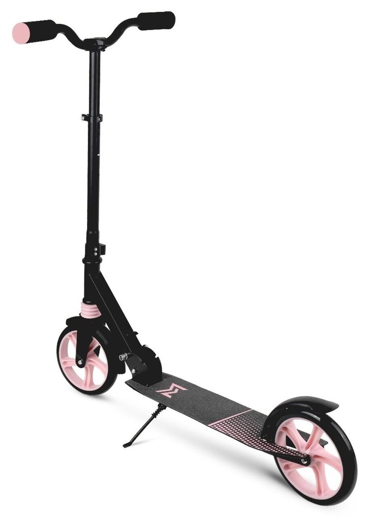 Dětská skládací koloběžka Black Scooter je osazena polyuretanovými koly o průměru 20 cm s tichými ložisky ABEC-7. Řídítka mají nastavitelnou výšku až do 100 cm. V zadní části je umístěn blatník, který slouží jako nožní brzda. Pod širokou nášlapnou plochou je umístěný stojánek pro snadné opření a koloběžka se dá taky jednoduše složit. Je určena pro děti od 6 let věku a 100 kg hmotnosti.