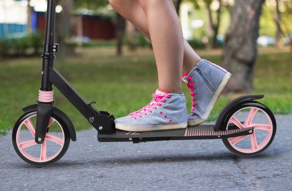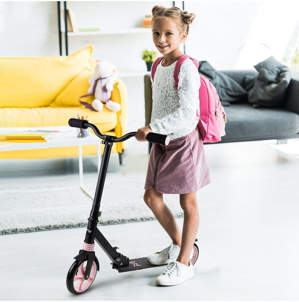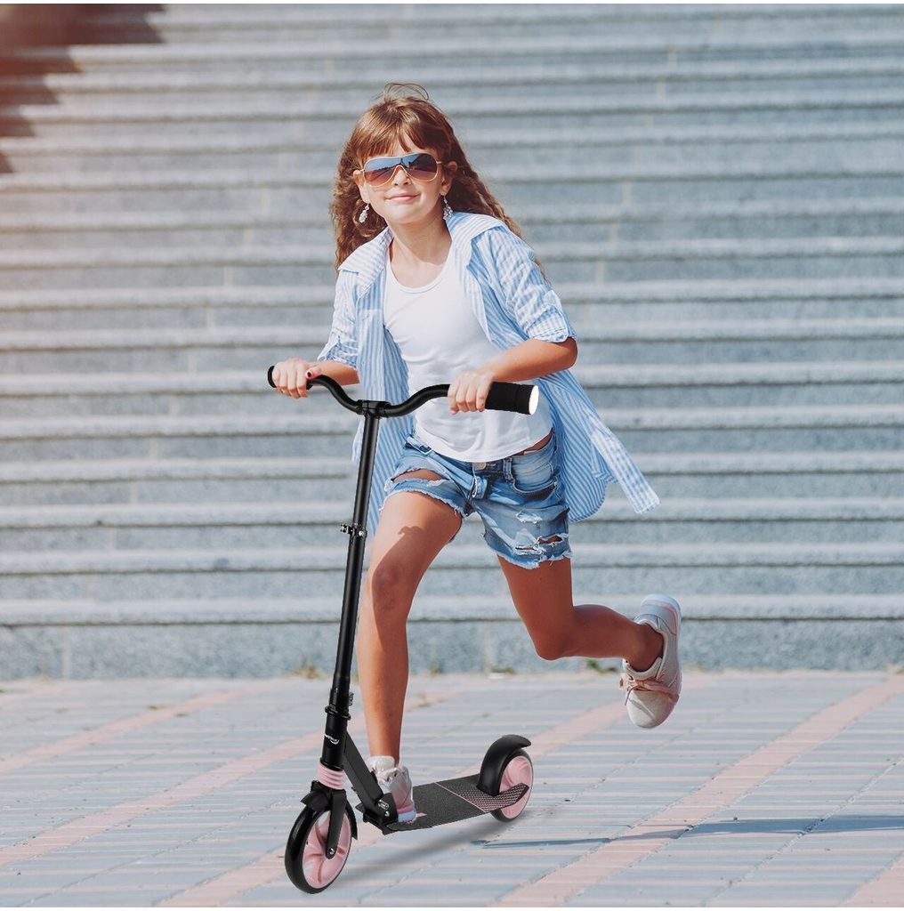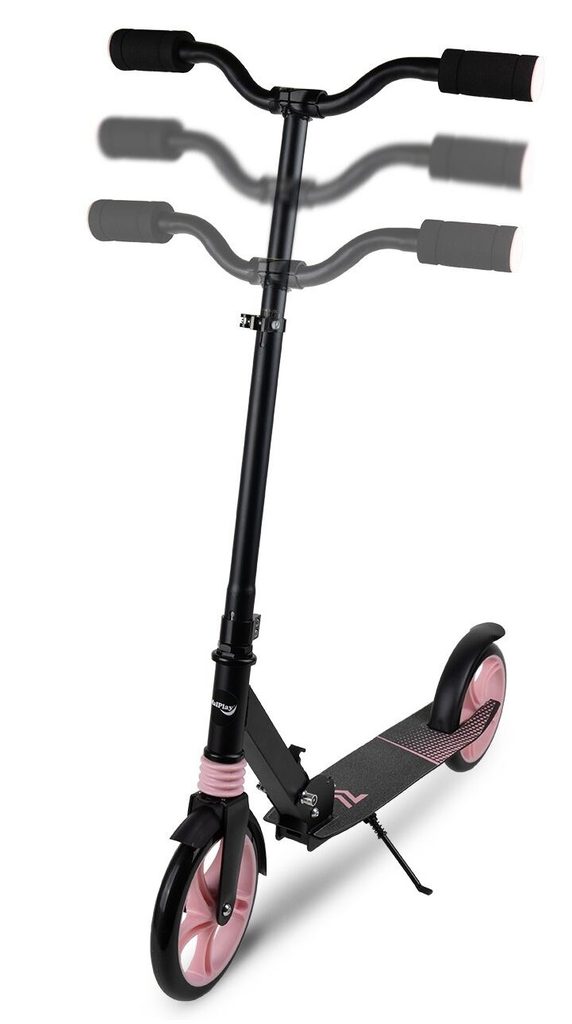 Dětská skládací koloběžka Black Scooter je osazena polyuretanovými koly o průměru 20 cm s tichými ložisky ABEC-7. Řídítka mají nastavitelnou výšku až do 100 cm. V zadní části je umístěn blatník, který slouží jako nožní brzda. Pod širokou nášlapnou plochou je umístěný stojánek pro snadné opření a koloběžka se dá taky jednoduše složit. Je určena pro děti od 6 let věku a 100 kg hmotnosti.