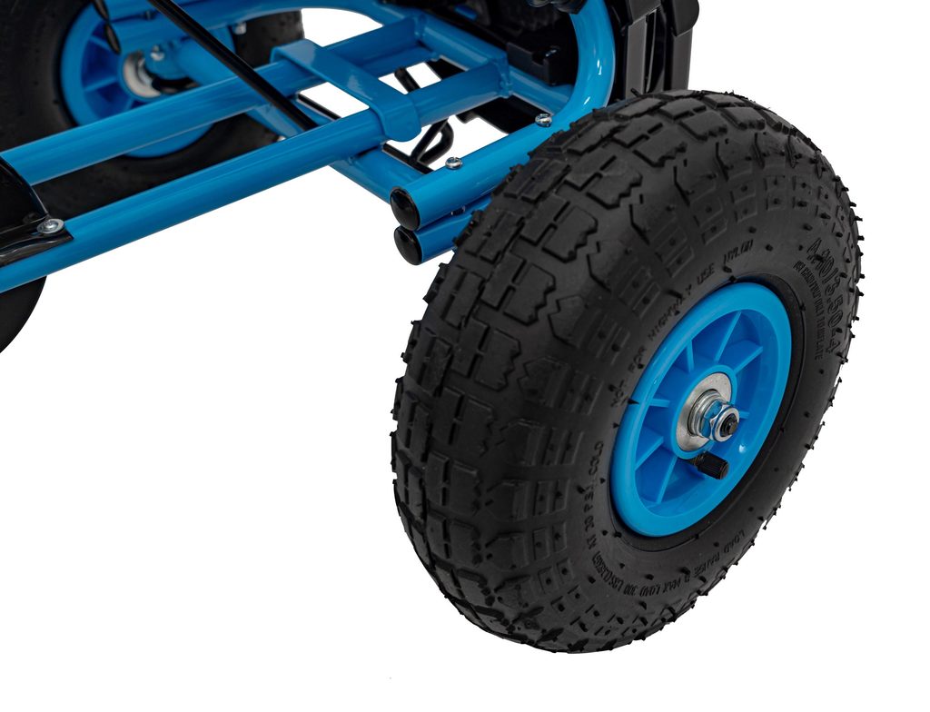 Dětská šlapací motokára Air PerHour se širokými nafukovacími koly o průměru 25 cm je určena pro děti od 3 let a hmotnosti 30 kg. Pohon zajištuje řetěz, který je zabezpečen ochranným krytem. Pohodlné sedadlo lze posouvat směrem k volantu ve třech polohách. Motokára je vybavena ruční brzdou na dvou kolech. Rám motokáry je vyroben z kvalitního kovu.