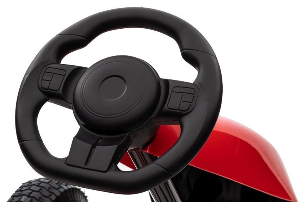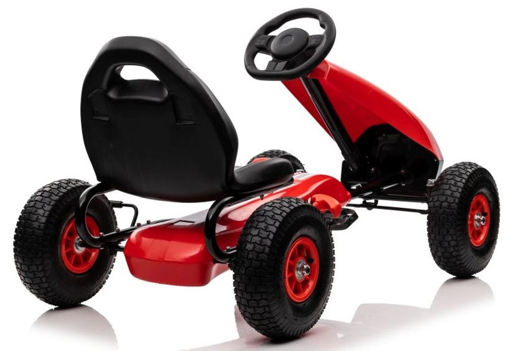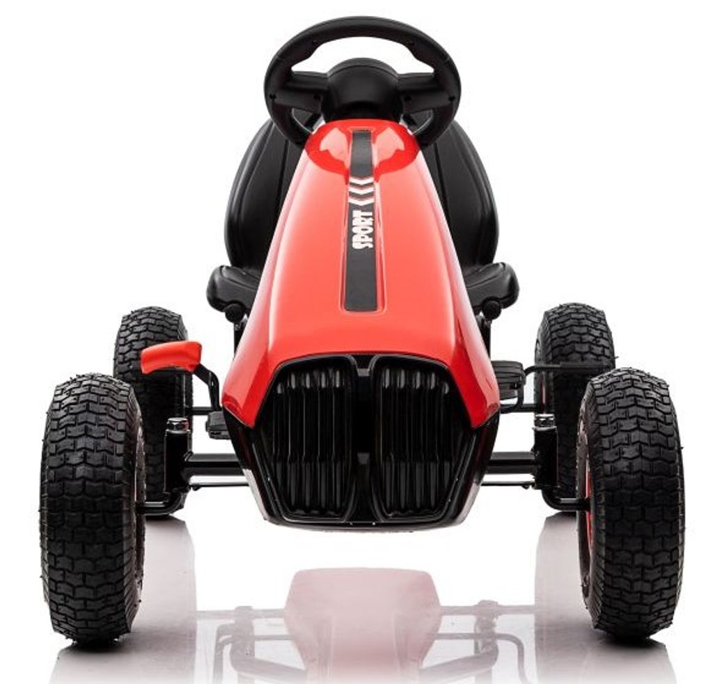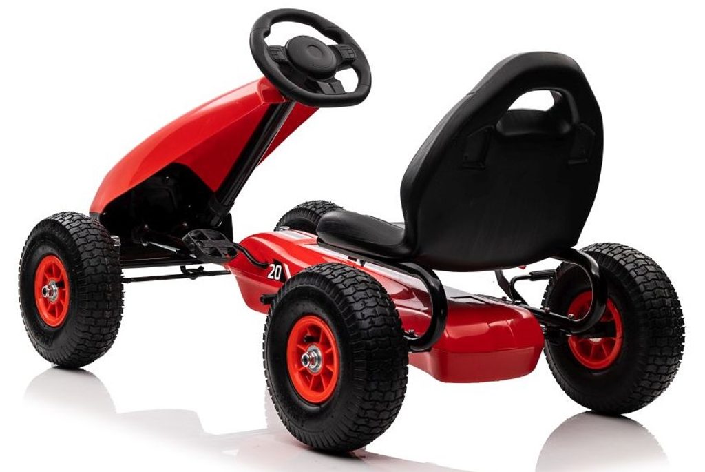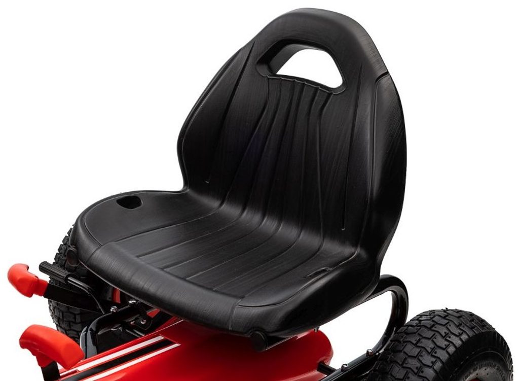 Dětská šlapací motokára Formule 208 se širokými nafukovacími koly o průměru 25 cm je určena pro děti od 3 let a hmotnosti 30 kg. Pohon zajištuje řetěz, který je zabezpečen ochranným krytem. Motokára je vybavena ruční brzdou na dvou kolech. Rám motokáry je vyroben z kvalitního kovu.