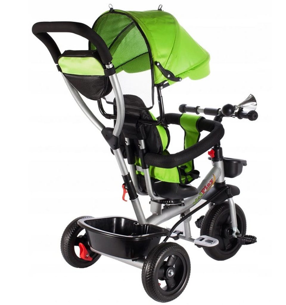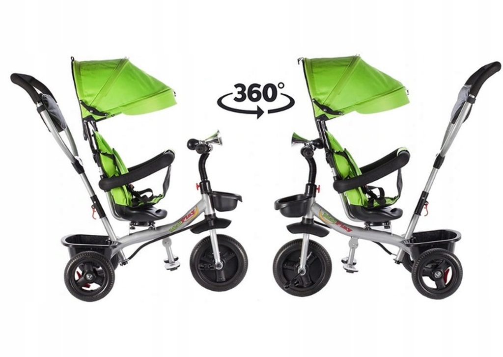 Dětská tříkolka S360 s otočným sedadlem je určena pro děti od 2 do 5 let. Vybavena praktickou odnímatelnou stříškou proti slunci a dešti. V zadní části je umístěn velký koš na hračky, v přední části potom menší košík. Tříkolka má pevnou ocelovou konstrukci a odolná EVA kola usazená v pevných plastových ráfcích. Madlo a tříbodové bezpečnostní pásy zabraňují vypadnutí dítěte z kočárku. Na řídítkách je umístěný klakson. Pro větší bezpečnost mohou tříkolku řídit i rodiče a zadní kola mají 2 nezávislé brzdy. Sedadlo lze otočit o 360° a to ve směru jízdy nebo čelem k rodiči a navíc usnadní nastupování nejmladším dětem.
