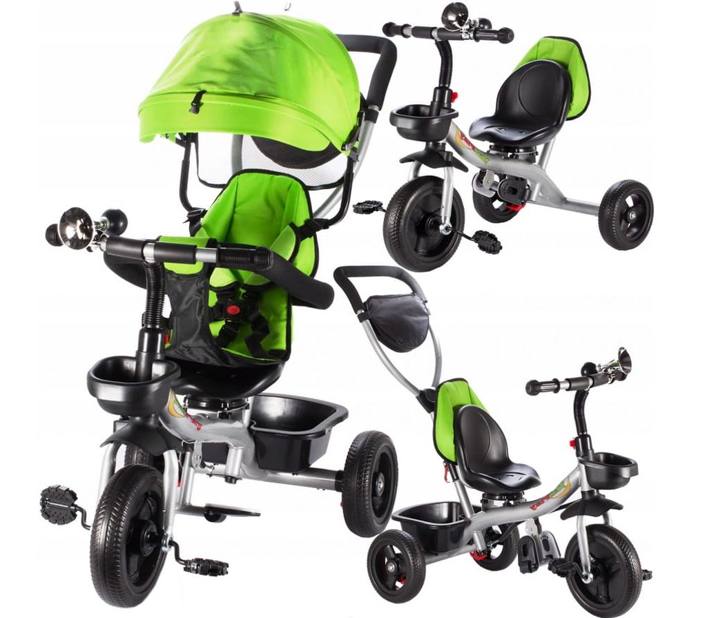Dětská tříkolka 3v1 s otočným sedadlem S360 zelená