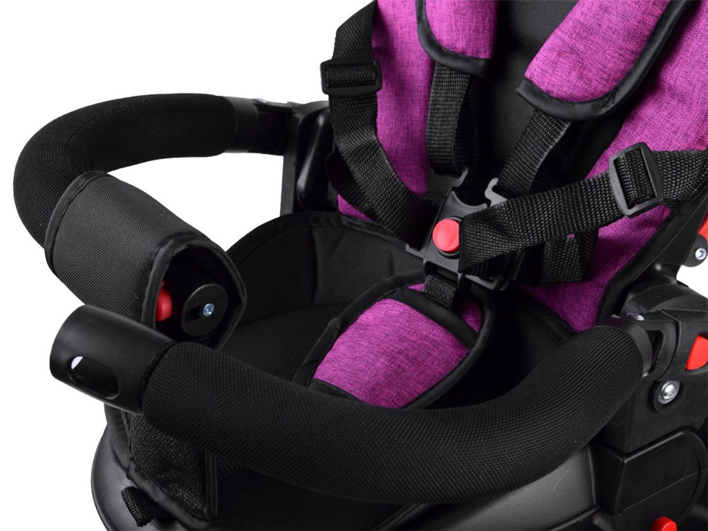 Dětská tříkolka Tiny Bike 3v1 s otočným sedadlem. Je určena pro děti od 6 měsíců do 5 let. Vybavena praktickou odnímatelnou stříškou proti slunci a dešti. V zadní části je umístěn velký koš na hračky, v přední části potom menší košík. Tříkolka má pevnou ocelovou konstrukci a odolná kola z pěnového plastu usazená v pevných plastových ráfcích. Madlo a 5bodový bezpečnostní pás zabraňují vypadnutí dítěte z kočárku. Na řídítkách je umístěný zvoneček. Pro větší bezpečnost mohou tříkolku řídit i rodiče a zadní kola mají 2 nezávislé brzdy. Sedadlo lze otočit o 360° a to ve směru jízdy nebo čelem k rodiči a navíc usnadní nastupování nejmladším dětem.