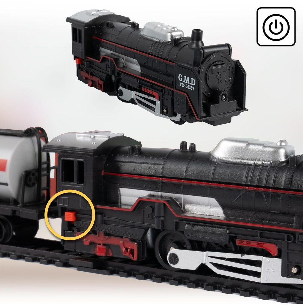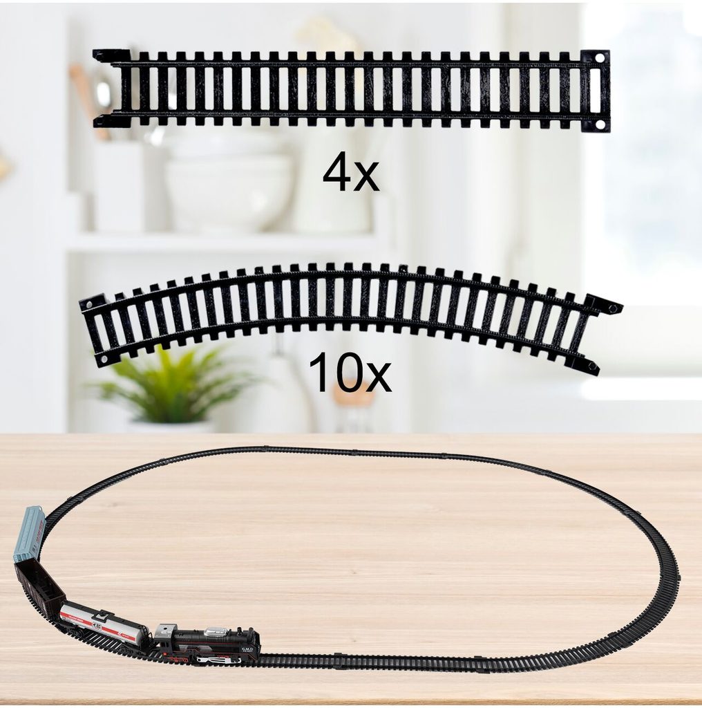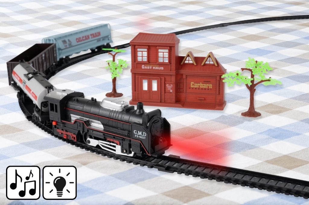 Vláčkodráha Rail King s lokomotivou na baterie učí dětí představivost a podporuje kreativitu. Vláčkodráha se skládá z celkem 19 součástí. Naleznete zde lokomotivu, která svítí, nákladní vagón, dvě cisterny, stromečky, nádraží a koleje. Vše je vyrobeno z plastu bez ostrých hran. Hračka je určena pro děti od 36 měsíců věku.