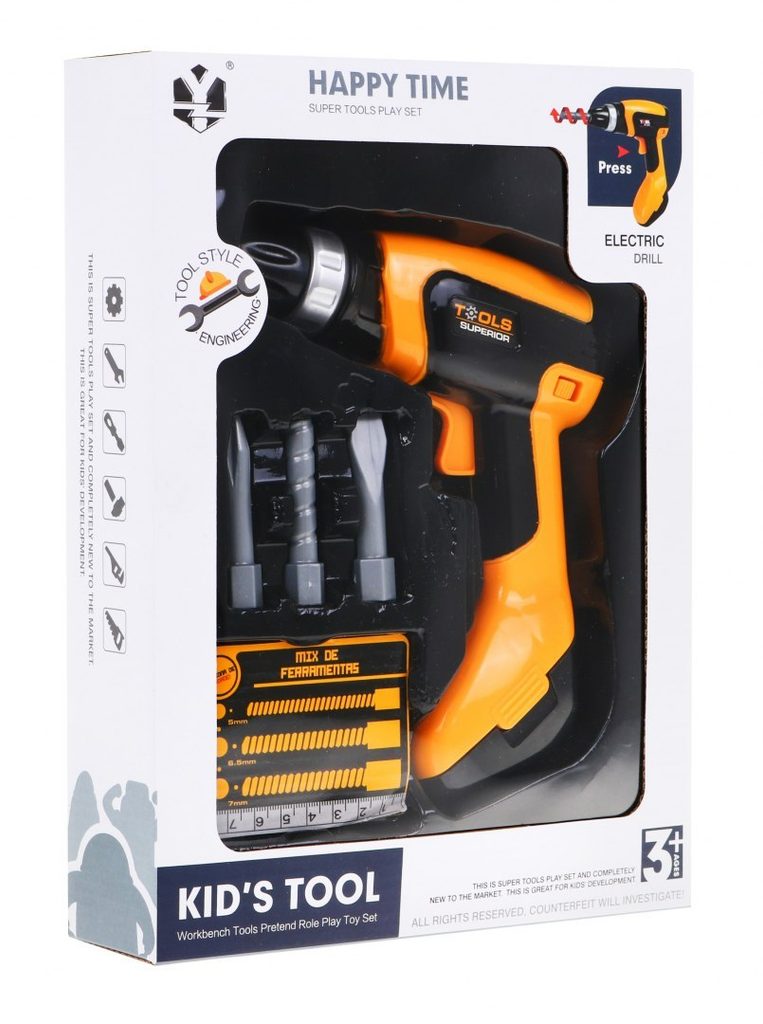 Dětská vrtačka na baterie Funny Drill je ideální hračkou pro rozvoj manuální zručnosti. Děti rády pozorují a napodobují dospělé. S touto vrtačkou, která vypadá a funguje jako skutečná může šroubovat a vrtat cokoliv. Součástí sady jsou také 3 výměnné nástavce a papírová měrka. Hračka je určena pro děti od 36 měsíců věku.