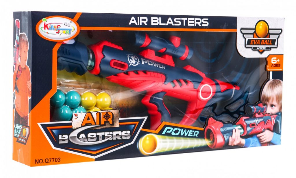Dětská vzduchová pistole Air Blaster je oblíbenou hračkou každého chlapce. Sada obsahuje pistoli a 12 měkkých kuliček, které vystřelí rychle za sebou. Ovládání zbraně je velmi jednoduché, stačí vložit kuličku do hlavně a natáhnout ji. Vytvoří se tak tlak, který způsobí vystřelení kuličky. Hračka je určena pro děti od 6 let věku..