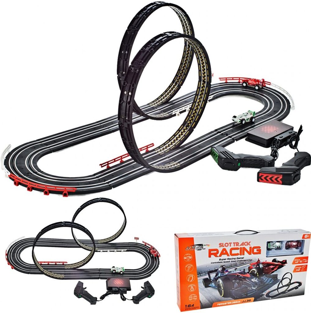 Dětská závodní autodráha Race Track je ideální hračkou pro všechny malé závodníky. Tato hračka nejen zabaví, ale má také pozitivní vliv na schopnost soustředění dítěte a koordinaci ruka-oko. Po rozložení má autodráha délku 388 cm. Součástí jsou 2 autíčka, která se ovládají dvěma ovladači. Hračka je vyrobena z plastu a určena pro děti od 3 let.