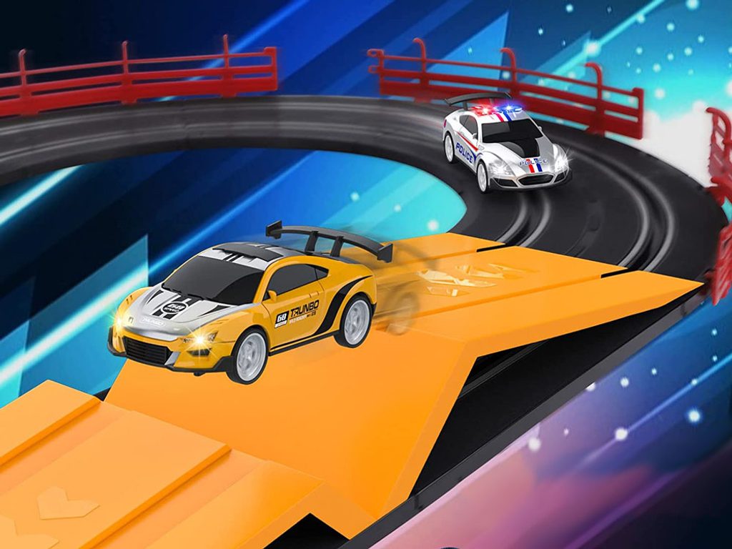 Dětská závodní autodráha Turbo Racing je ideální hračkou pro všechny malé závodníky. Tato hračka nejen zabaví, ale má také pozitivní vliv na schopnost soustředění dítěte a koordinaci ruka - oko. Po rozložení má autodráha délku 560 cm. Součástí jsou 2 autíčka, která se ovládají dvěma ovladači. Hračka je vyrobena z plastu a určena pro děti od 3 let.