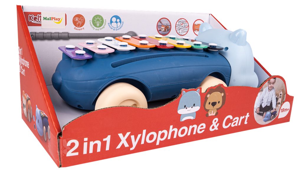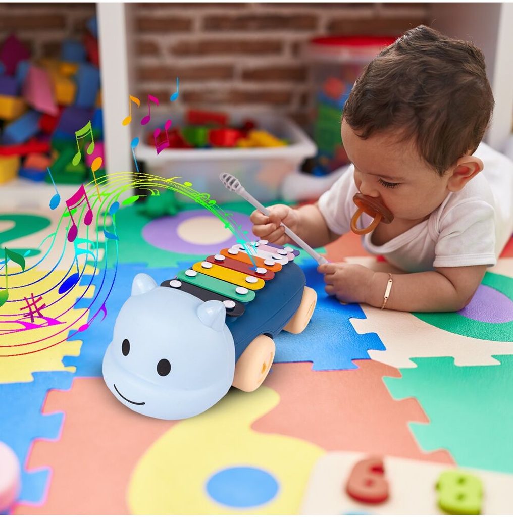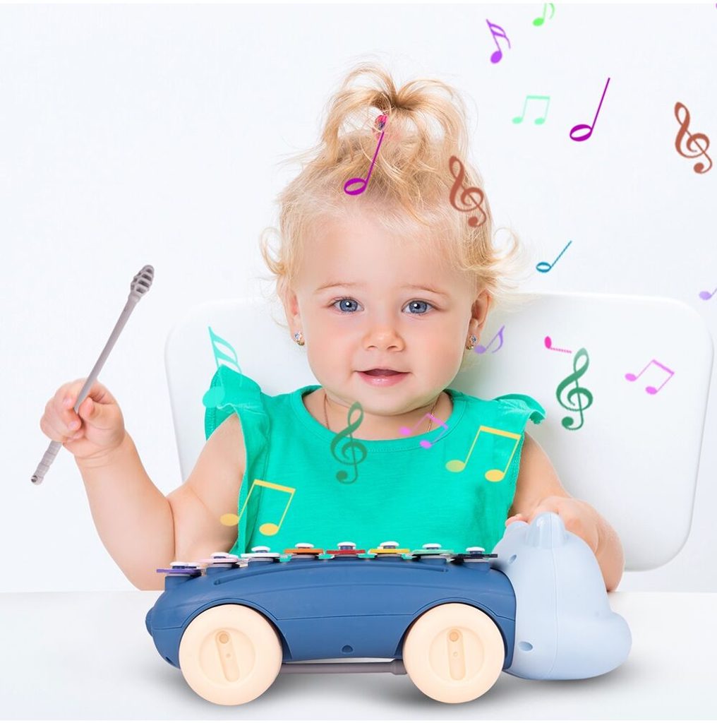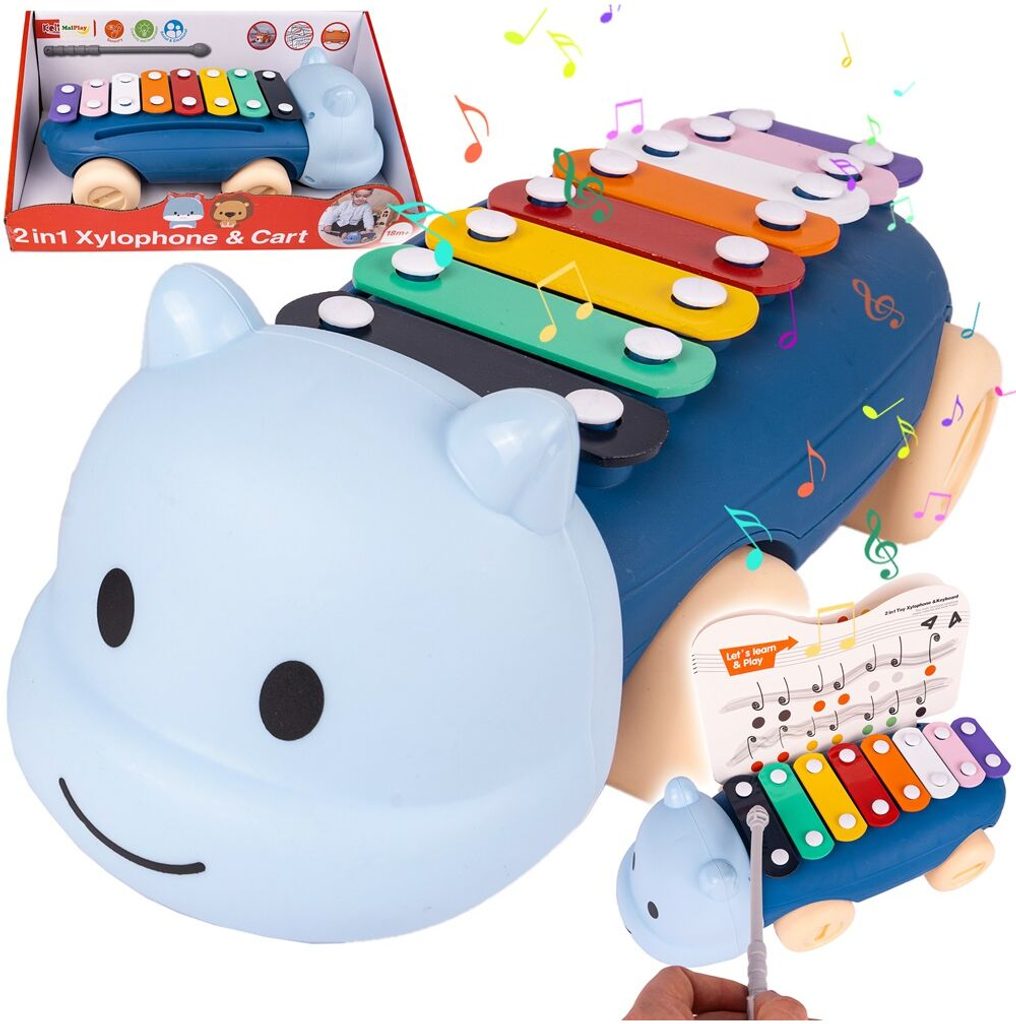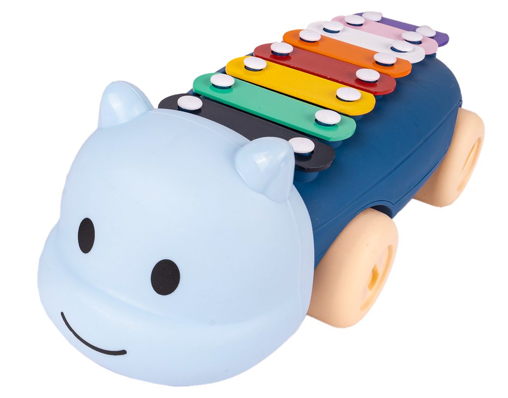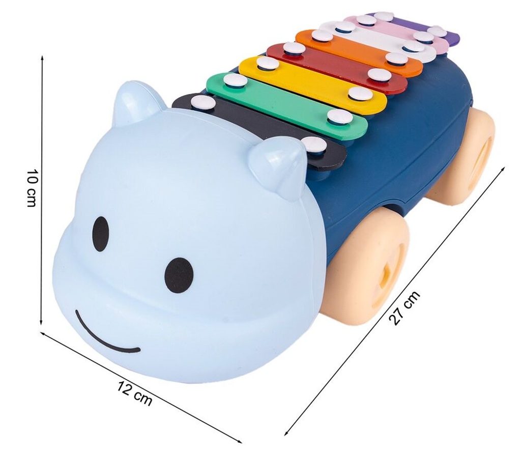 Dětské cimbálky Hrošík jsou určeny pro ty nejmenší děti. V horní části je umístěno 8 barevných destiček na které lze hrát pomocí přiložené paličky se šńůrkou. Jsou vyrobeny ve tvaru malého hrocha a mají ve spodní straně kolečka. Cimbálky jsou ideální hračkou pro rozvoj manuálních schopností, zraku, logického myšlení, rozpoznávání barev a číslic. Hračka je určena pro děti od 18 měsíců věku.