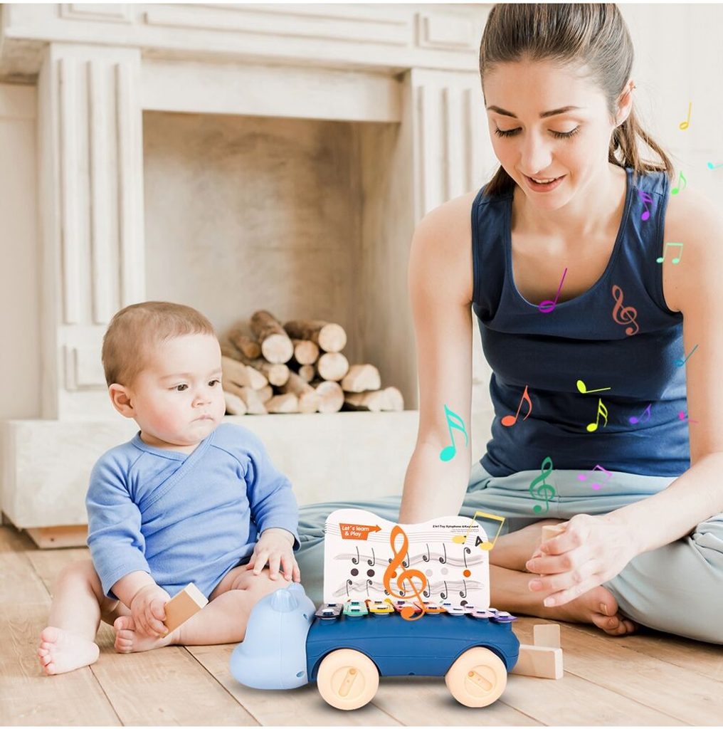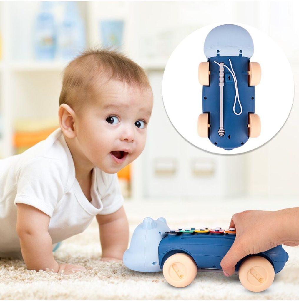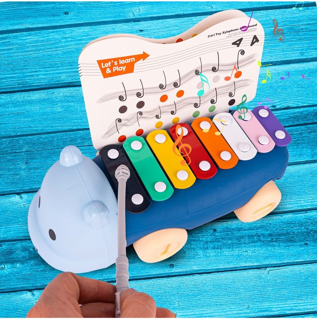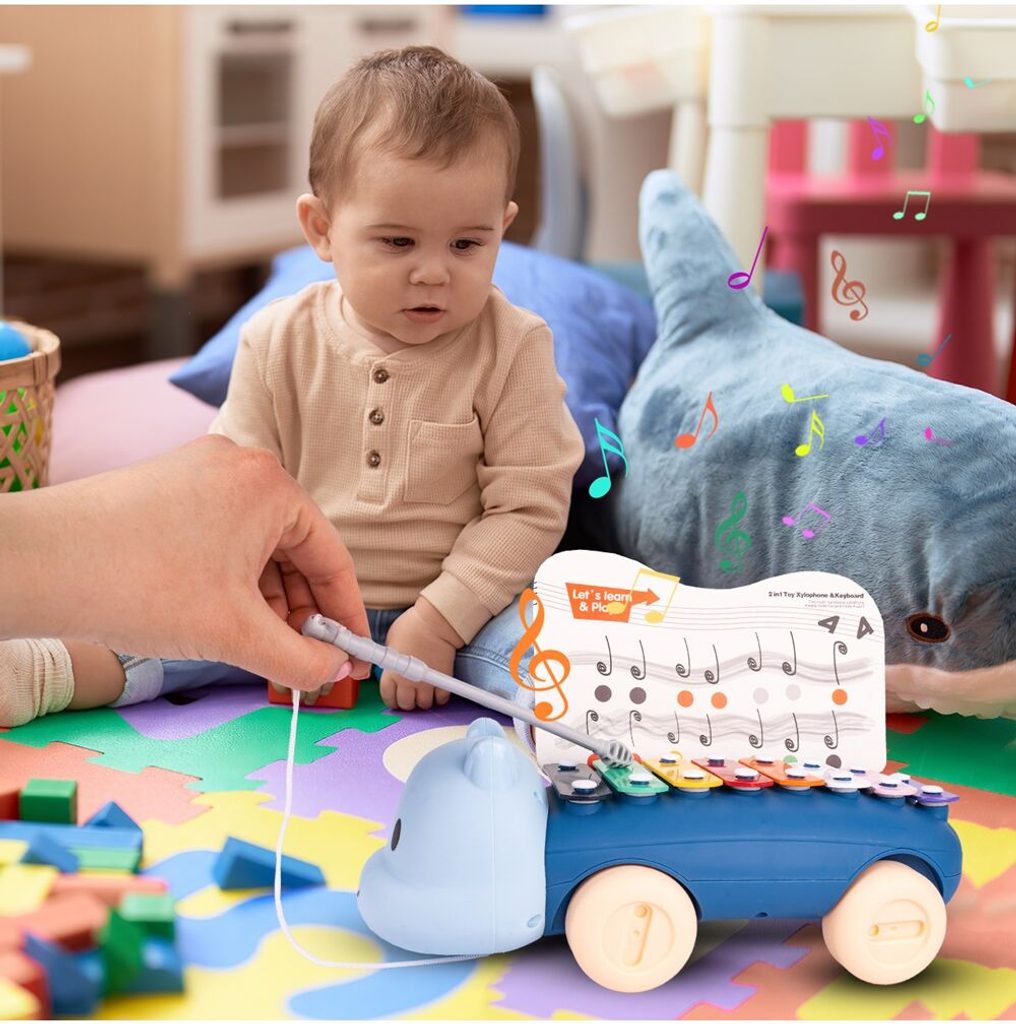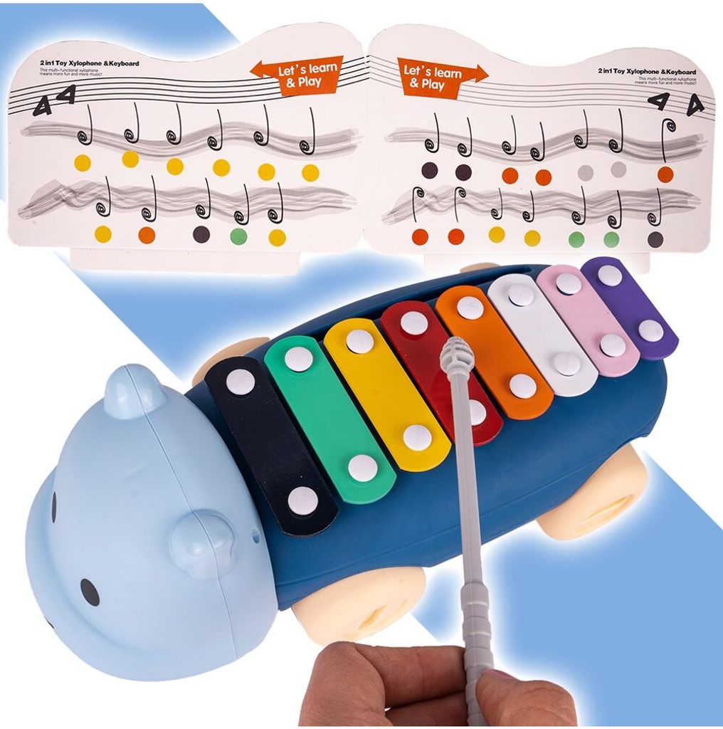 Dětské cimbálky Hrošík jsou určeny pro ty nejmenší děti. V horní části je umístěno 8 barevných destiček na které lze hrát pomocí přiložené paličky se šńůrkou. Jsou vyrobeny ve tvaru malého hrocha a mají ve spodní straně kolečka. Cimbálky jsou ideální hračkou pro rozvoj manuálních schopností, zraku, logického myšlení, rozpoznávání barev a číslic. Hračka je určena pro děti od 18 měsíců věku.