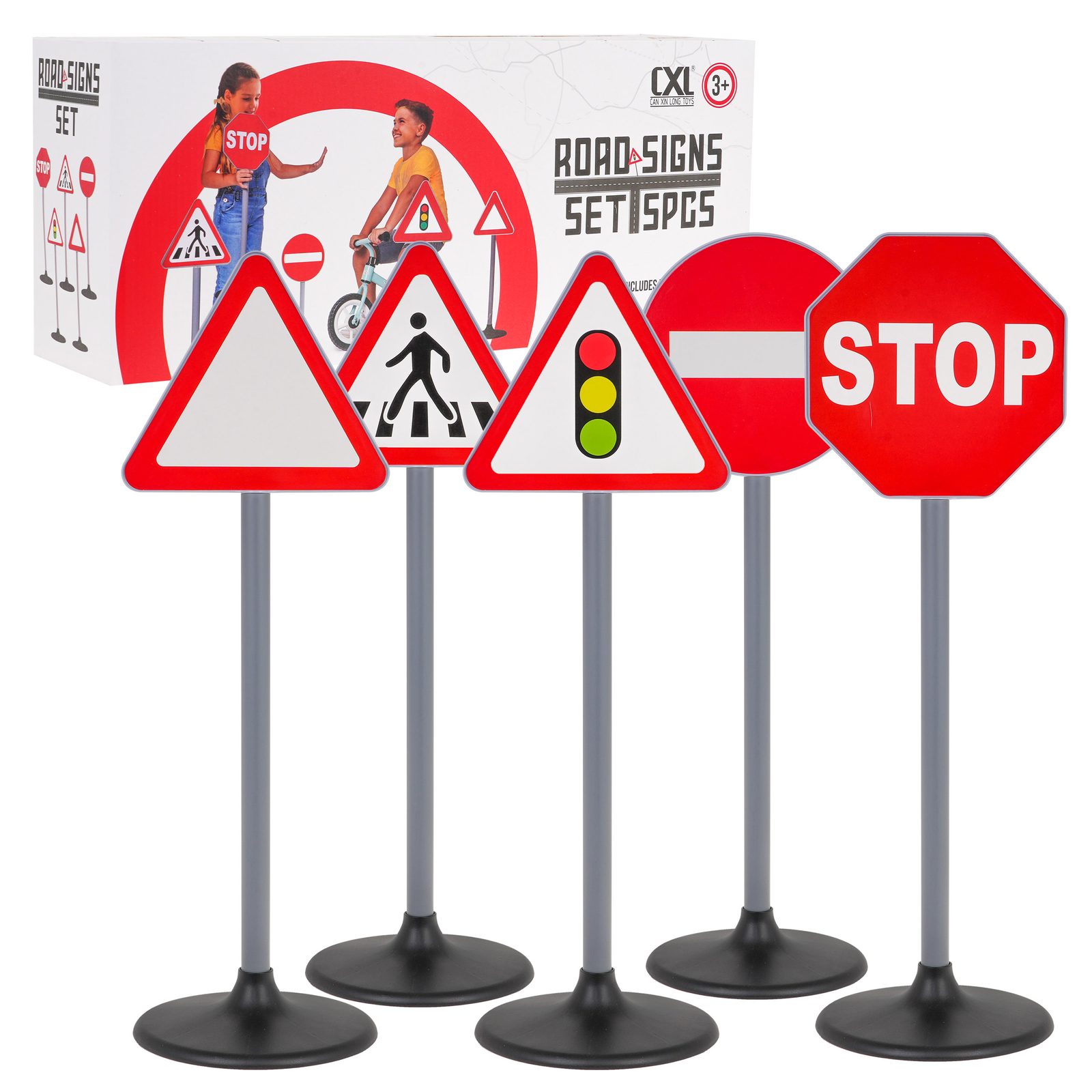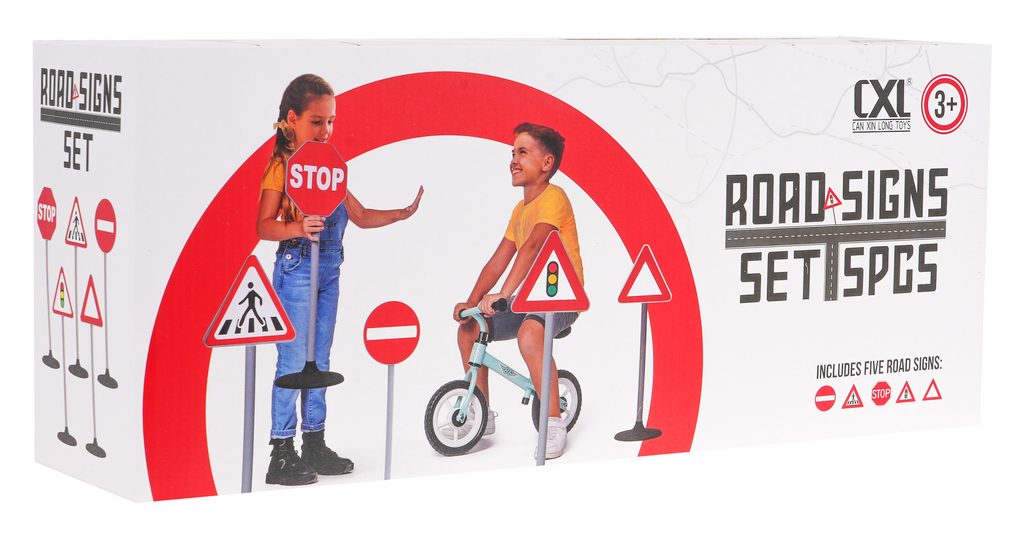 Sada dopravních značek Road Signs uspokojí každého malého řidiče. Lze je využít venku i doma. Snadno se rozkládají a můžete je rozmístit do podoby jakékoliv křižovatky nebo cesty. Dítě se s nimi snadno naučí pravidla provozu a jsou ideální pro jízdu na kole nebo v elektrickém vozítku. Hračka je určena pro děti od 3 let věku.