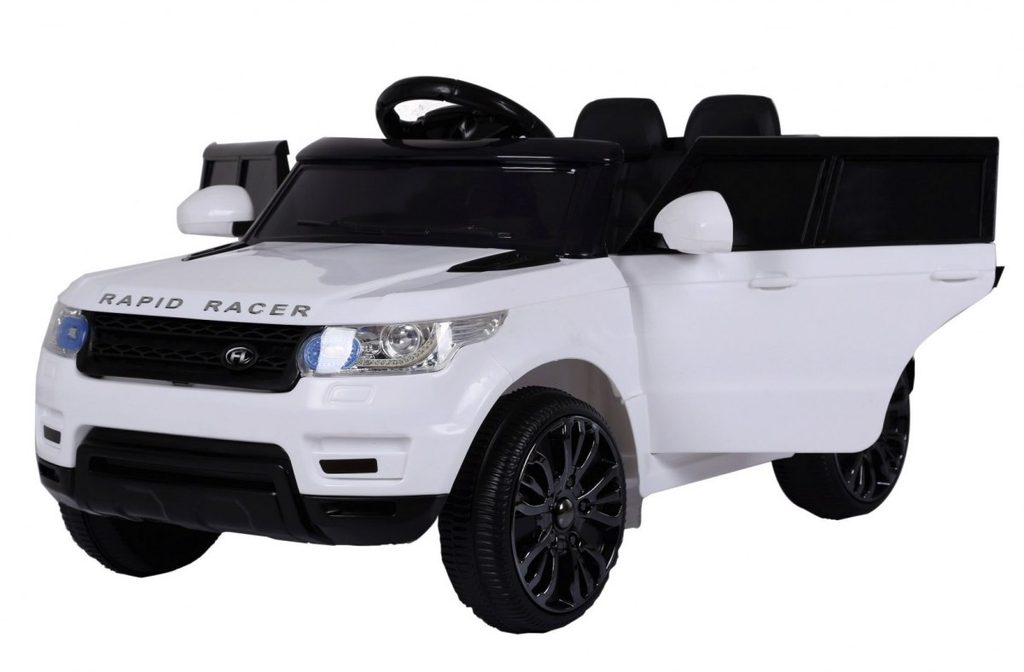 Dětská elektrické autíčko Land Rapid Racer s dálkovým ovladačem je určeno pro ty nejmenší děti a je poháněno dvěma 35W motory. Plastové sedadlo je vybaveno bezpečnostním pásem. Vstup pro USB a SD kartu, možnost přehrávání MP3. Dálkové ovládání včetně tlačítka STOP pro rodiče, kteří mohou autíčko řídit a jízdu si tak můžou užít i menší děti. Ve volantu jsou umístěna tlačítka s melodiemi a klaksonem. Osvětlení je zajištěno předními a zadními LED světly. Autíčko je vyrobeno z kvalitního materiálu a je velmi stabilní. Hrát si s ním je absolutně bezpečné.