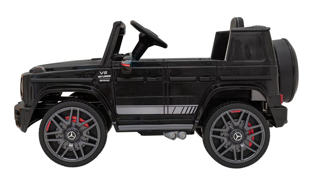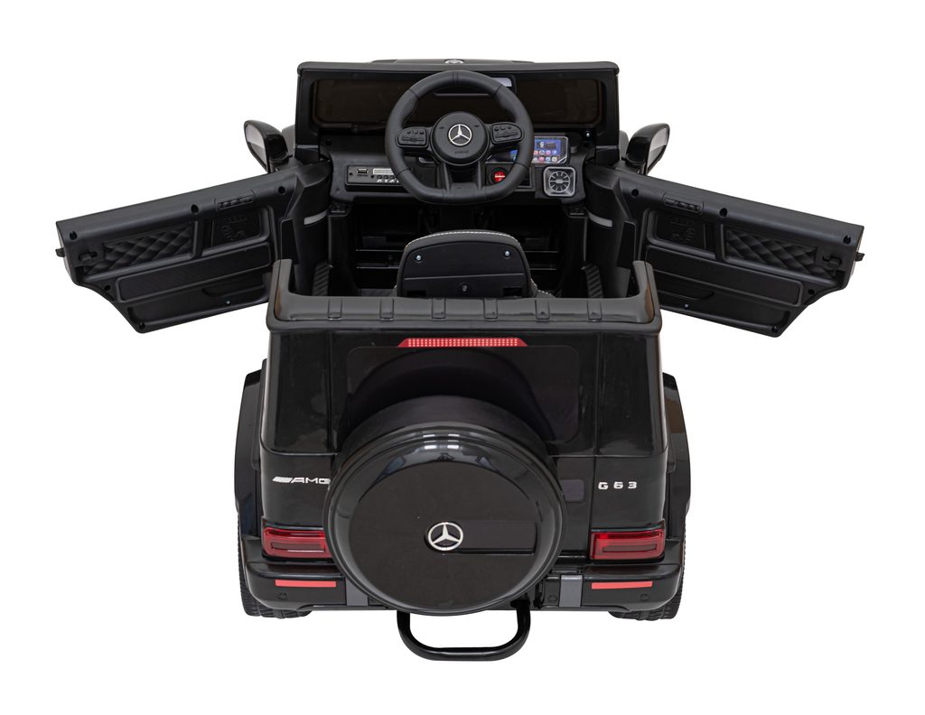 Dětská elektrické autíčko Mercedes AMG G63 s dálkovým ovladačem je určeno pro ty nejmenší děti a je poháněno dvěma 25W motory. Sedadlo z ekokůže je vybaveno bezpečnostním pásem. Vstup pro USB a SD kartu, možnost přehrávání MP3. Dálkové ovládání včetně tlačítka STOP pro rodiče, kteří mohou autíčko řídit a jízdu si tak můžou užít i menší děti. Ve volantu jsou umístěna tlačítka s melodiemi a klaksonem. Osvětlení je zajištěno předními LED světly. Autíčko je vyrobeno z kvalitního materiálu a je velmi stabilní. Hrát si s ním je absolutně bezpečné.