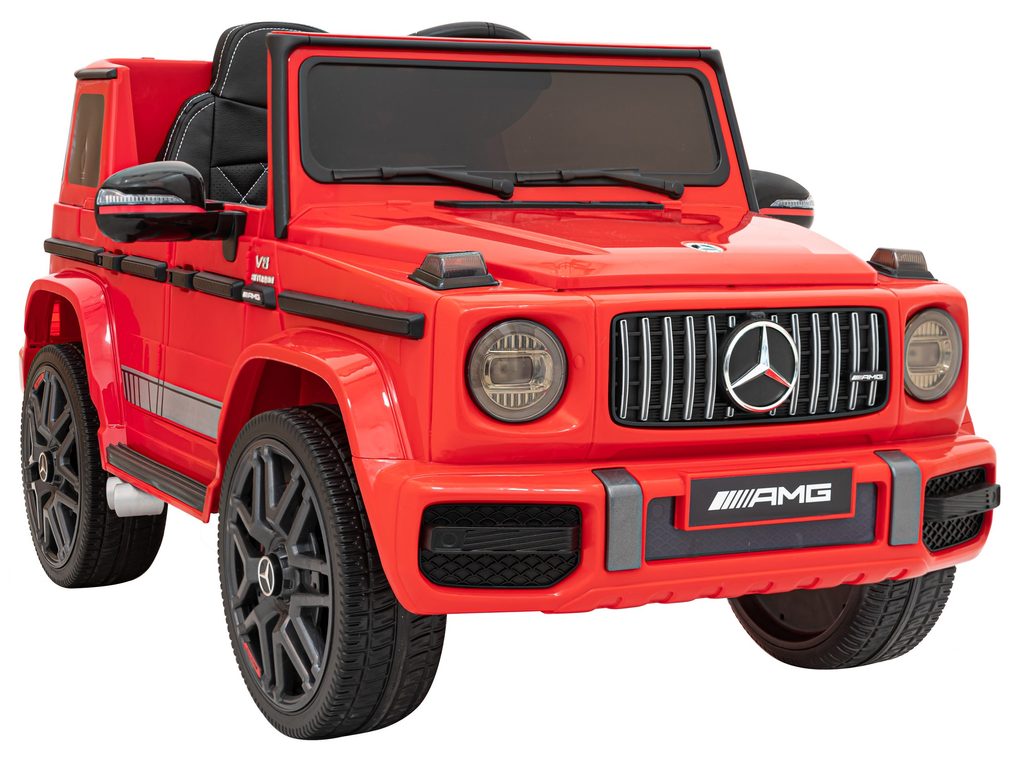 Dětská elektrické autíčko Mercedes AMG G63 s dálkovým ovladačem je určeno pro ty nejmenší děti a je poháněno dvěma 25W motory. Sedadlo z ekokůže je vybaveno bezpečnostním pásem. Vstup pro USB a SD kartu, možnost přehrávání MP3. Dálkové ovládání včetně tlačítka STOP pro rodiče, kteří mohou autíčko řídit a jízdu si tak můžou užít i menší děti. Ve volantu jsou umístěna tlačítka s melodiemi a klaksonem. Osvětlení je zajištěno předními LED světly. Autíčko je vyrobeno z kvalitního materiálu a je velmi stabilní. Hrát si s ním je absolutně bezpečné.