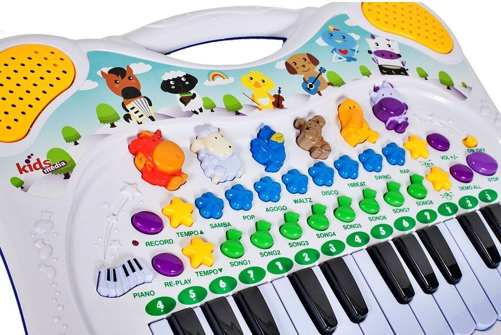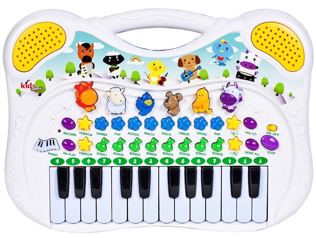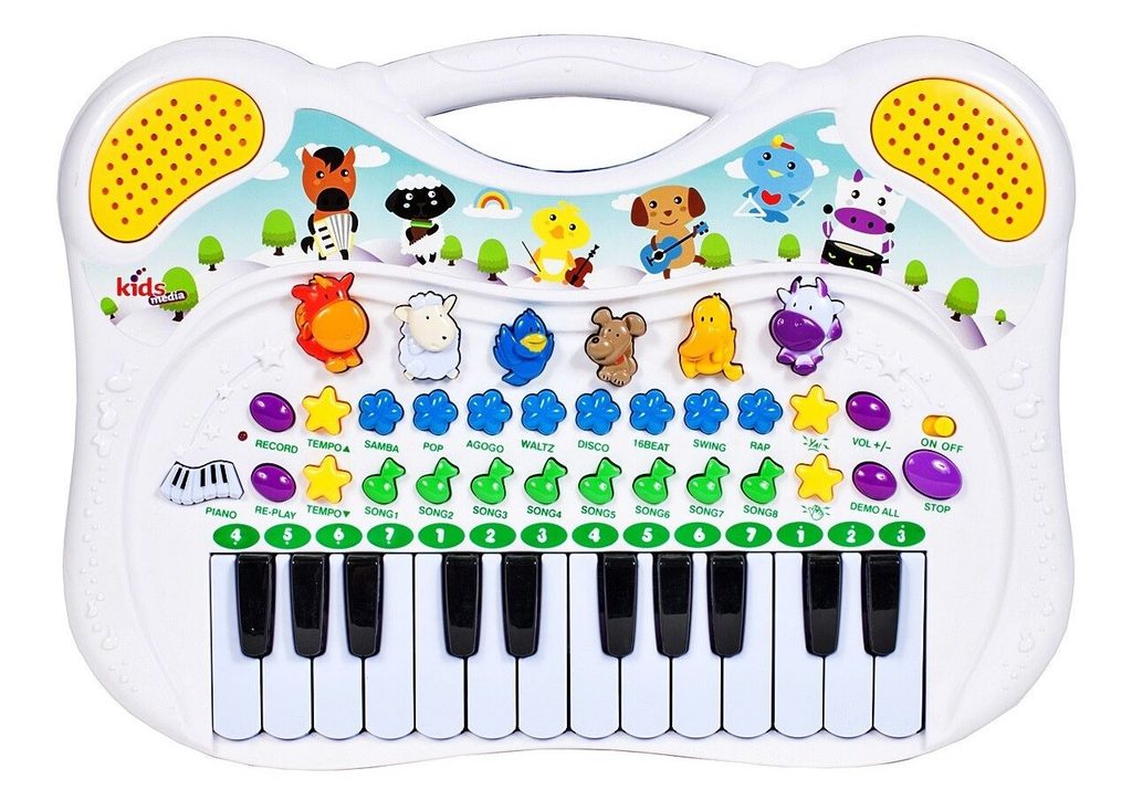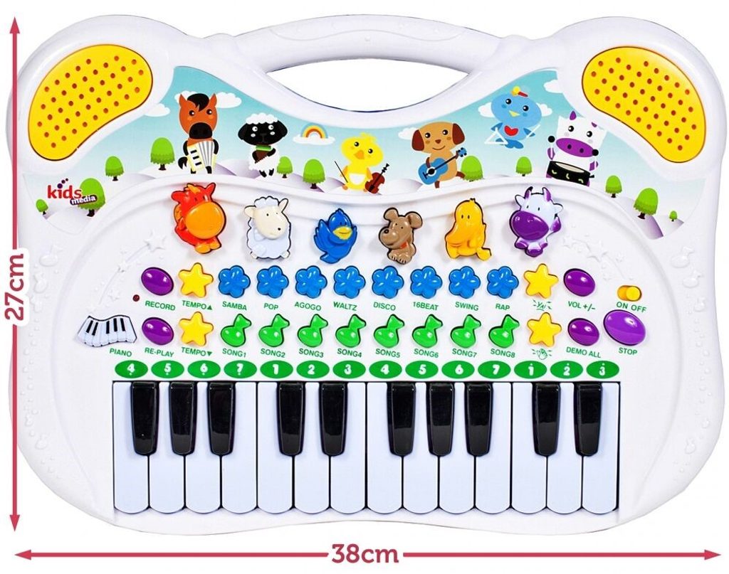 Multifunkční dětské klávesy se zvířátky Cartoon Piano nabídnou dětem několik druhů zábavy. V jednom režimu se přehrávají zvuky zvířátek, další klávesy spouští hudební podklady a veselé melodie. Ve výbavě je také možnost nahrávání a přehrávání, regulace hlasitosti, možnost změny tempa a také funkce klasického klavíru. Hračka je určena pro děti od 2 let věku.
