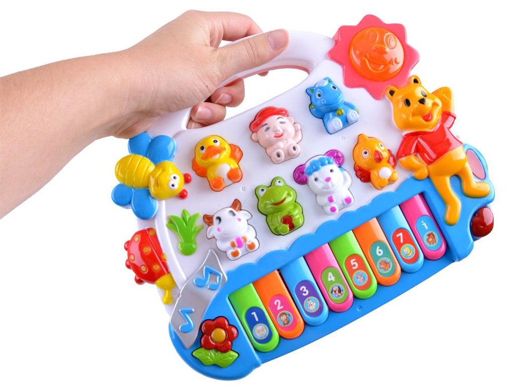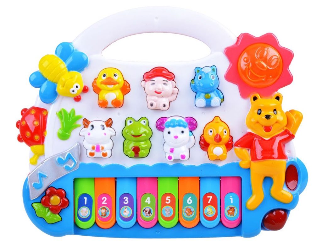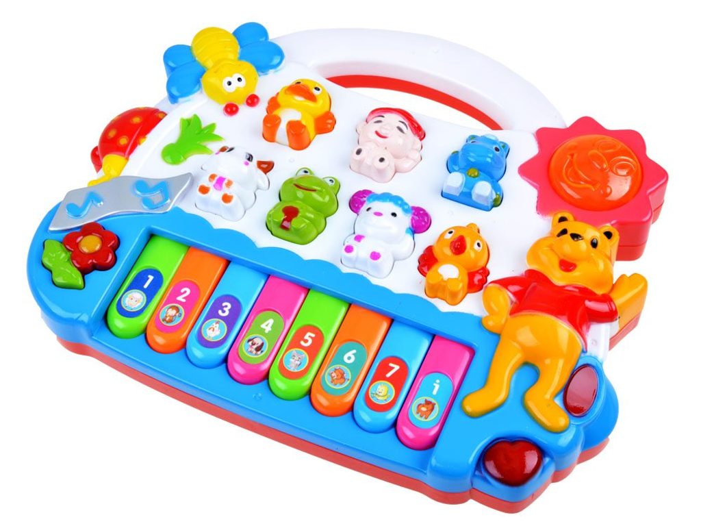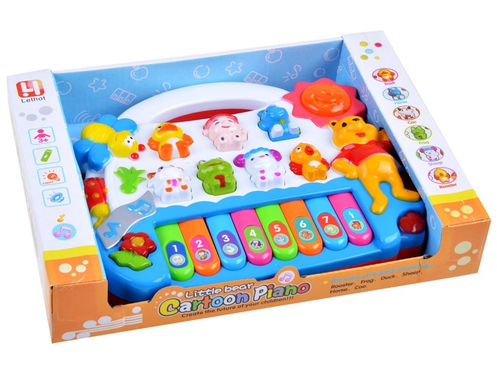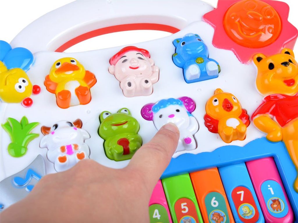 Multifunkční dětské klávesy Cartoon Piano nabídnou dětem celkem 4 druhy zábavy. V jednom režimu se učí jména zvířátek v angličtině, v dalších dvou režimech se ozývají zvuky zvířátek podle toho které tlačítko se zmáčkne a v posledním režimu dítě hádá jména zvířátek. Po úspěšném uhádnutí se ozve gratulace, v případě nesprávné odpovědi získá dítě informace o daném zvířátku v angličtině. jsou vybaveny 24 klávesami a dalšími funkčními tlačítky. Jednotlivé režimy se přepínají svítícím tlačítkem ve tvaru květinky. Hračka je určena pro děti od 6 měsíců.