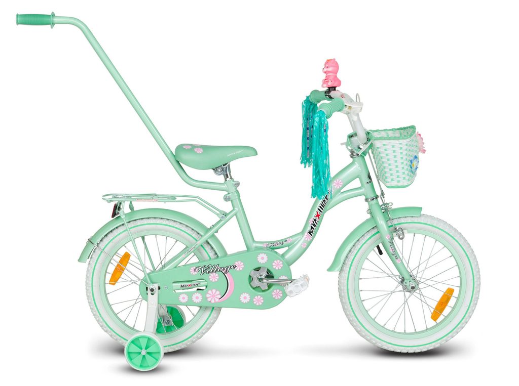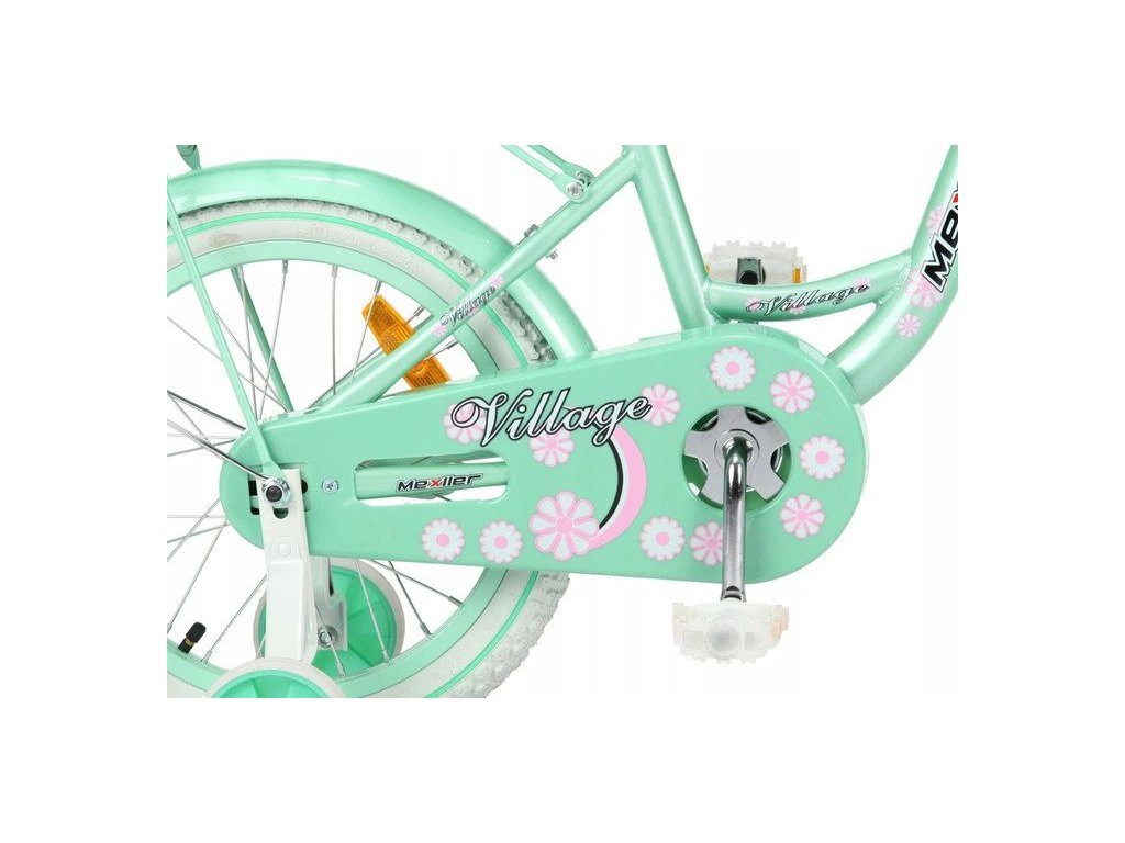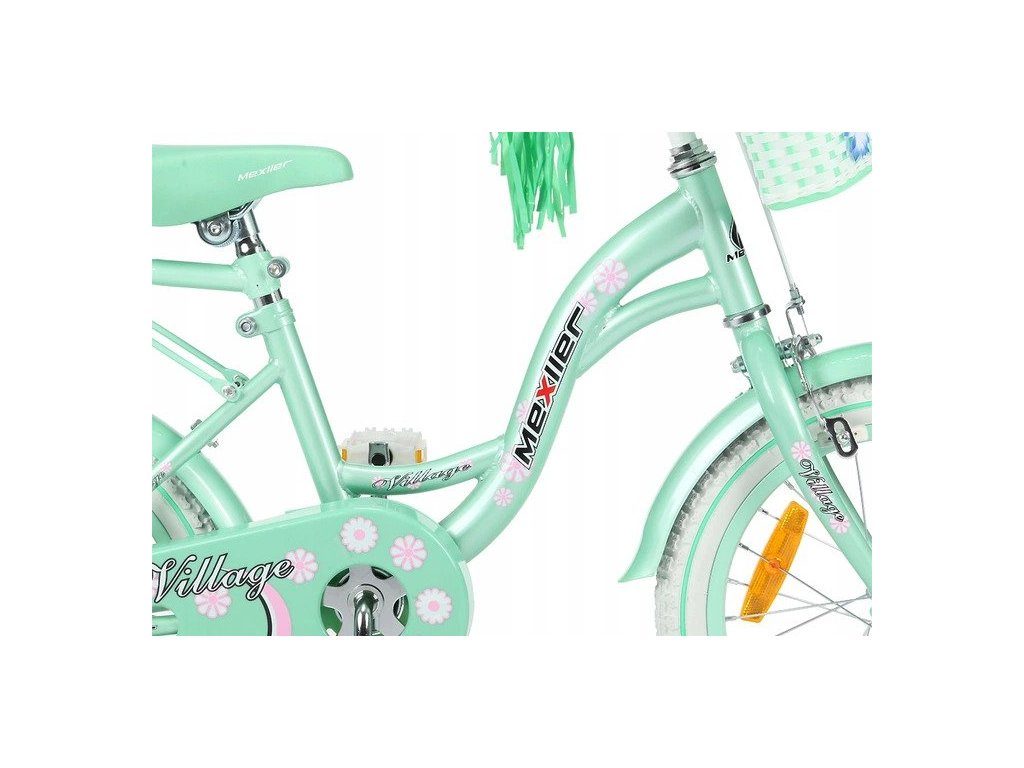 Dětské kolo Mexller Village s velikostí ráfků 12 palců je určeno pro nejmenší děti ve věku od 2 do 4 let s výškou do 105 cm. Kolo je opatřeno demontovatelnými balančními kolečky, dítě se tedy bude cítit hned od první jízdy bezpečně a stabilně. Kolo je vybaveno 2 druhy brzd. Brždění probíhá buď protisměrnou zadní brzdou "torpédem",která možnuje brzdit zpětným záběrem pedálů nebo lze použít přední pákovou brzdu. Proti nechtěnému namotání nohavice nebo tkaničky do řetězu má kolo kryt, který zakrývá celý řetěz. Sedadlo i řídítka jsou výškově nastavitelné. Na řídítkách je umístěn pletený košík.