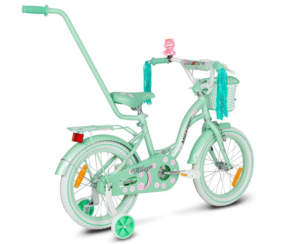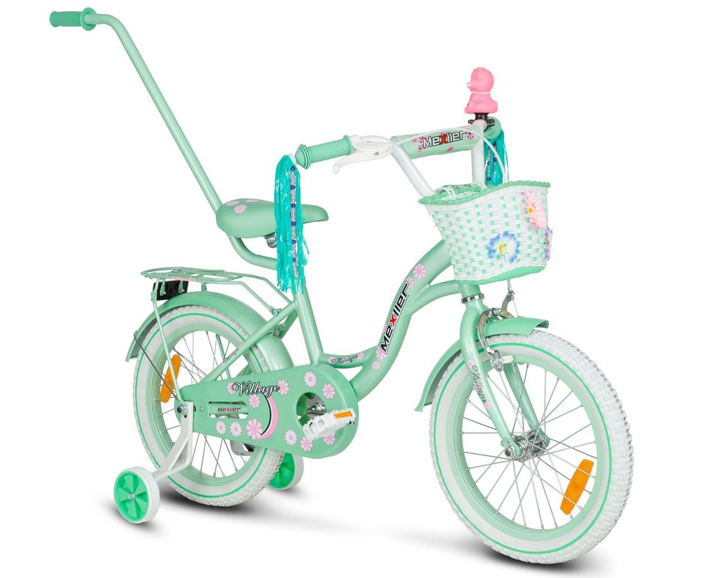 Dětské kolo Mexller s velikostí ráfků 16 palců je určeno pro děti ve věku od 4 do 6 let s výškou do 120 cm. Kolo je opatřeno demontovatelnými balančními kolečky, dítě se tedy bude cítit hned od první jízdy bezpečně a stabilně. Kolo je vybaveno 2 druhy brzd. Brždění probíhá buď protisměrnou zadní brzdou "torpédem",která možnuje brzdit zpětným záběrem pedálů nebo lze použít přední pákovou brzdu. Proti nechtěnému namotání nohavice nebo tkaničky do řetězu má kolo kryt, který zakrývá celý řetěz. Sedadlo i řídítka jsou výškově nastavitelné. Na řídítkách je umístěn pletený košík.