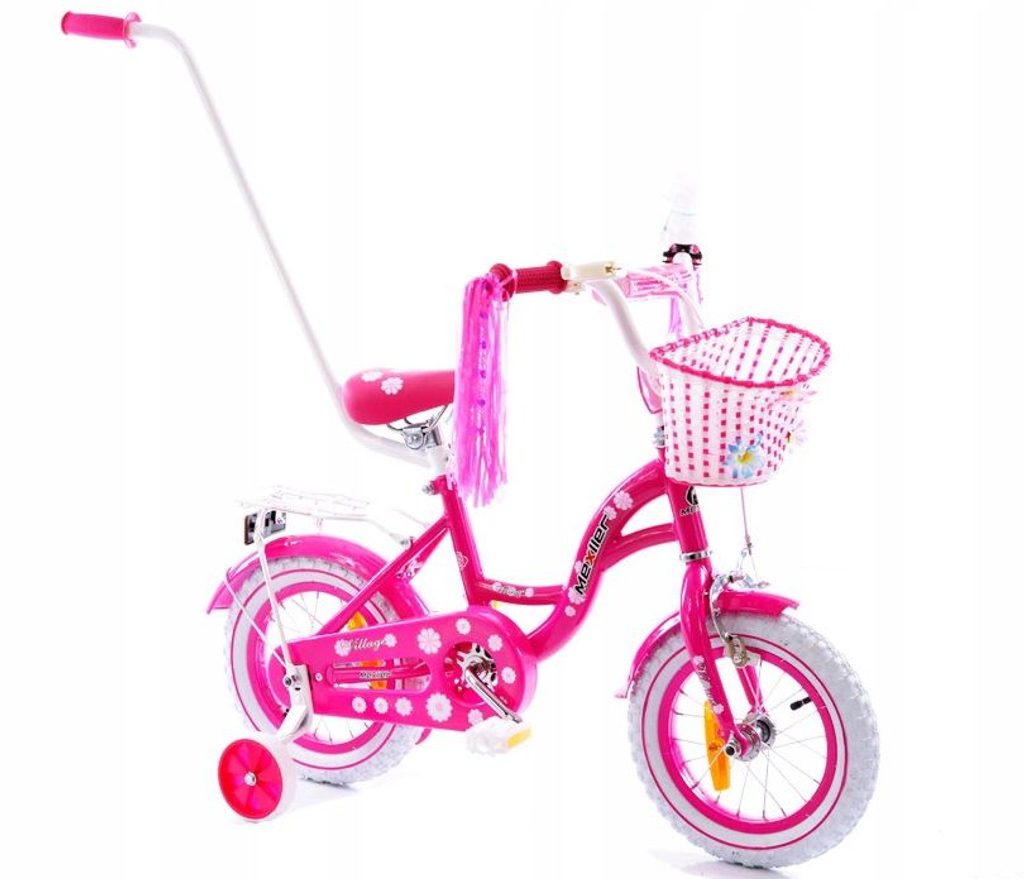 Dětské kolo Mexller Village s vodící tyčí růžová 12"