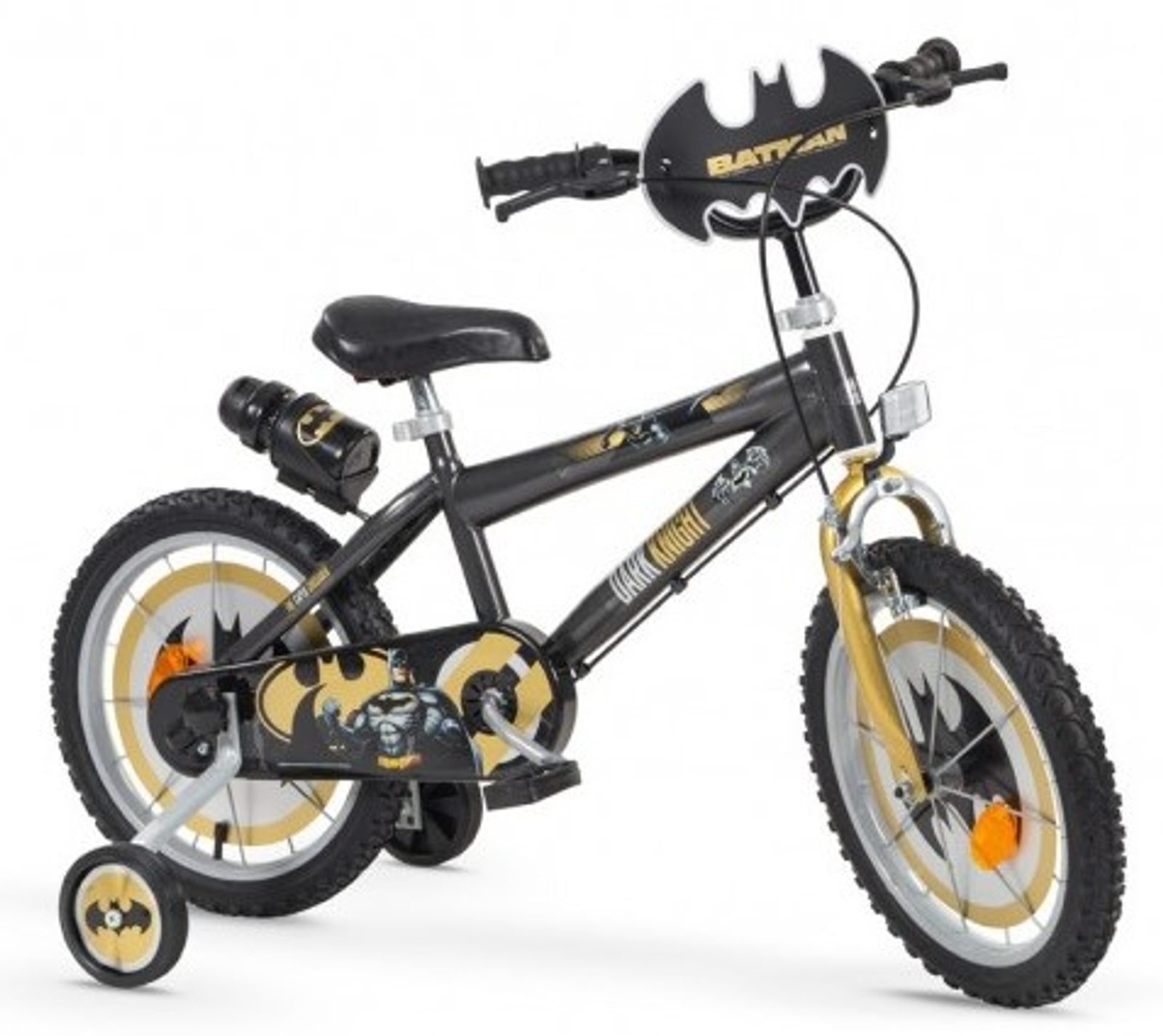 Originální dětské kolo od španělského výrobce Toimsa Batman s velikostí ráfků 16 palců je určeno pro děti ve věku od 4 do 6 let s výškou do 105 cm. Kolo je opatřeno demontovatelnými balančními kolečky, dítě se tedy bude cítit hned od první jízdy bezpečně a stabilně. Kolo je vybaveno 2 druhy brzd. Brždění probíhá buď zadní bubnovou brzdou nebo lze použít přední pákovou brzdu. Obě brzdy se ovládají pomocí páček umístěných na řídítkách. Proti nechtěnému namotání nohavice nebo tkaničky do řetězu má kolo kryt s barevným potiskem, který zakrývá celý řetěz. Sedadlo i řídítka jsou výškově nastavitelné. Na řídítkách je umístěn košíček. V zadní části je připevněný nosič s lahví na pití.