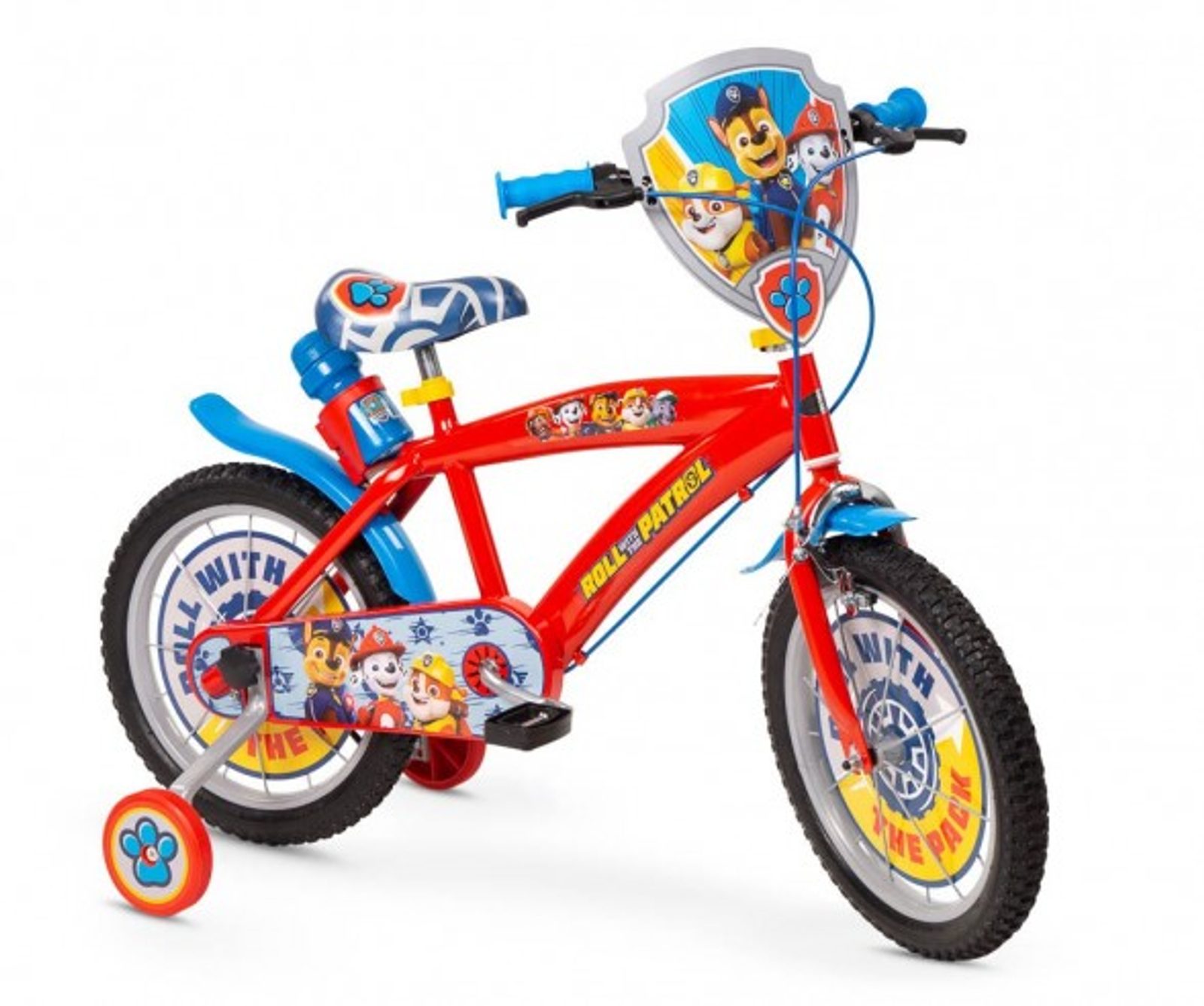 Originální dětské kolo od španělského výrobce Toimsa Paw Patrol s velikostí ráfků 16 palců je určeno pro děti ve věku od 4 do 6 let s výškou do 105 cm. Kolo je opatřeno demontovatelnými balančními kolečky, dítě se tedy bude cítit hned od první jízdy bezpečně a stabilně. Kolo je vybaveno 2 druhy brzd. Brždění probíhá buď zadní bubnovou brzdou nebo lze použít přední pákovou brzdu. Obě brzdy se ovládají pomocí páček umístěných na řídítkách. Proti nechtěnému namotání nohavice nebo tkaničky do řetězu má kolo kryt s barevným potiskem, který zakrývá celý řetěz. Sedadlo i řídítka jsou výškově nastavitelné. Na řídítkách je umístěn košíček. V zadní části je připevněný nosič s lahví na pití.