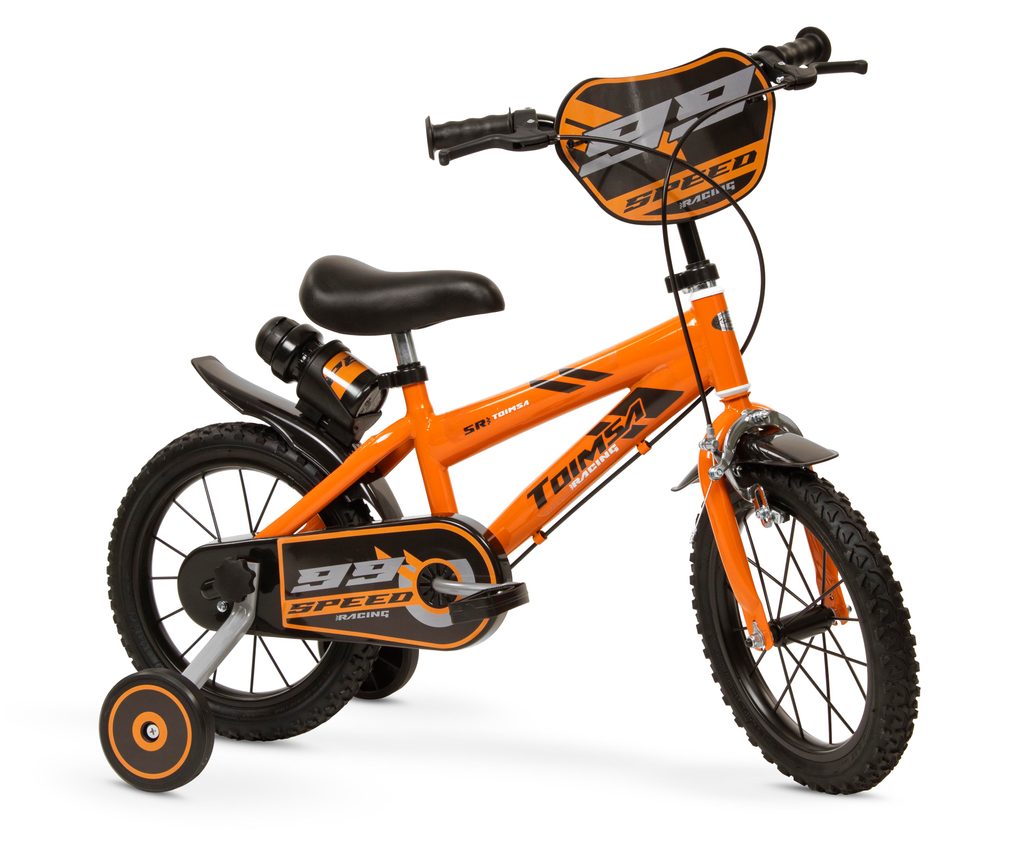 Originální dětské kolo od španělského výrobce Toimsa Speed Racing s velikostí ráfků 14 palců je určeno pro děti ve věku od 3,5 do 5 let s výškou do 100 cm. Kolo je opatřeno demontovatelnými balančními kolečky, dítě se tedy bude cítit hned od první jízdy bezpečně a stabilně. Kolo je vybaveno 2 druhy brzd. Brždění probíhá buď zadní bubnovou brzdou nebo lze použít přední pákovou brzdu. Obě brzdy se ovládají pomocí páček umístěných na řídítkách. Proti nechtěnému namotání nohavice nebo tkaničky do řetězu má kolo kryt s barevným potiskem, který zakrývá celý řetěz. Sedadlo i řídítka jsou výškově nastavitelné. V zadní části je připevněný nosič s lahví na pití.