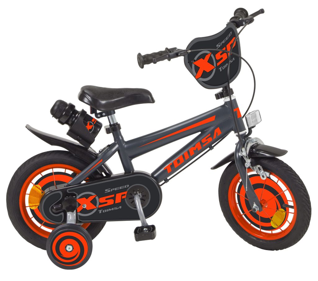 Originální dětské kolo od španělského výrobce Toimsa XSP Speed s velikostí ráfků 12 palců je určeno pro nejmenší děti ve věku od 3 do 4,5 let s výškou do 95 cm. Kolo je opatřeno demontovatelnými balančními kolečky, dítě se tedy bude cítit hned od první jízdy bezpečně a stabilně. Kolo je vybaveno 2 druhy brzd. Brždění probíhá buď zadní bubnovou brzdou nebo lze použít přední pákovou brzdu. Obě brzdy se ovládají pomocí páček umístěných na řídítkách. Proti nechtěnému namotání nohavice nebo tkaničky do řetězu má kolo kryt s barevným potiskem, který zakrývá celý řetěz. Sedadlo i řídítka jsou výškově nastavitelné. Za sedadlem je umístěný nosič s lahví na pití.