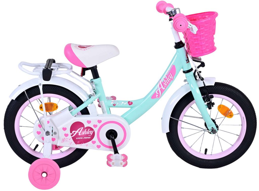 Originální dětské kolo od holandského výrobce Volare Ashley s velikostí ráfků 14 palců je určeno pro děti ve věku od 3,5 do 5 let s výškou do 100 cm. Kolo je opatřeno demontovatelnými balančními kolečky, dítě se tedy bude cítit hned od první jízdy bezpečně a stabilně. Kolo je vybaveno 2 druhy brzd. Brždění probíhá buď protisměrnou zadní brzdou "torpédem", která možnuje brzdit zpětným záběrem pedálů nebo lze použít přední pákovou brzdu. Proti nechtěnému namotání nohavice nebo tkaničky do řetězu má kolo kryt s barevným potiskem, který zakrývá celý řetěz. Sedadlo i řídítka jsou výškově nastavitelné. Na řídítkách je umístěn plastový košíček. V zadní části je připevněný nosič.