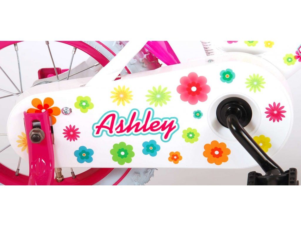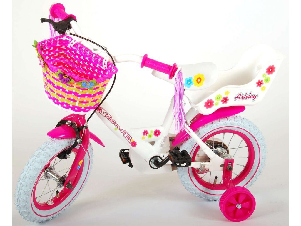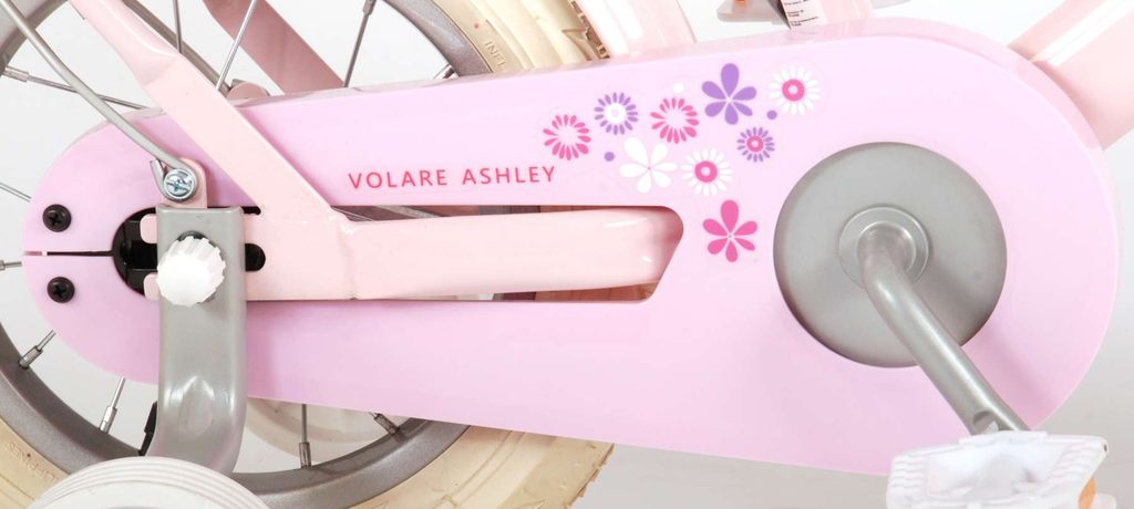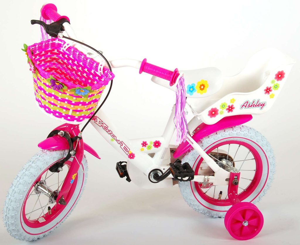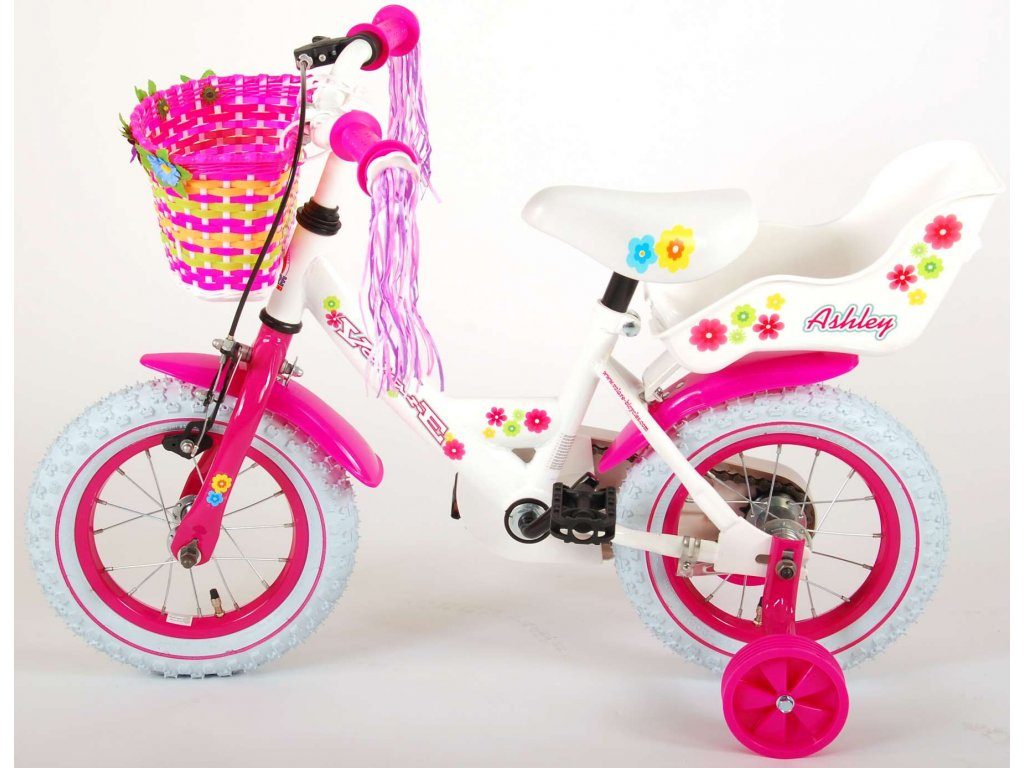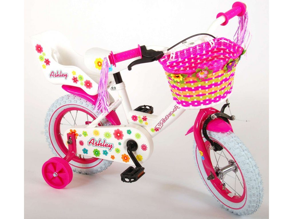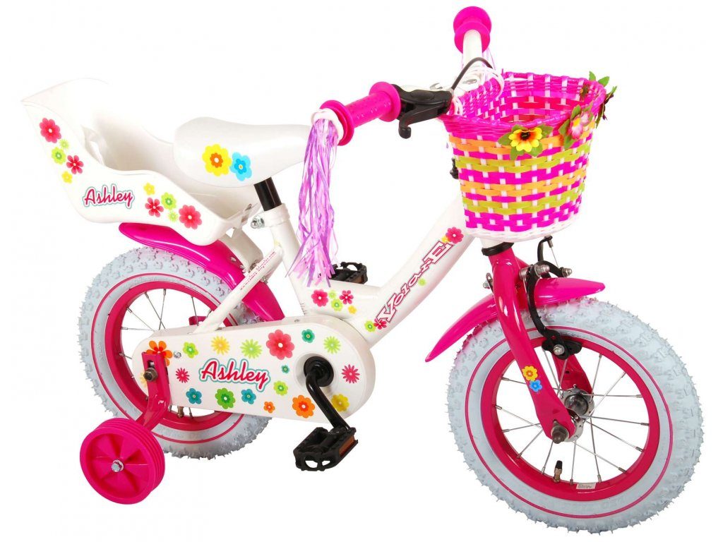 Originální dětské kolo od holandského výrobce Volare AshleyII s velikostí ráfků 12 palců je určeno pro nejmenší děti ve věku od 3 do 4 let s výškou do 95 cm. Kolo je opatřeno demontovatelnými balančními kolečky, dítě se tedy bude cítit hned od první jízdy bezpečně a stabilně. Kolo je vybaveno 2 druhy brzd. Brždění probíhá buď protisměrnou zadní brzdou "torpédem", která umožnuje brzdit zpětným záběrem pedálů nebo lze použít přední pákovou brzdu. Proti nechtěnému namotání nohavice nebo tkaničky do řetězu má kolo kryt s barevným potiskem, který zakrývá celý řetěz. Sedadlo i řídítka jsou výškově nastavitelné. Na řídítkách je umístěn plastový košíček. V zadní části je připevněný nosič.