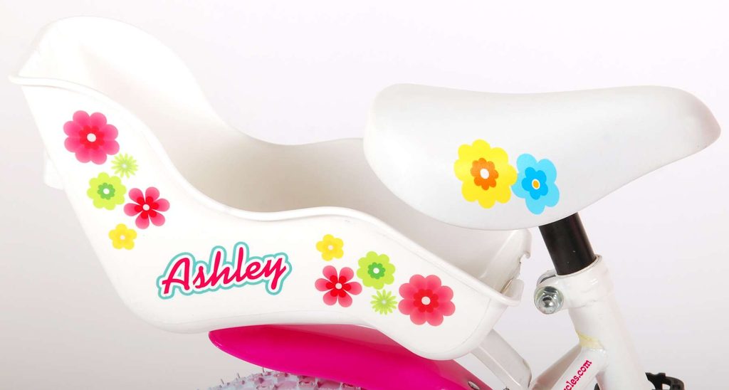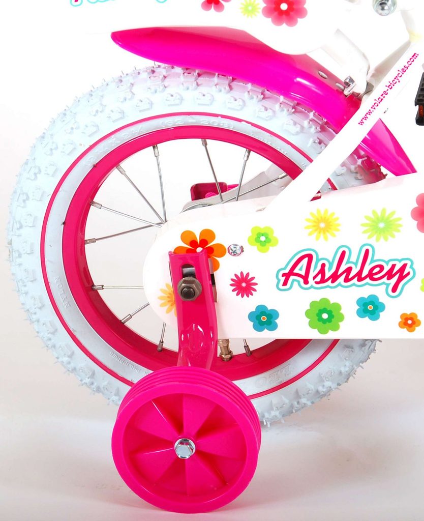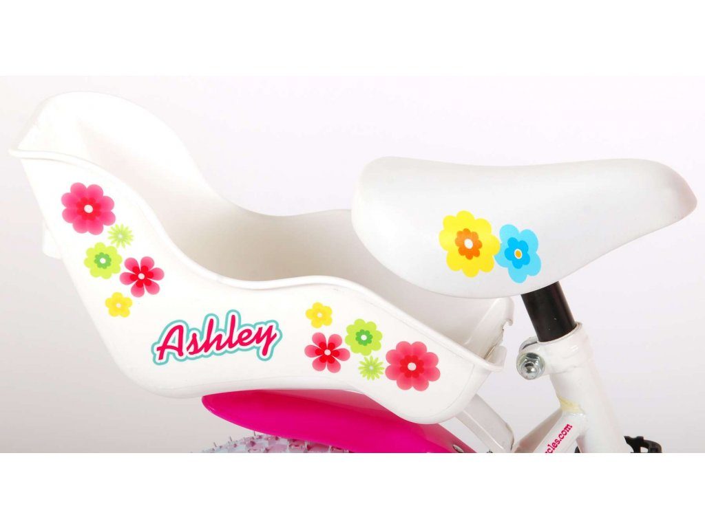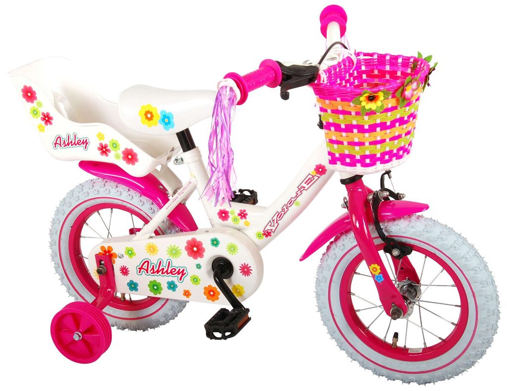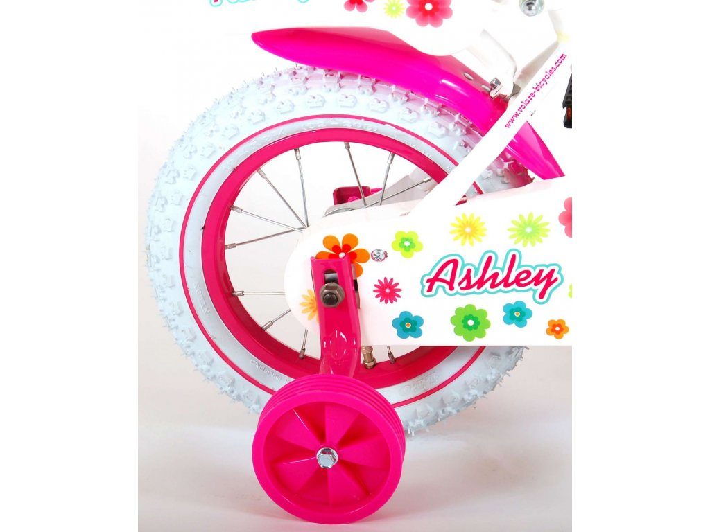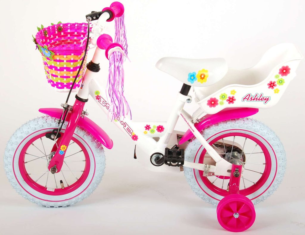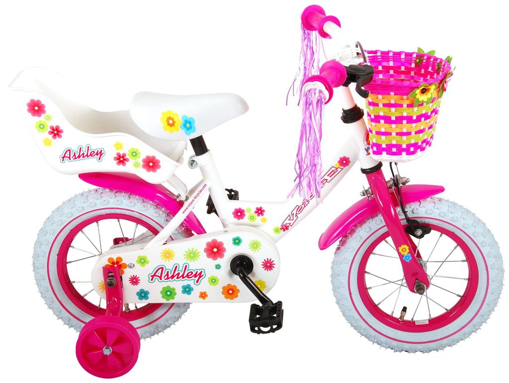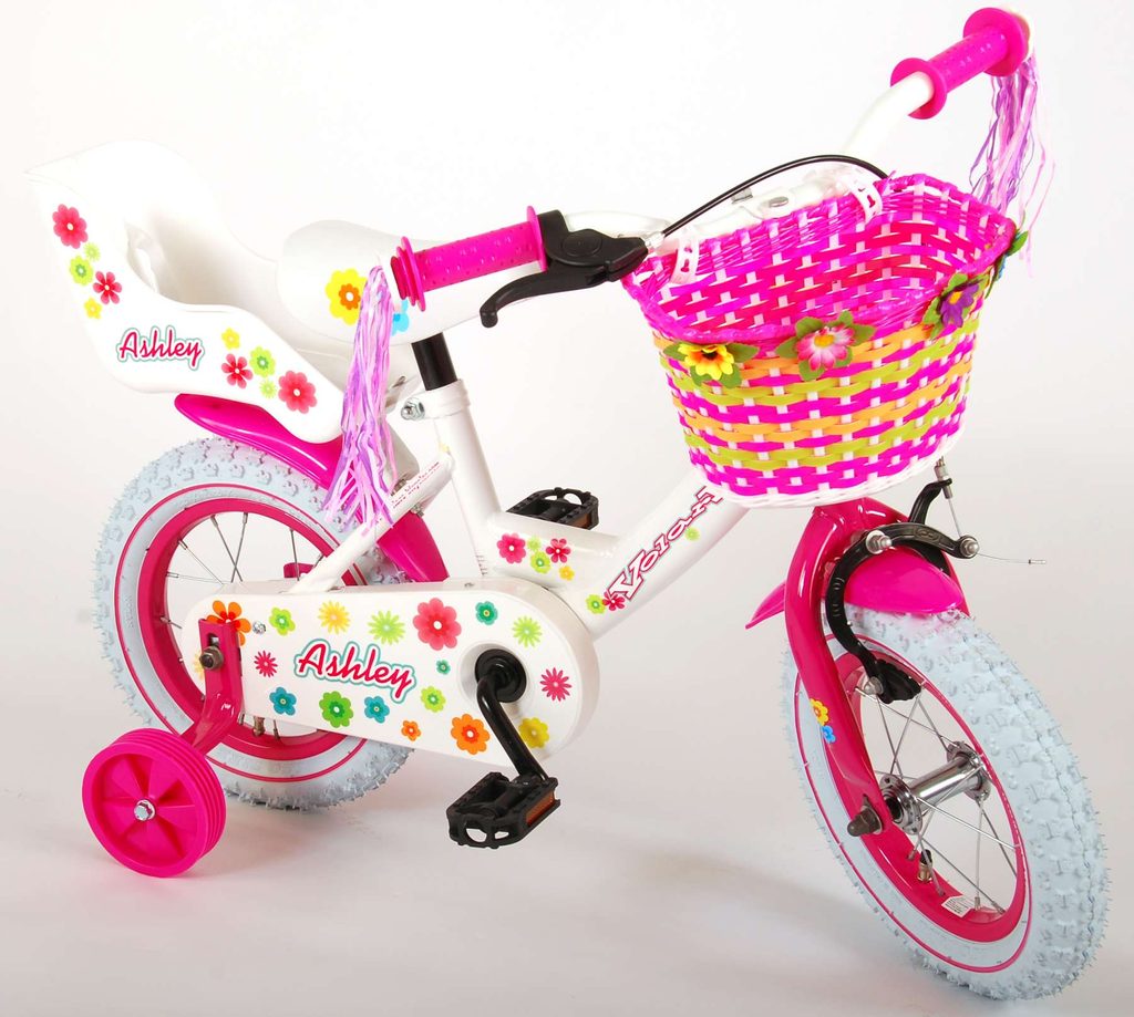 Originální dětské kolo od holandského výrobce Volare AshleyII s velikostí ráfků 12 palců je určeno pro nejmenší děti ve věku od 3 do 4 let s výškou do 95 cm. Kolo je opatřeno demontovatelnými balančními kolečky, dítě se tedy bude cítit hned od první jízdy bezpečně a stabilně. Kolo je vybaveno 2 druhy brzd. Brždění probíhá buď protisměrnou zadní brzdou "torpédem", která umožnuje brzdit zpětným záběrem pedálů nebo lze použít přední pákovou brzdu. Proti nechtěnému namotání nohavice nebo tkaničky do řetězu má kolo kryt s barevným potiskem, který zakrývá celý řetěz. Sedadlo i řídítka jsou výškově nastavitelné. Na řídítkách je umístěn plastový košíček. V zadní části je připevněný nosič.