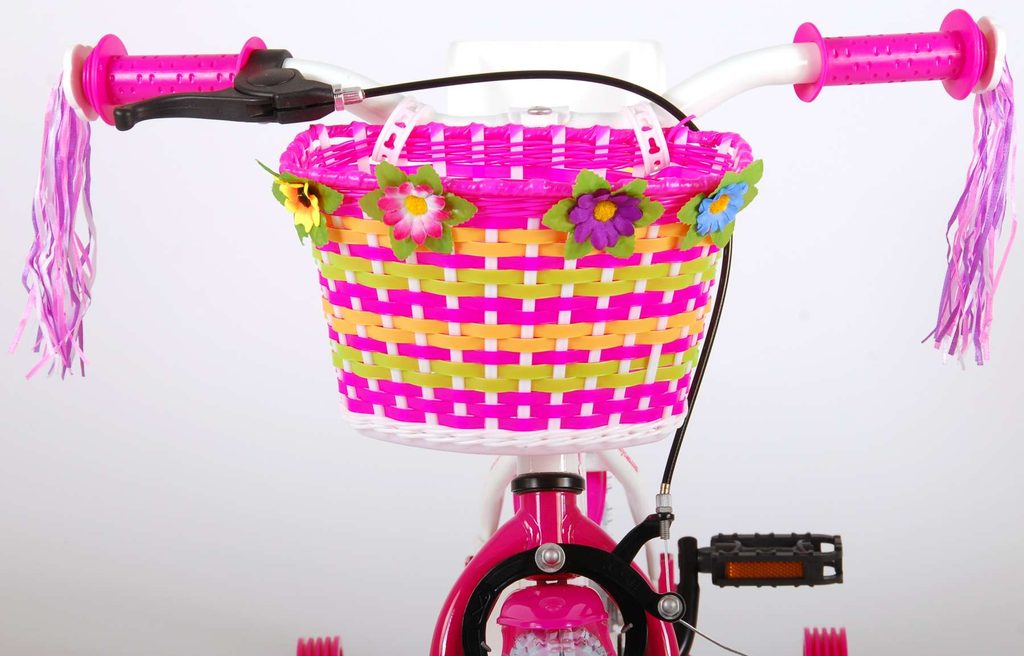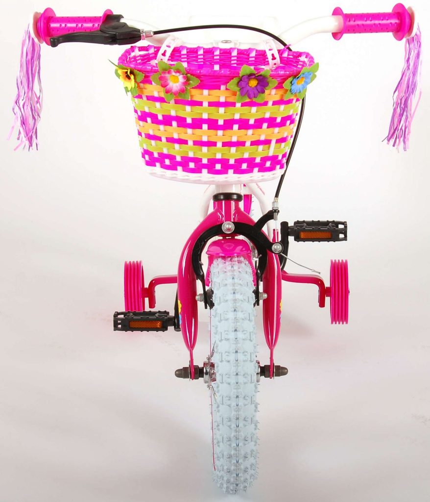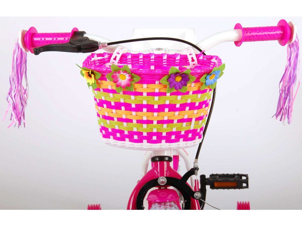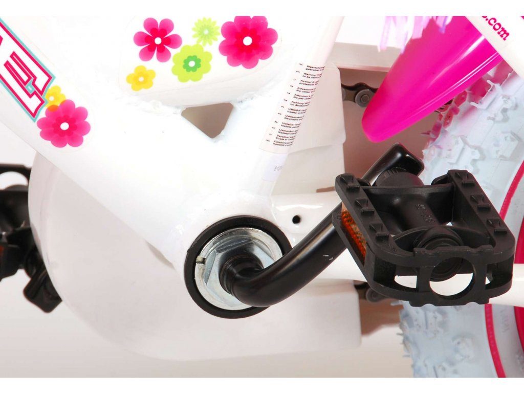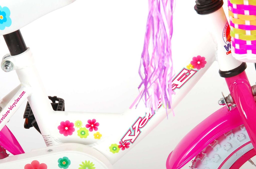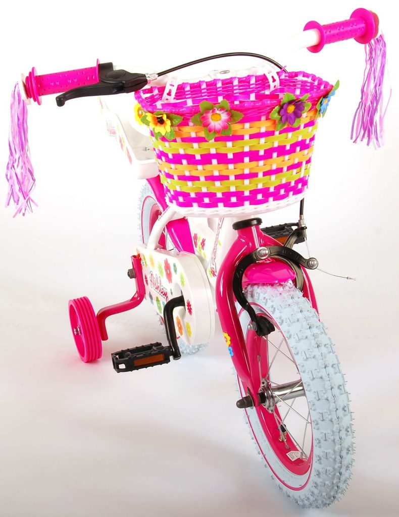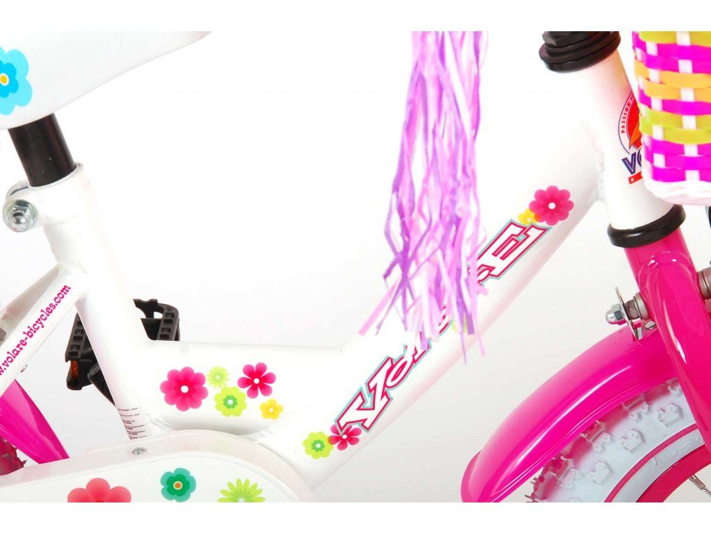 Originální dětské kolo od holandského výrobce Volare AshleyII s velikostí ráfků 12 palců je určeno pro nejmenší děti ve věku od 3 do 4 let s výškou do 95 cm. Kolo je opatřeno demontovatelnými balančními kolečky, dítě se tedy bude cítit hned od první jízdy bezpečně a stabilně. Kolo je vybaveno 2 druhy brzd. Brždění probíhá buď protisměrnou zadní brzdou "torpédem", která umožnuje brzdit zpětným záběrem pedálů nebo lze použít přední pákovou brzdu. Proti nechtěnému namotání nohavice nebo tkaničky do řetězu má kolo kryt s barevným potiskem, který zakrývá celý řetěz. Sedadlo i řídítka jsou výškově nastavitelné. Na řídítkách je umístěn plastový košíček. V zadní části je připevněný nosič.