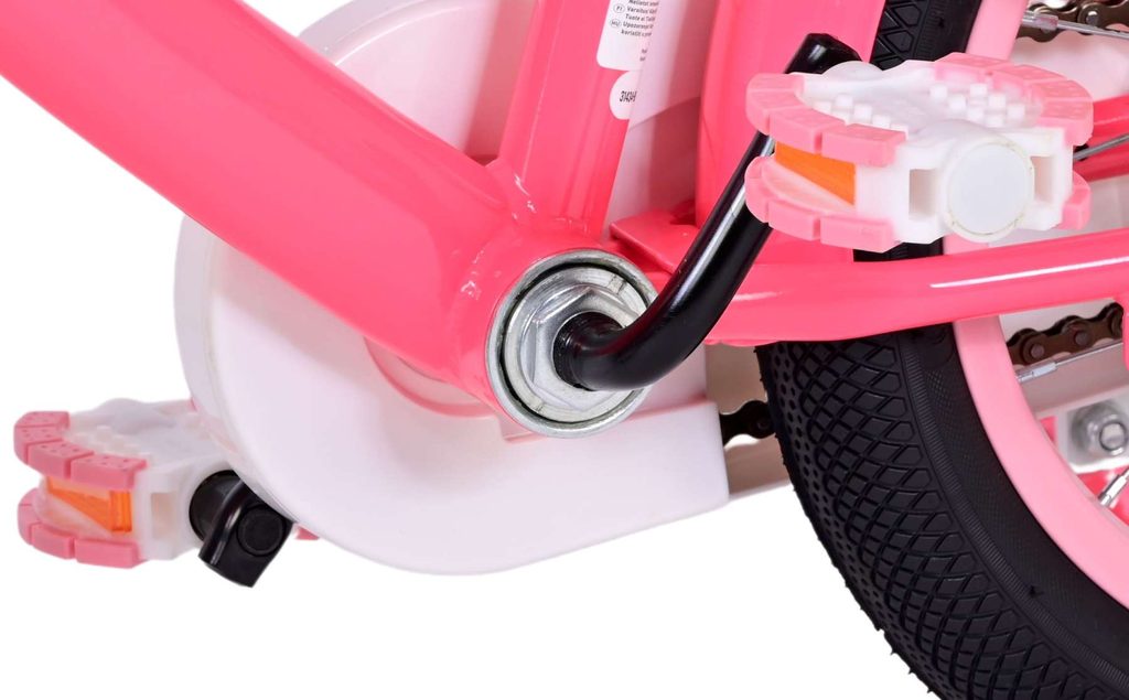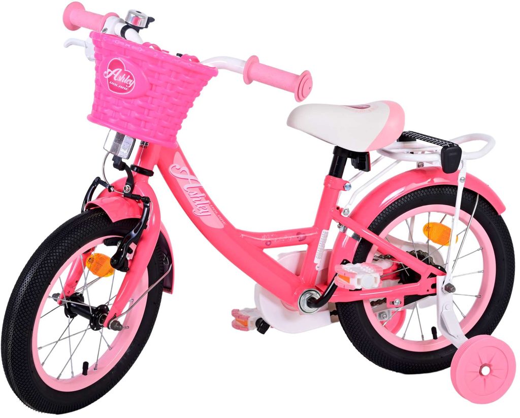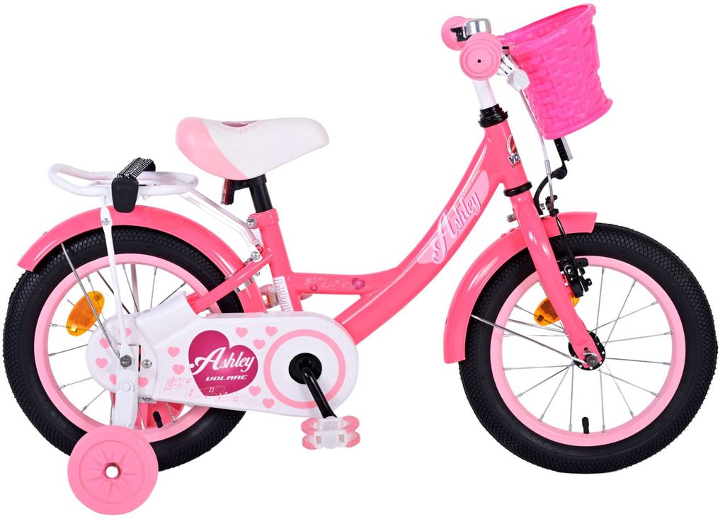 Originální dětské kolo od holandského výrobce Volare Ashley s velikostí ráfků 14 palců je určeno pro děti ve věku od 3,5 do 5 let s výškou do 100 cm. Kolo je opatřeno demontovatelnými balančními kolečky, dítě se tedy bude cítit hned od první jízdy bezpečně a stabilně. Kolo je vybaveno 2 druhy brzd. Brždění probíhá buď protisměrnou zadní brzdou "torpédem", která možnuje brzdit zpětným záběrem pedálů nebo lze použít přední pákovou brzdu. Proti nechtěnému namotání nohavice nebo tkaničky do řetězu má kolo kryt s barevným potiskem, který zakrývá celý řetěz. Sedadlo i řídítka jsou výškově nastavitelné. Na řídítkách je umístěn plastový košíček. V zadní části je připevněný nosič.