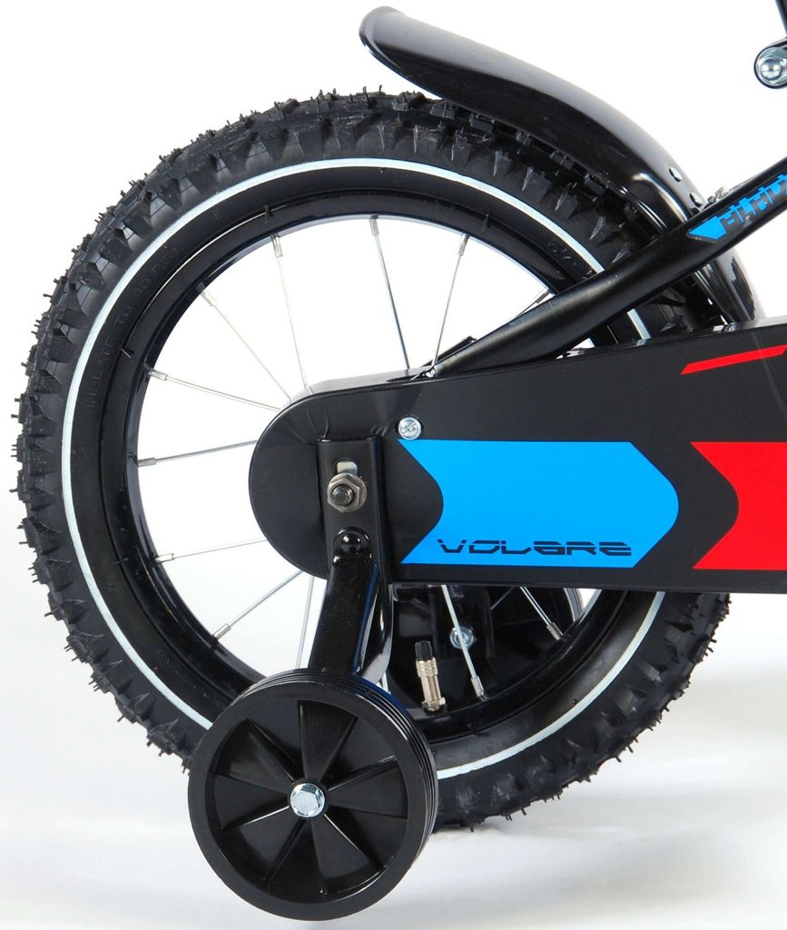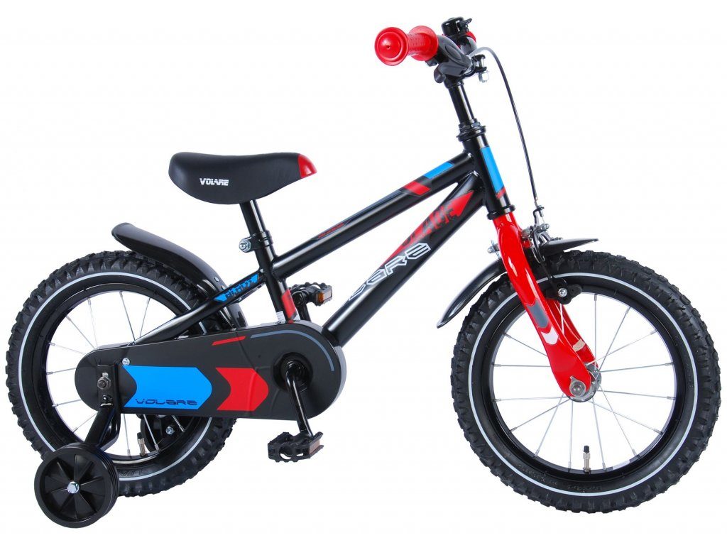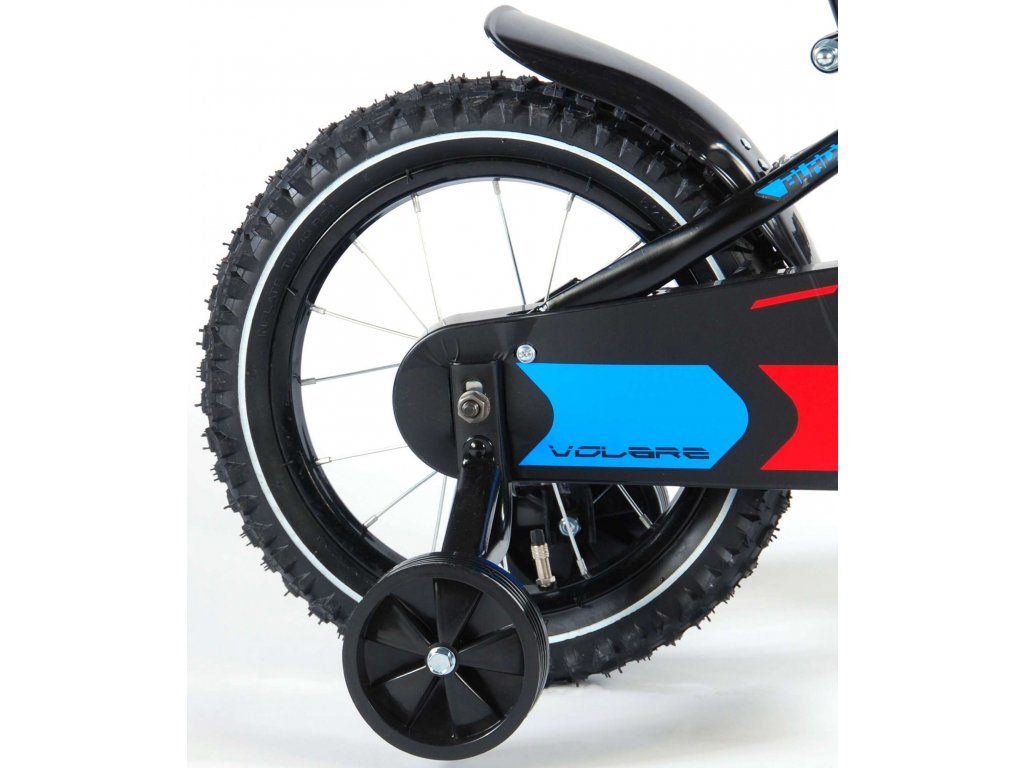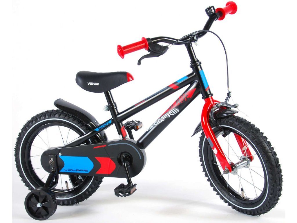 Originální dětské kolo od holandského výrobce Volare Blade s velikostí ráfků 14 palců je určeno pro děti ve věku od 3,5 do 5 let s výškou do 100 cm. Kolo je opatřeno demontovatelnými balančními kolečky, dítě se tedy bude cítit hned od první jízdy bezpečně a stabilně. Kolo je vybaveno 2 druhy brzd. Brždění probíhá buď protisměrnou zadní brzdou "torpédem",která možnuje brzdit zpětným záběrem pedálů nebo lze použít přední pákovou brzdu. Proti nechtěnému namotání nohavice nebo tkaničky do řetězu má kolo kryt s barevným potiskem, který zakrývá celý řetěz. Sedadlo i řídítka jsou výškově nastavitelné.