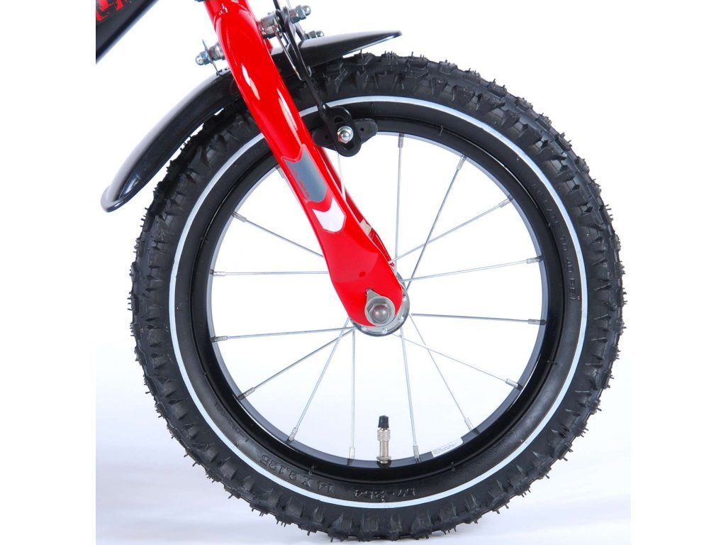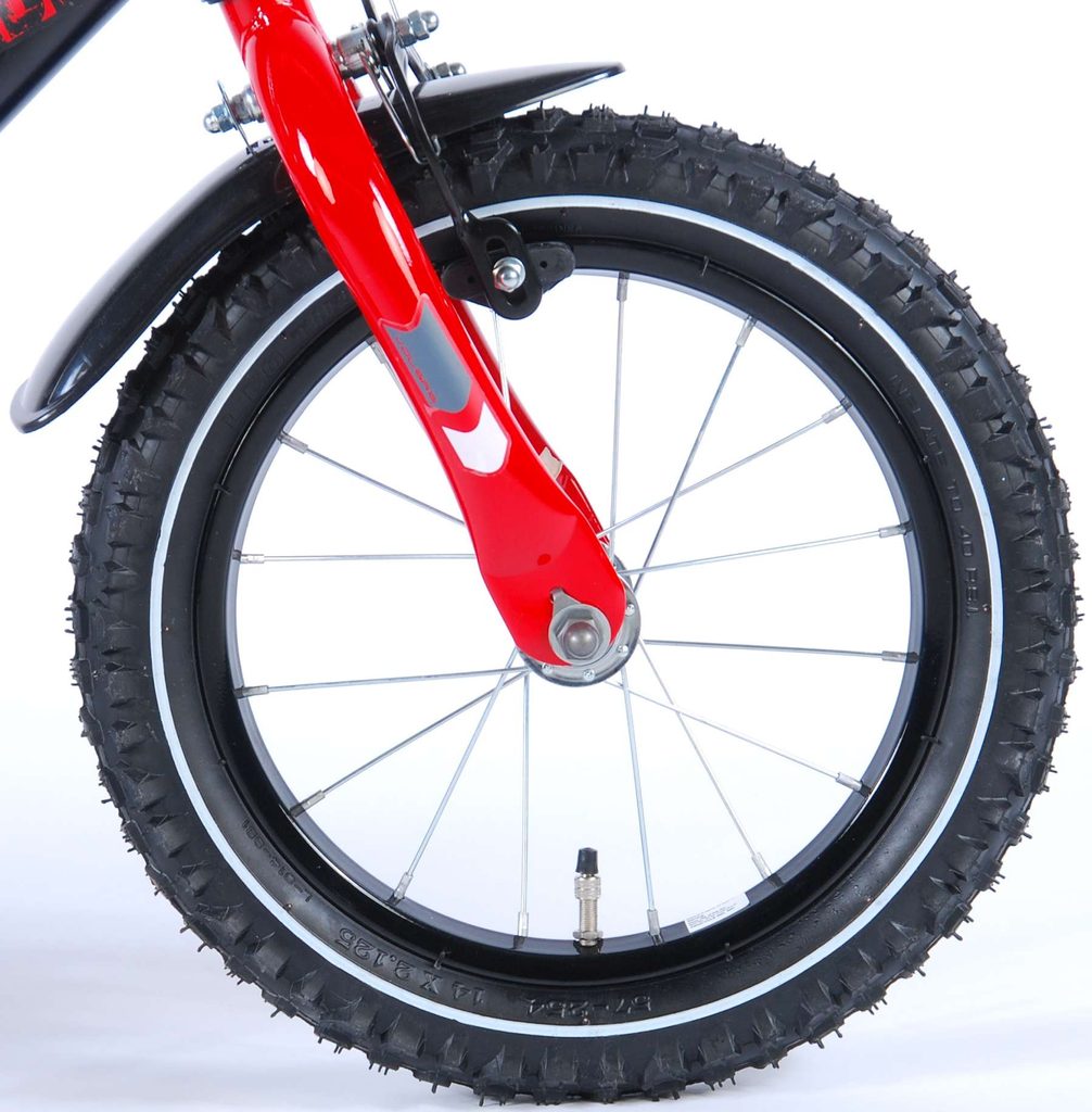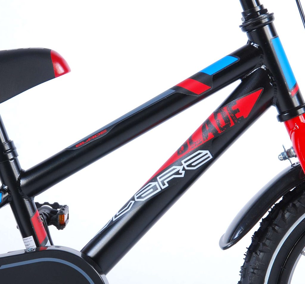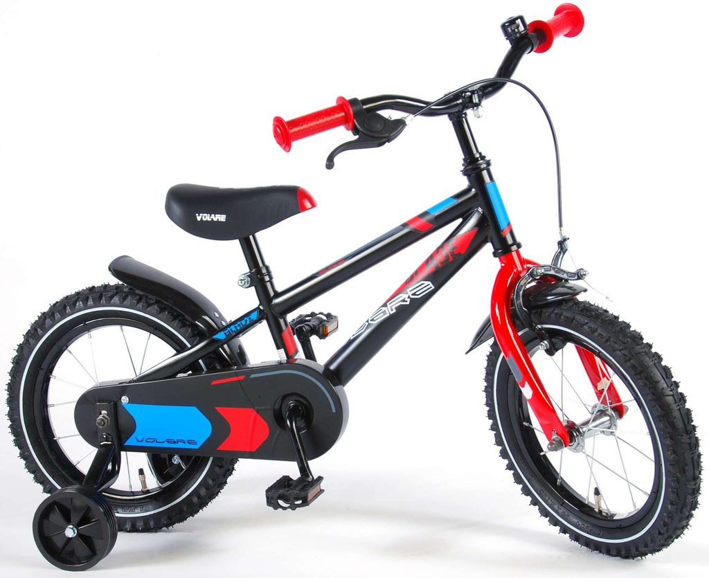 Originální dětské kolo od holandského výrobce Volare Blade s velikostí ráfků 14 palců je určeno pro děti ve věku od 3,5 do 5 let s výškou do 100 cm. Kolo je opatřeno demontovatelnými balančními kolečky, dítě se tedy bude cítit hned od první jízdy bezpečně a stabilně. Kolo je vybaveno 2 druhy brzd. Brždění probíhá buď protisměrnou zadní brzdou "torpédem",která možnuje brzdit zpětným záběrem pedálů nebo lze použít přední pákovou brzdu. Proti nechtěnému namotání nohavice nebo tkaničky do řetězu má kolo kryt s barevným potiskem, který zakrývá celý řetěz. Sedadlo i řídítka jsou výškově nastavitelné.