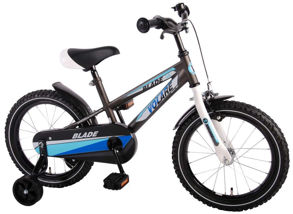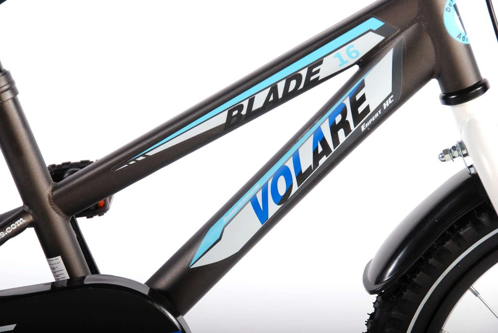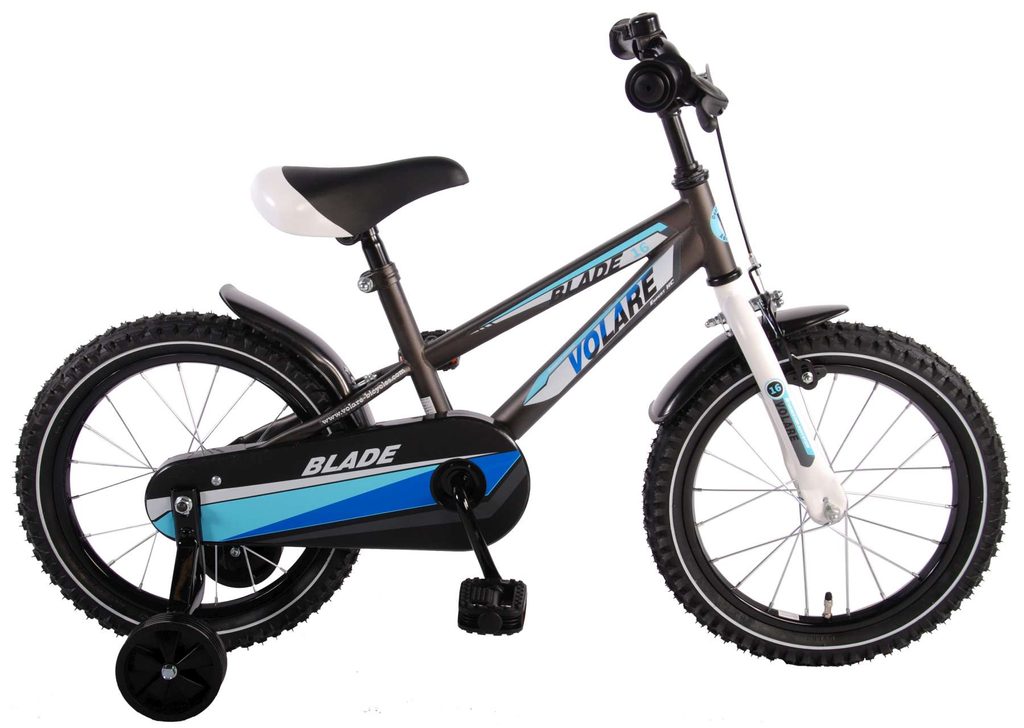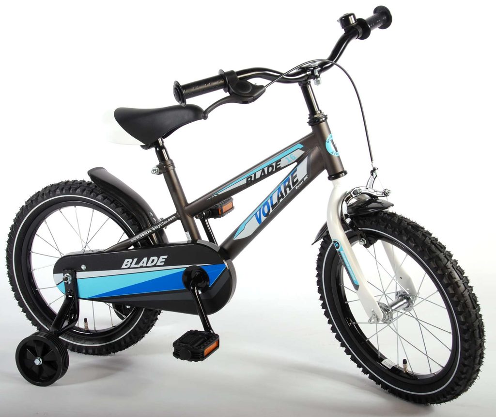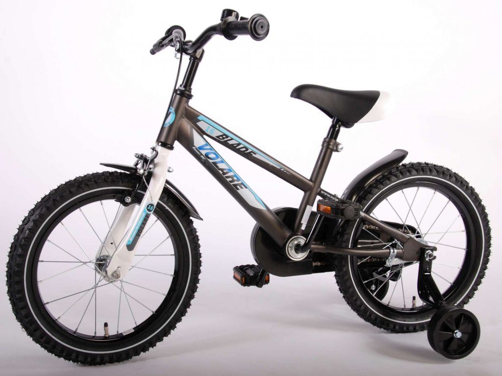 Originální dětské kolo od holandského výrobce Volare Blade Gray s velikostí ráfků 16 palců je určeno pro děti ve věku od 4 do 6 let s výškou do 105 cm. Kolo je opatřeno demontovatelnými balančními kolečky, dítě se tedy bude cítit hned od první jízdy bezpečně a stabilně. Kolo je vybaveno 2 druhy brzd. Brždění probíhá buď protisměrnou zadní brzdou "torpédem",která možnuje brzdit zpětným záběrem pedálů nebo lze použít přední pákovou brzdu. Proti nechtěnému namotání nohavice nebo tkaničky do řetězu má kolo kryt s barevným potiskem, který zakrývá celý řetěz. Sedadlo i řídítka jsou výškově nastavitelné. Za sedadlem je umístěný nosič s lahví na pití.