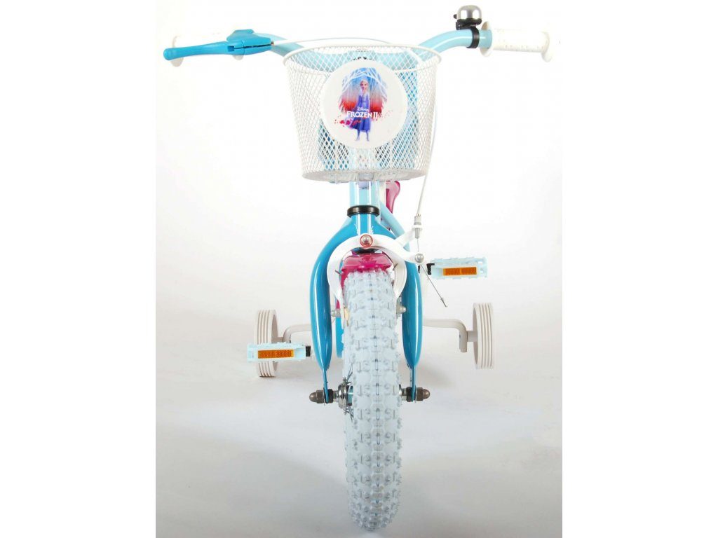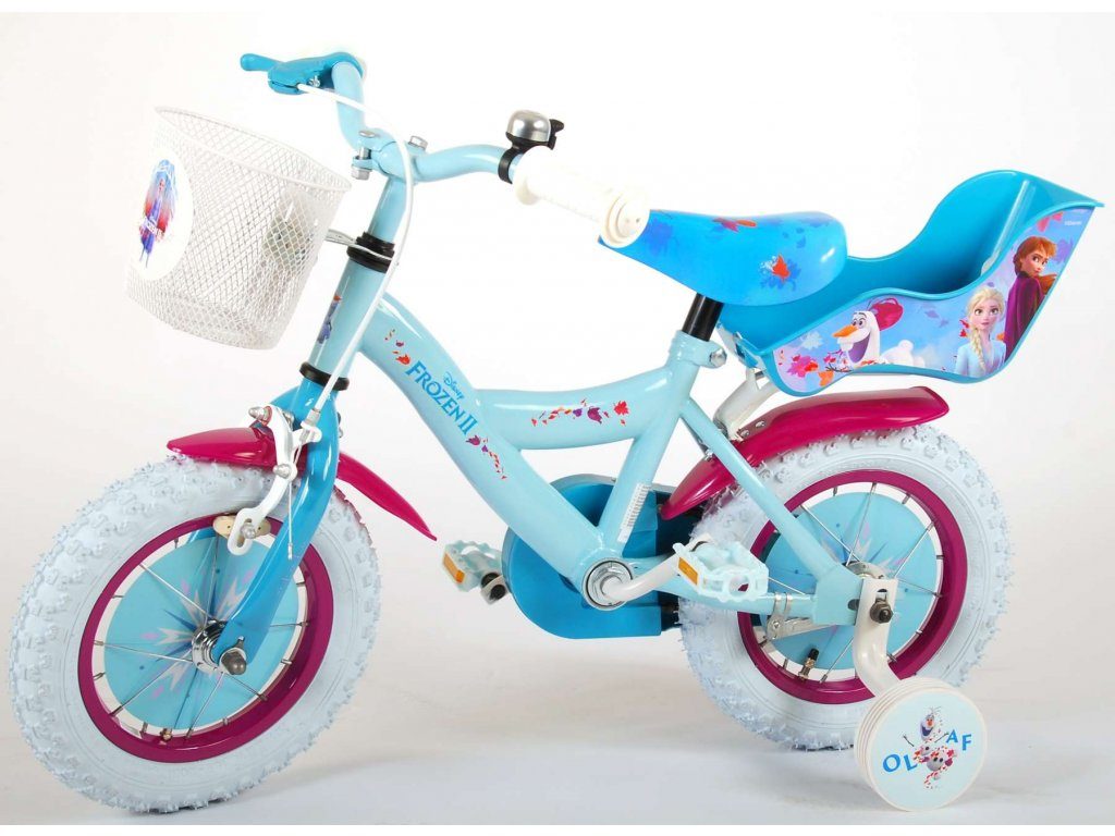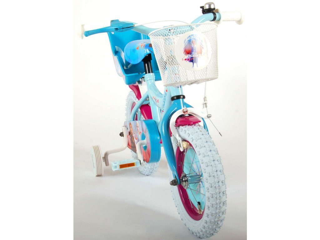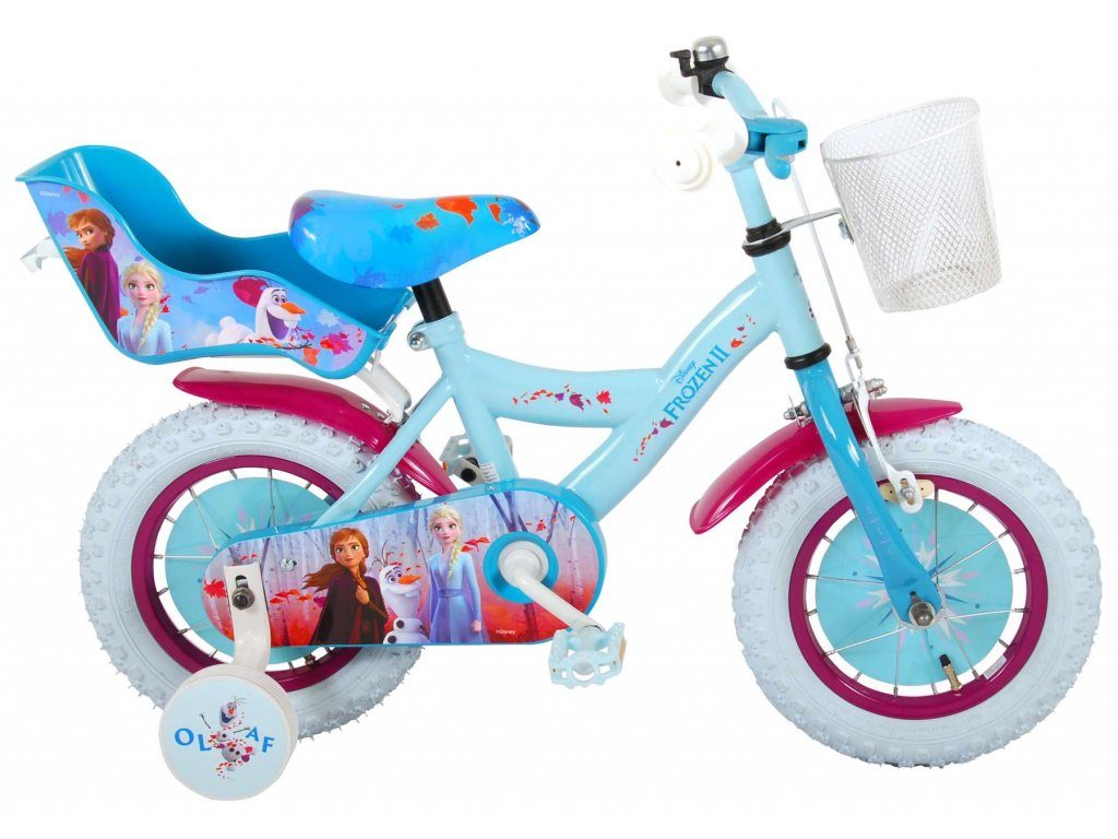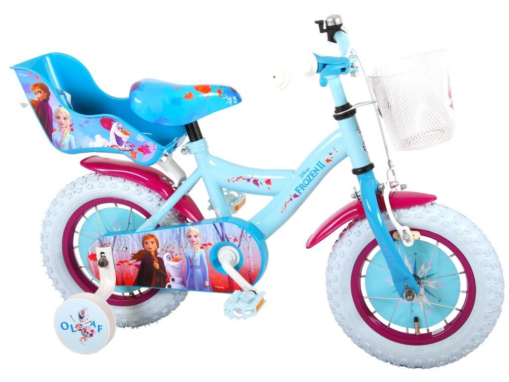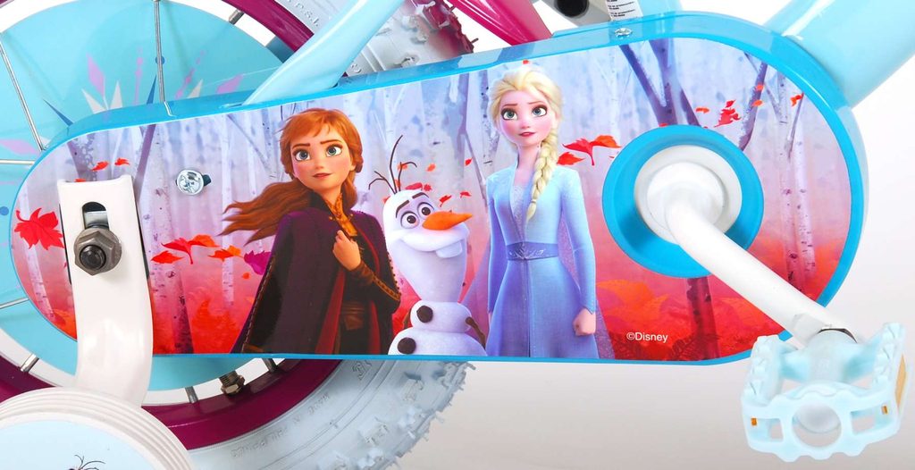 Originální dětské kolo od holandského výrobce Volare Frozen II (licence Disney) s velikostí ráfků 12 palců je určeno pro nejmenší děti ve věku od 3 do 4,5 let s výškou do 95 cm. Kolo je opatřeno demontovatelnými balančními kolečky, dítě se tedy bude cítit hned od první jízdy bezpečně a stabilně. Kolo je vybaveno 2 druhy brzd. Brždění probíhá buď protisměrnou zadní brzdou "torpédem",která možnuje brzdit zpětným záběrem pedálů nebo lze použít přední pákovou brzdu. Proti nechtěnému namotání nohavice nebo tkaničky do řetězu má kolo kryt s obrázky, který zakrývá celý řetěz. Sedadlo i řídítka jsou výškově nastavitelné. V zadní části je umístěný nosič na panenky a v přední části je košík na hračky.