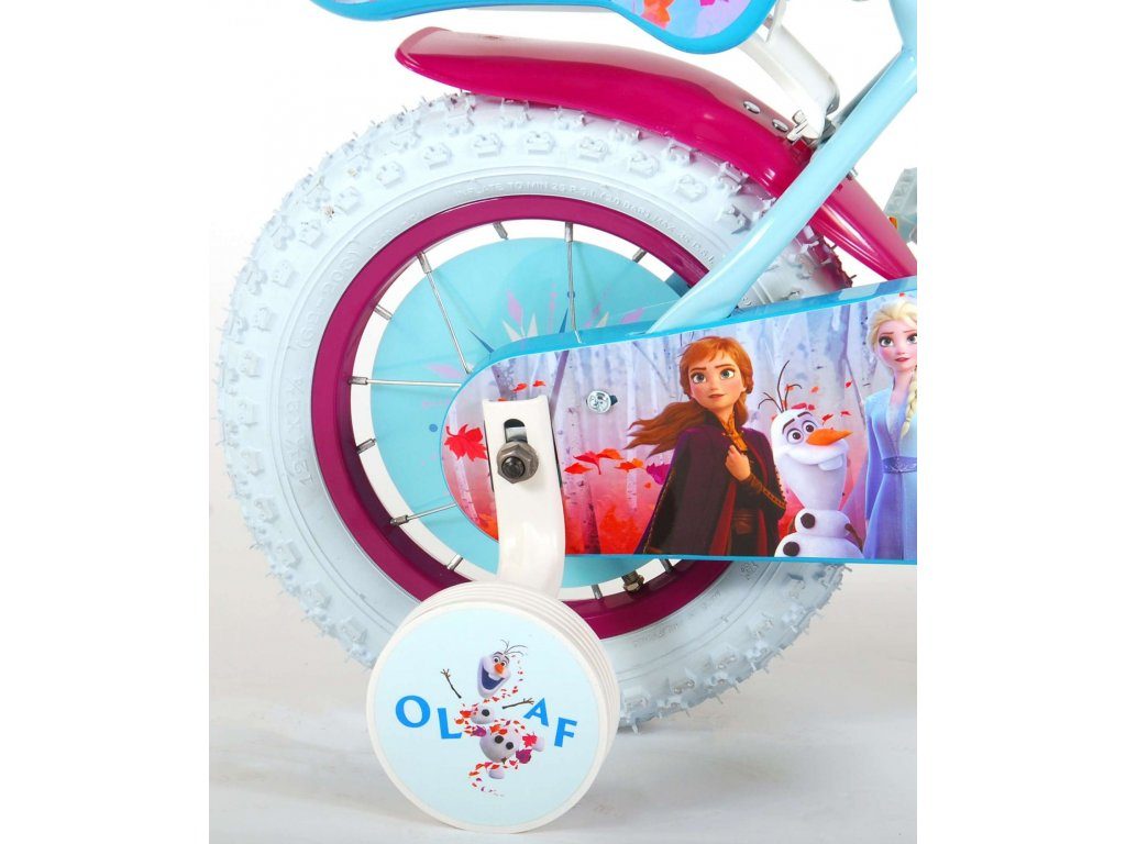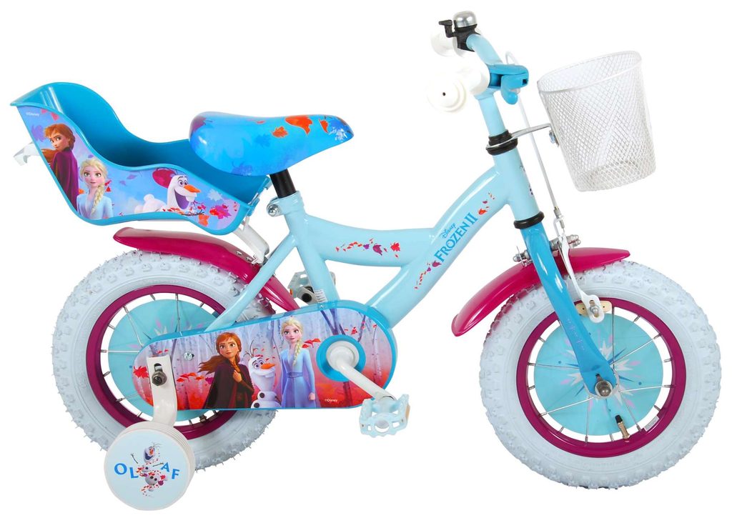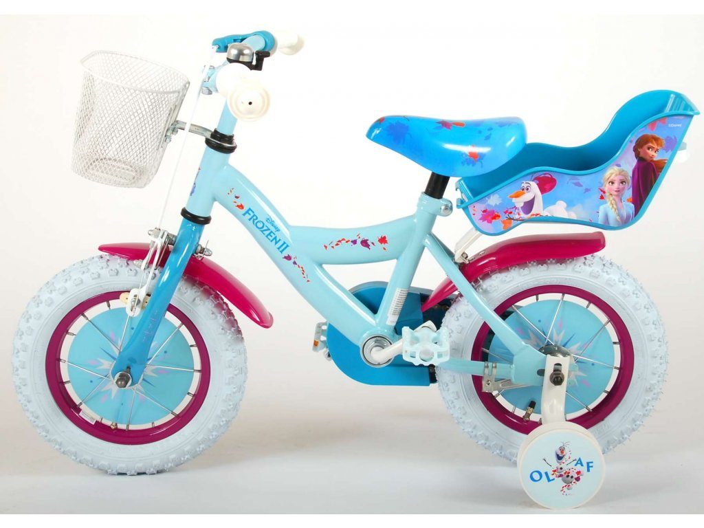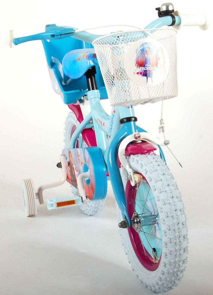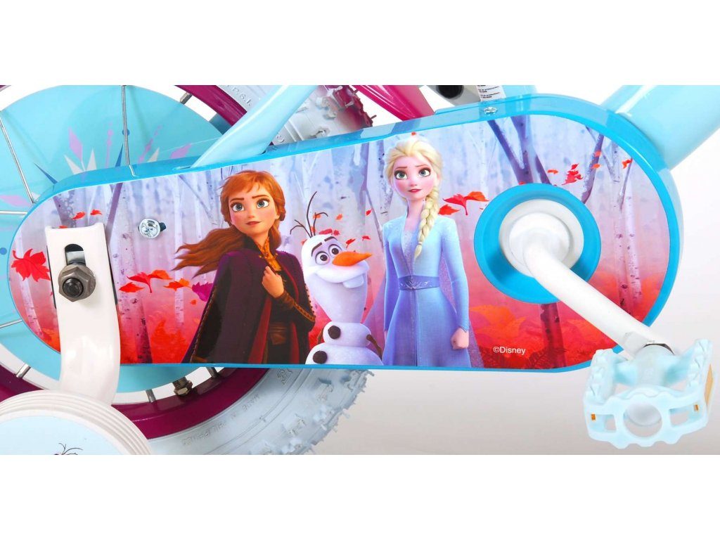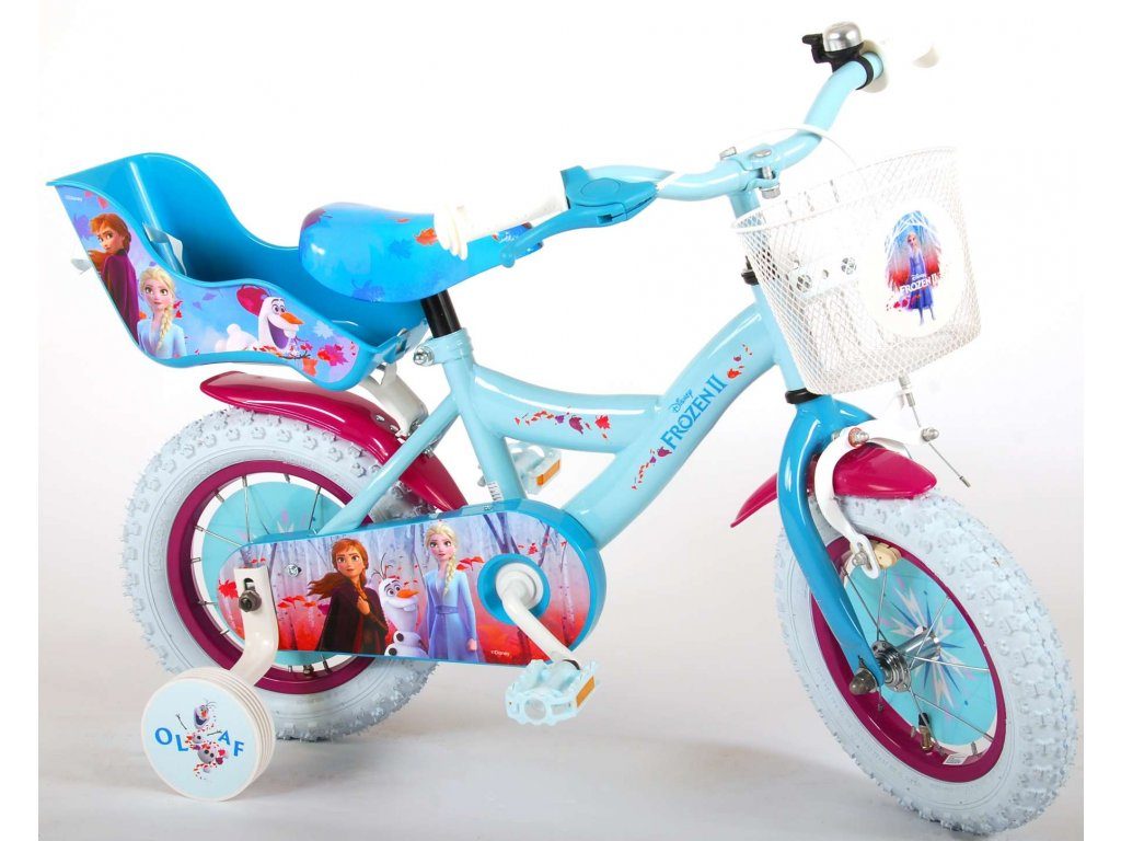Originální dětské kolo od holandského výrobce Volare Frozen II (licence Disney) s velikostí ráfků 12 palců je určeno pro nejmenší děti ve věku od 3 do 4,5 let s výškou do 95 cm. Kolo je opatřeno demontovatelnými balančními kolečky, dítě se tedy bude cítit hned od první jízdy bezpečně a stabilně. Kolo je vybaveno 2 druhy brzd. Brždění probíhá buď protisměrnou zadní brzdou "torpédem",která možnuje brzdit zpětným záběrem pedálů nebo lze použít přední pákovou brzdu. Proti nechtěnému namotání nohavice nebo tkaničky do řetězu má kolo kryt s obrázky, který zakrývá celý řetěz. Sedadlo i řídítka jsou výškově nastavitelné. V zadní části je umístěný nosič na panenky a v přední části je košík na hračky.