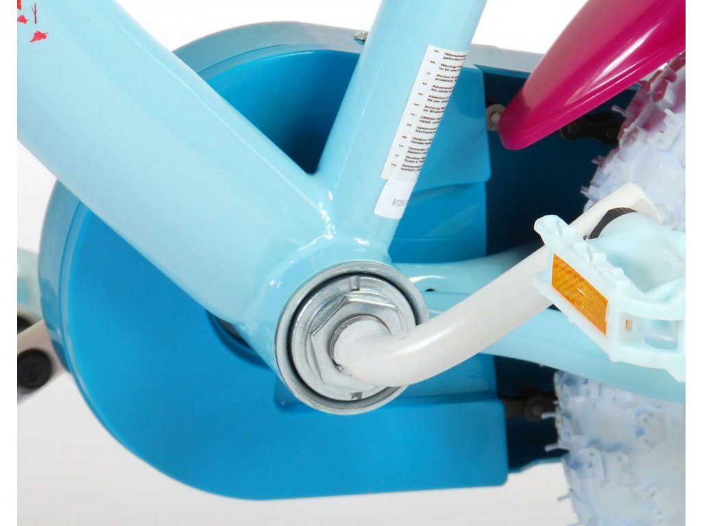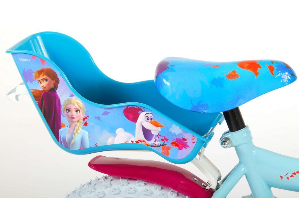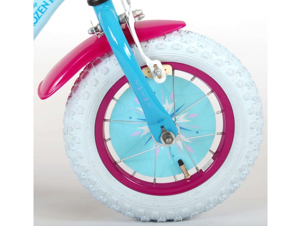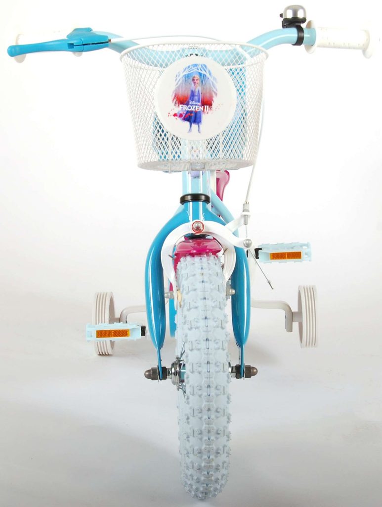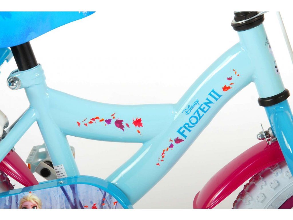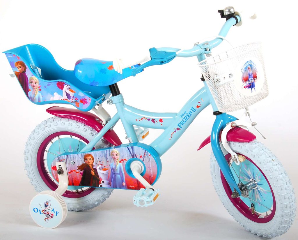 Originální dětské kolo od holandského výrobce Volare Frozen II (licence Disney) s velikostí ráfků 12 palců je určeno pro nejmenší děti ve věku od 3 do 4,5 let s výškou do 95 cm. Kolo je opatřeno demontovatelnými balančními kolečky, dítě se tedy bude cítit hned od první jízdy bezpečně a stabilně. Kolo je vybaveno 2 druhy brzd. Brždění probíhá buď protisměrnou zadní brzdou "torpédem",která možnuje brzdit zpětným záběrem pedálů nebo lze použít přední pákovou brzdu. Proti nechtěnému namotání nohavice nebo tkaničky do řetězu má kolo kryt s obrázky, který zakrývá celý řetěz. Sedadlo i řídítka jsou výškově nastavitelné. V zadní části je umístěný nosič na panenky a v přední části je košík na hračky.
