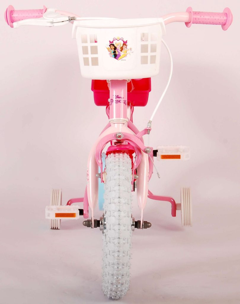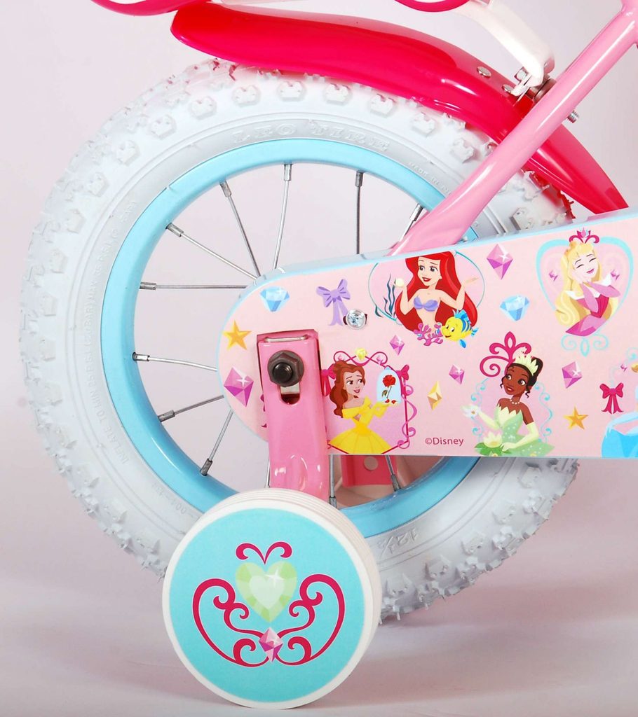 Originální dětské kolo od holandského výrobce Volare Princess (licence Disney) s velikostí ráfků 12 palců je určeno pro nejmenší děti ve věku od 3 do 4,5 let s výškou do 95 cm. Kolo je opatřeno demontovatelnými balančními kolečky, dítě se tedy bude cítit hned od první jízdy bezpečně a stabilně. Kolo je vybaveno 2 druhy brzd. Brždění probíhá buď protisměrnou zadní brzdou "torpédem",která možnuje brzdit zpětným záběrem pedálů nebo lze použít přední pákovou brzdu. Proti nechtěnému namotání nohavice nebo tkaničky do řetězu má kolo kryt s obrázky, který zakrývá celý řetěz. Sedadlo i řídítka jsou výškově nastavitelné. V zadní části je umístěný nosič na panenky a v přední části je košík na hračky.