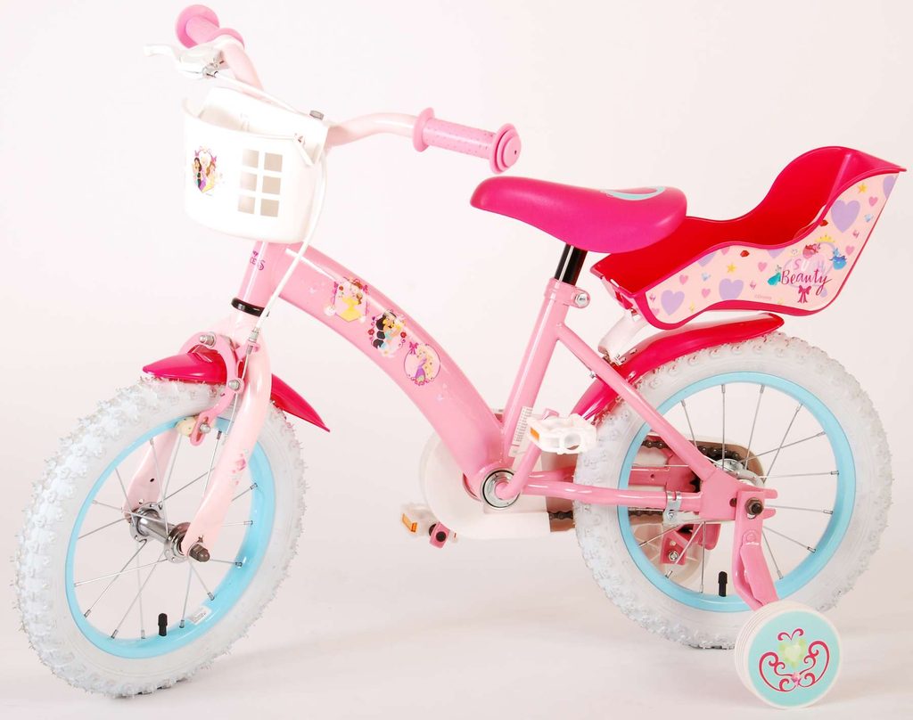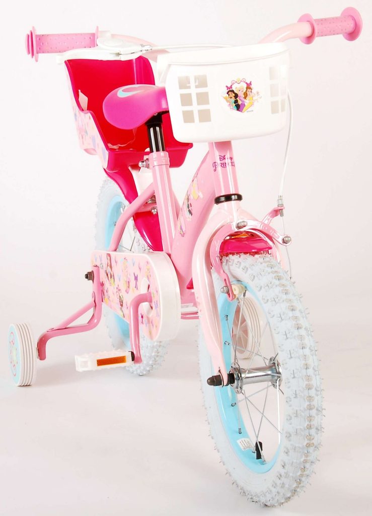 Originální dětské kolo od holandského výrobce Volare Princess (licence Disney) s velikostí ráfků 14 palců je určeno pro děti ve věku od 3,5 do 5 let s výškou do 100 cm. Kolo je opatřeno demontovatelnými balančními kolečky, dítě se tedy bude cítit hned od první jízdy bezpečně a stabilně. Kolo je vybaveno 2 druhy brzd. Brždění probíhá buď protisměrnou zadní brzdou "torpédem",která možnuje brzdit zpětným záběrem pedálů nebo lze použít přední pákovou brzdu. Proti nechtěnému namotání nohavice nebo tkaničky do řetězu má kolo kryt s obrázky oblíbeného superhrdiny, který zakrývá celý řetěz. Sedadlo i řídítka jsou výškově nastavitelné. V zadní části je umístěný nosič na panenky a v přední části je košík na hračky.