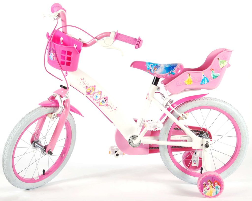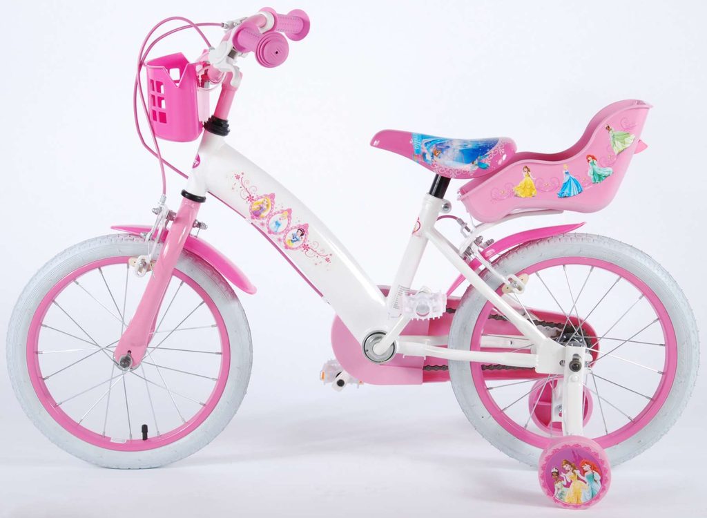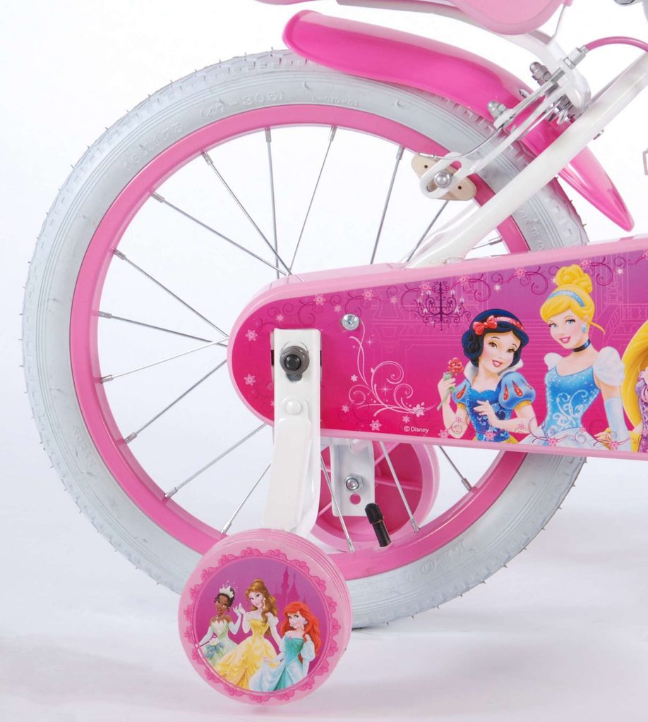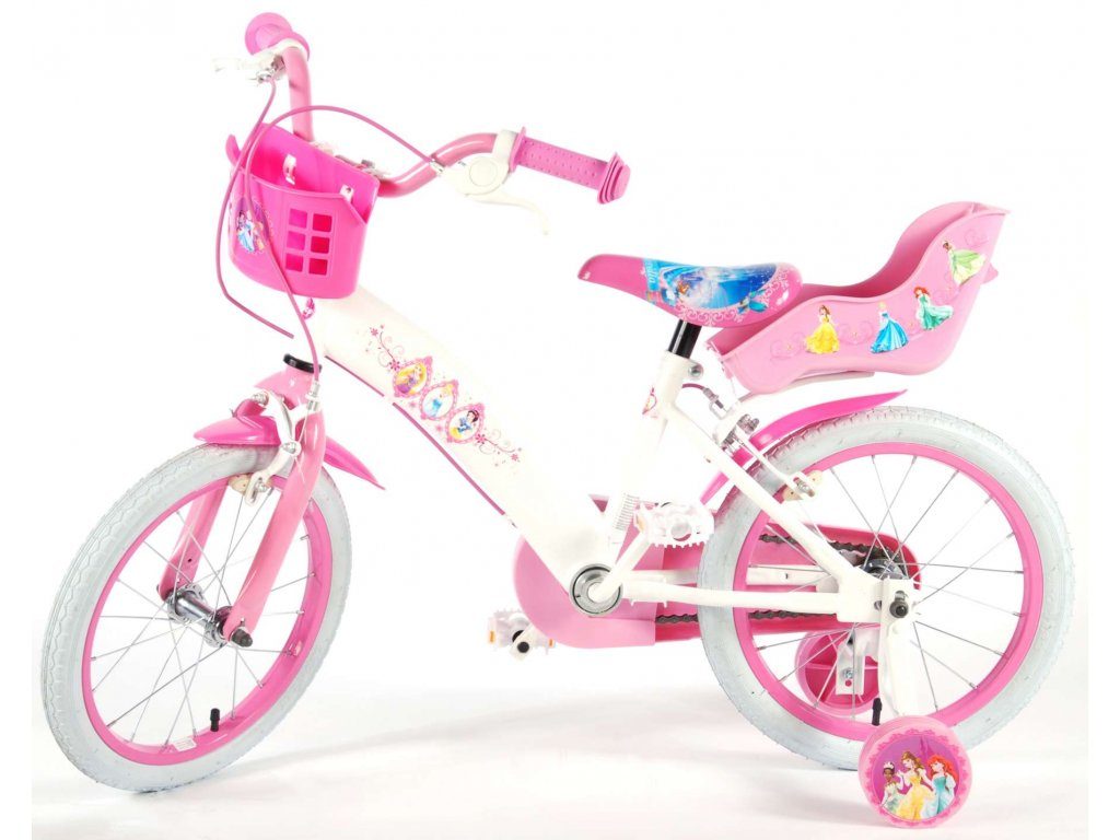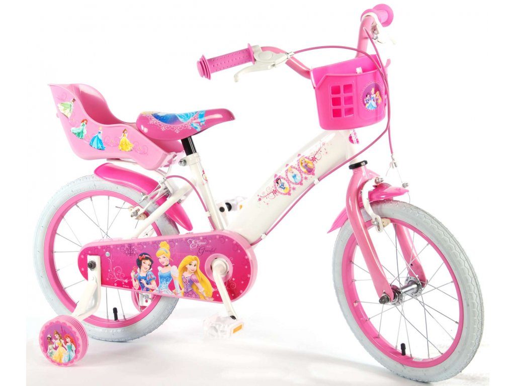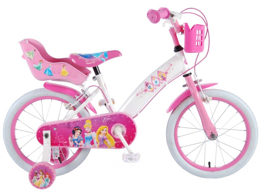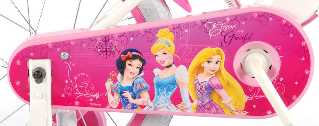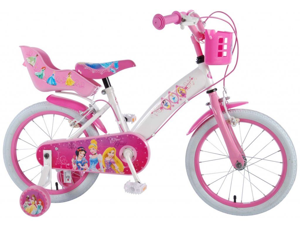 Originální dětské kolo od holandského výrobce Volare Princess (licence Disney) s velikostí ráfků 16 palců je určeno pro děti ve věku od 4 do 6 let s výškou do 105 cm. Kolo je opatřeno demontovatelnými balančními kolečky, dítě se tedy bude cítit hned od první jízdy bezpečně a stabilně. Kolo je vybaveno přední a zadní čelisťovou brzdou. Proti nechtěnému namotání nohavice nebo tkaničky do řetězu má kolo kryt s obrázky, který zakrývá celý řetěz. Sedadlo i řídítka jsou výškově nastavitelné. V zadní části je umístěný nosič na panenky a v přední části je košík na hračky.